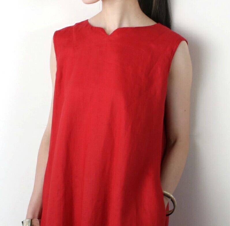ノースリーブながらも腕まわりがすっきりと見えるように、パターンに拘っています◎