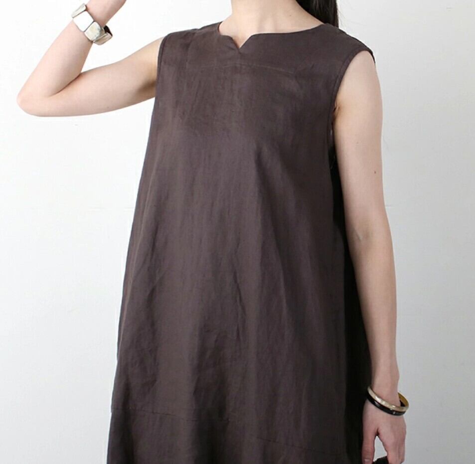 フレンチリネン100%のドライな風合いとスラブ感が特徴のキャンバス地のワンピース。