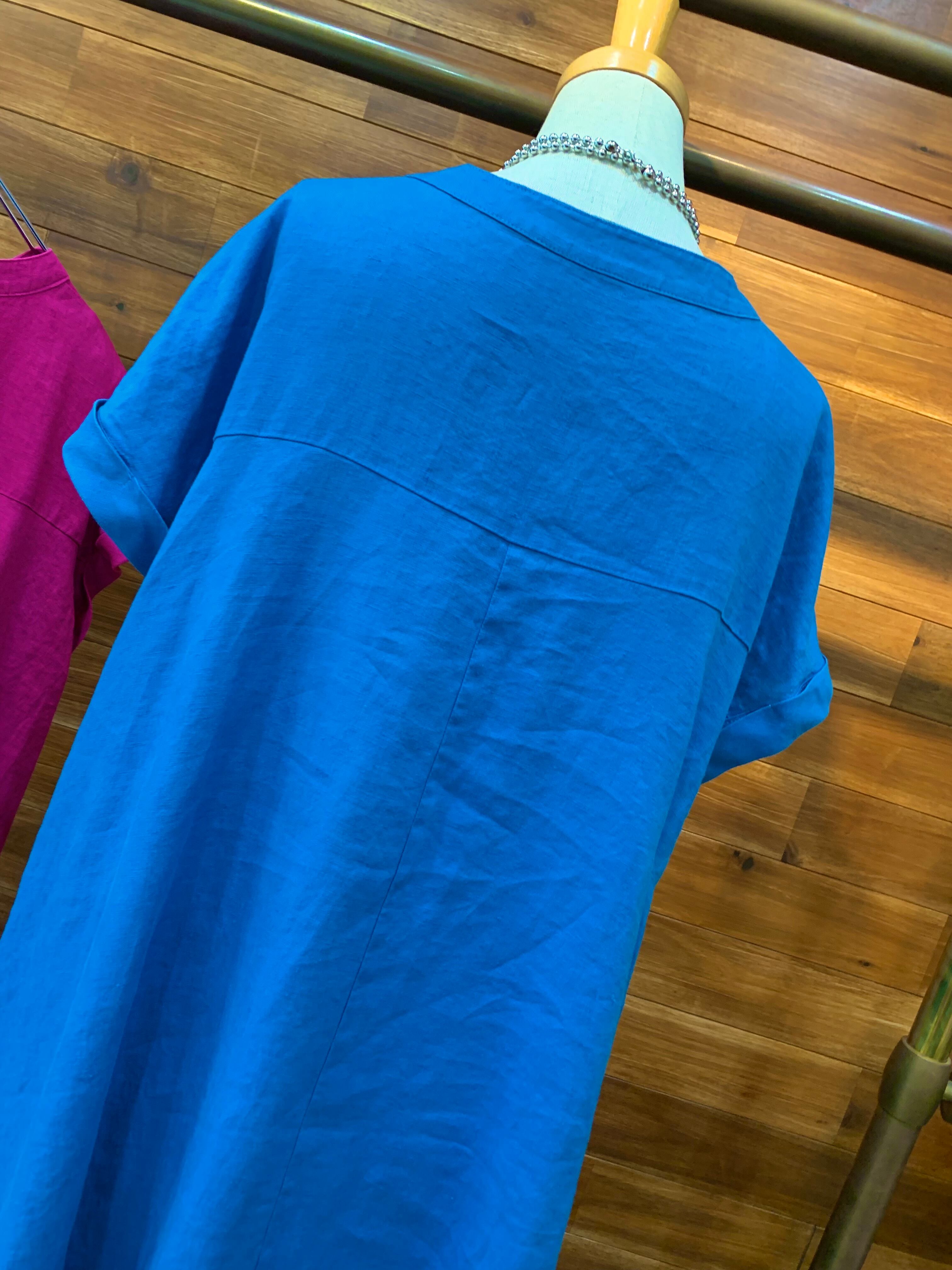 ドロップショルダーのお袖は半袖くらいまでの長さがあり、ロールアップデザインと脇下の当て布が嬉しいポイントです♪