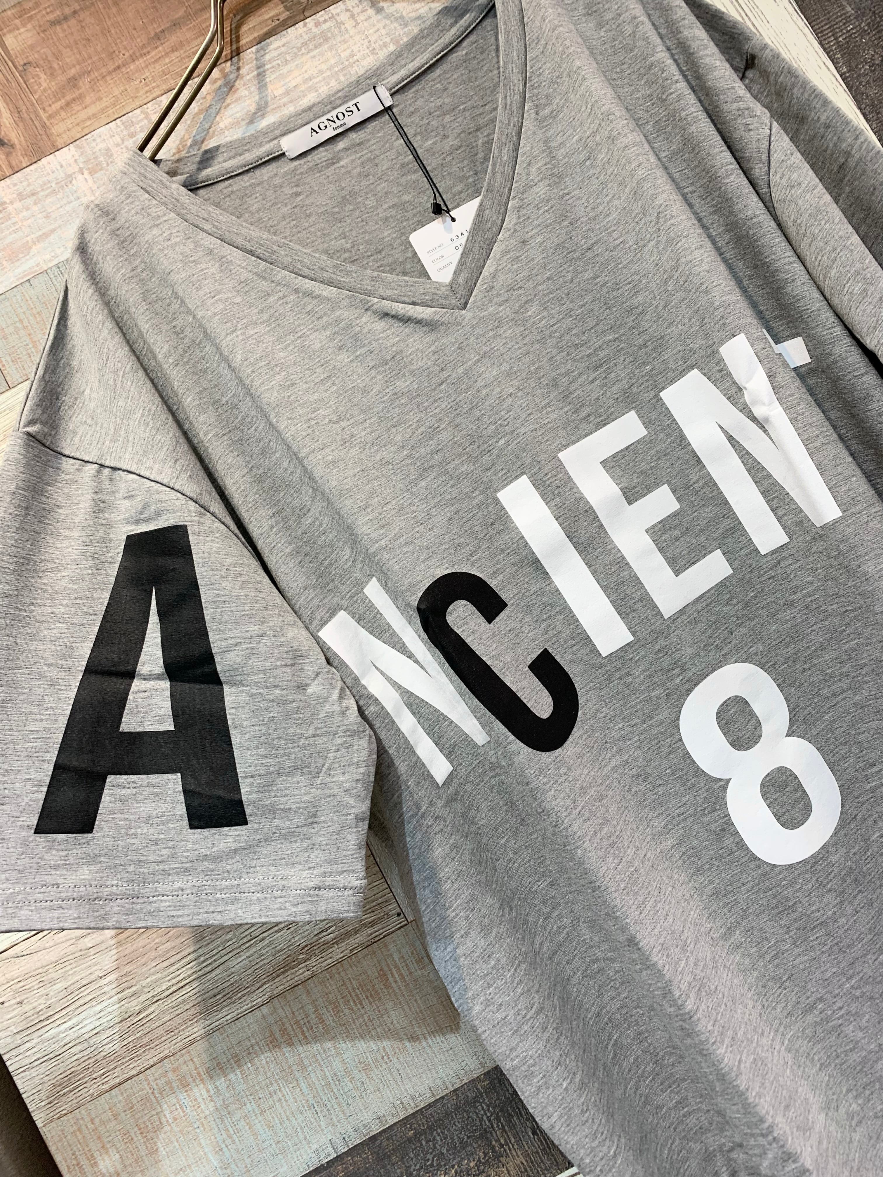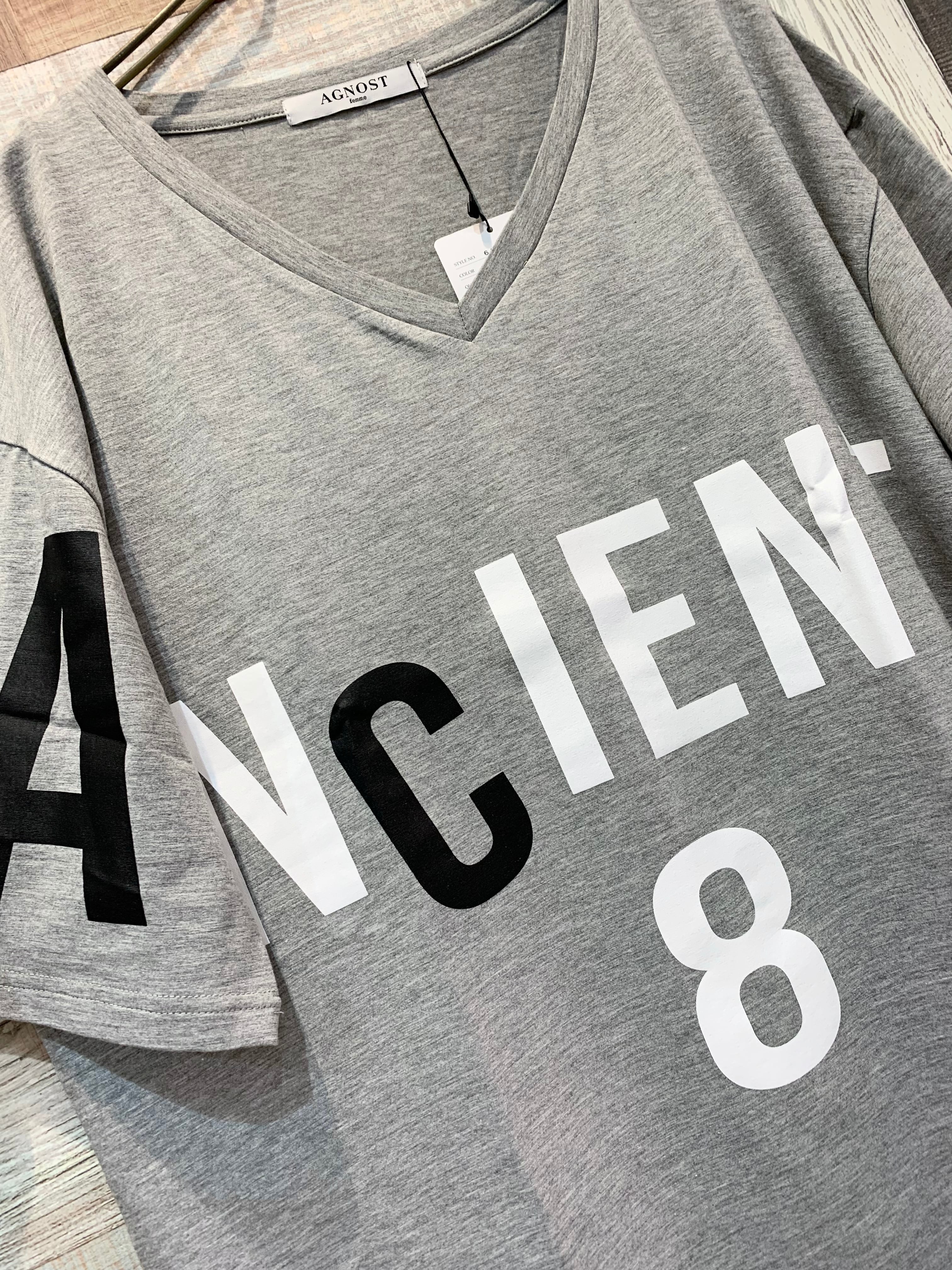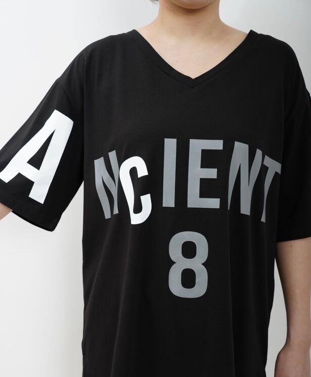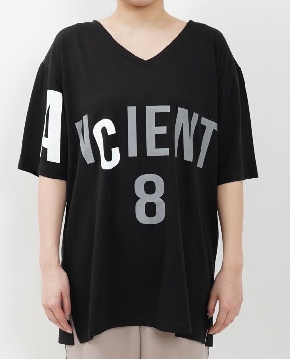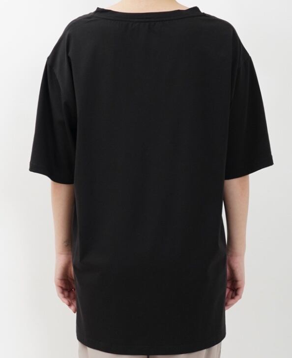 モノトーンで仕上げたロゴはシャープな印象で、どんなボトムとも合わせやすい一枚です。