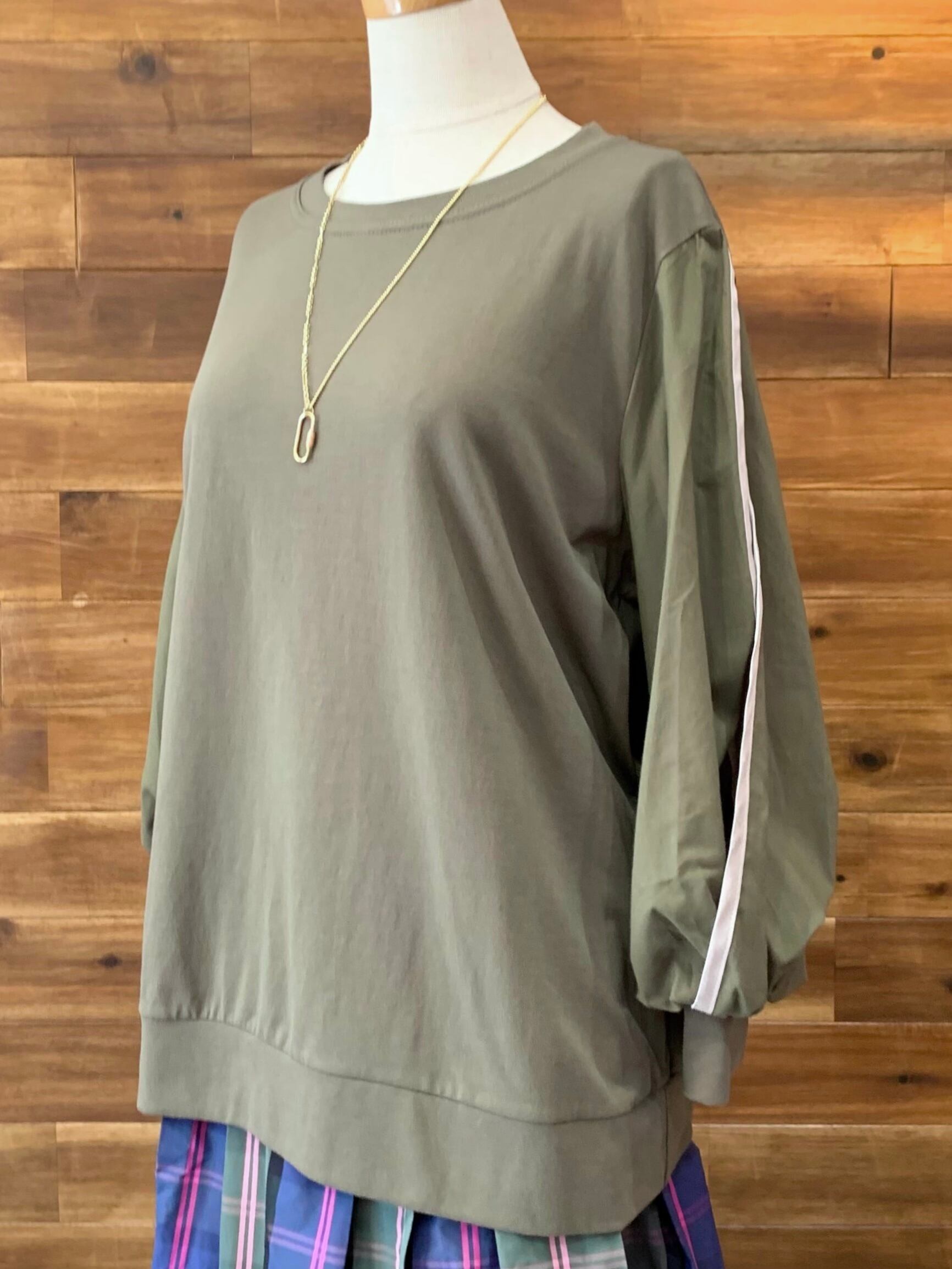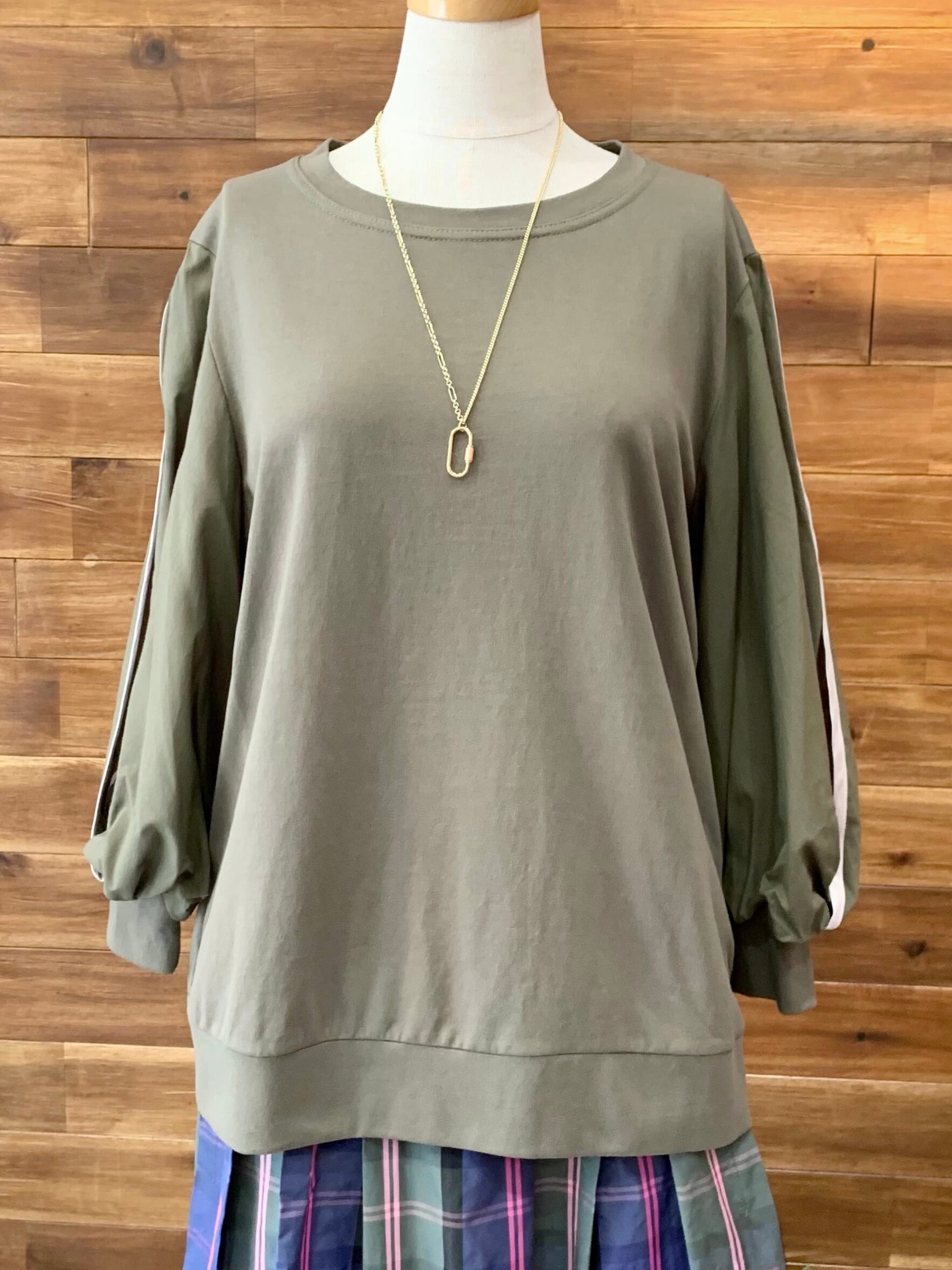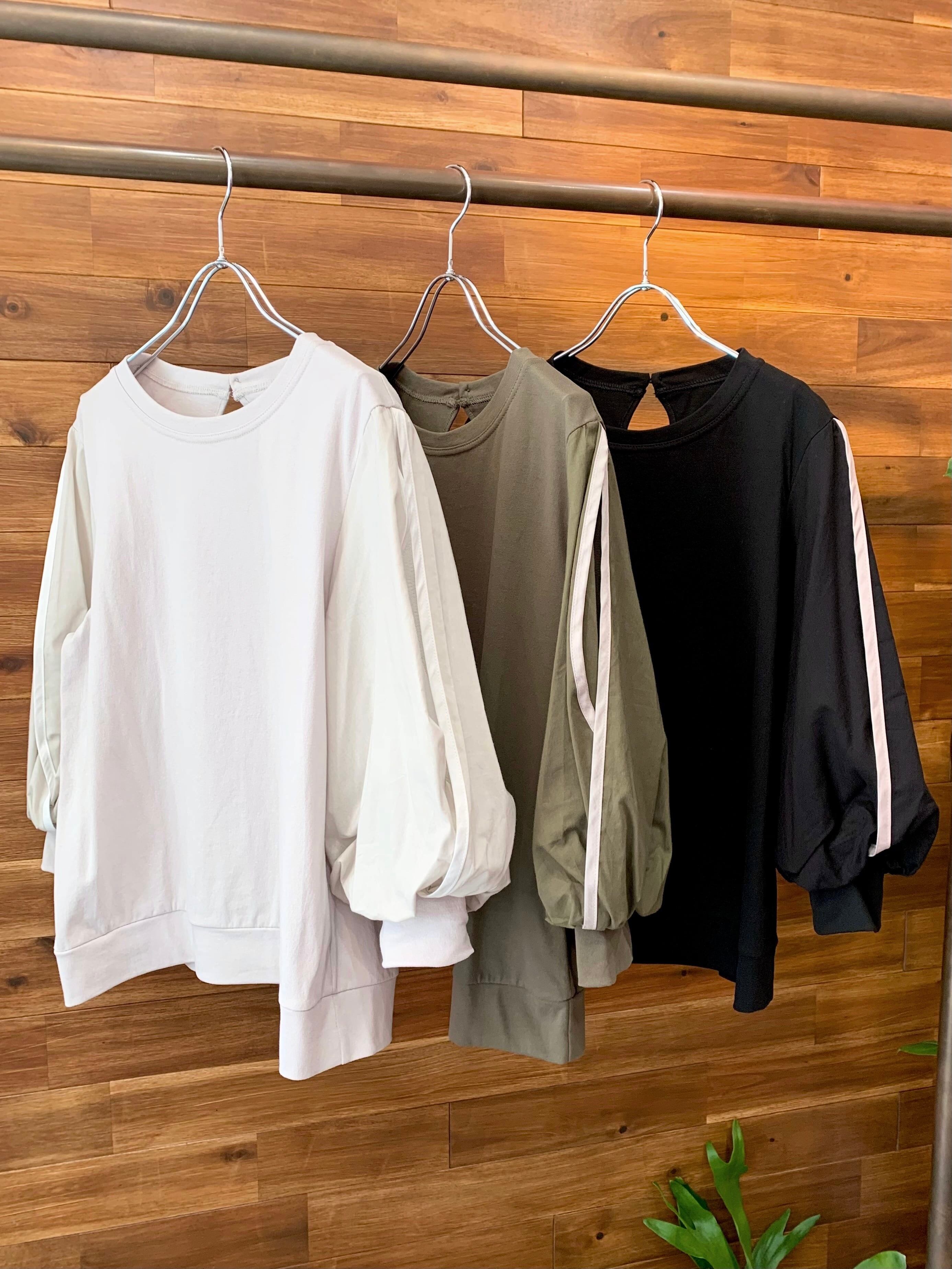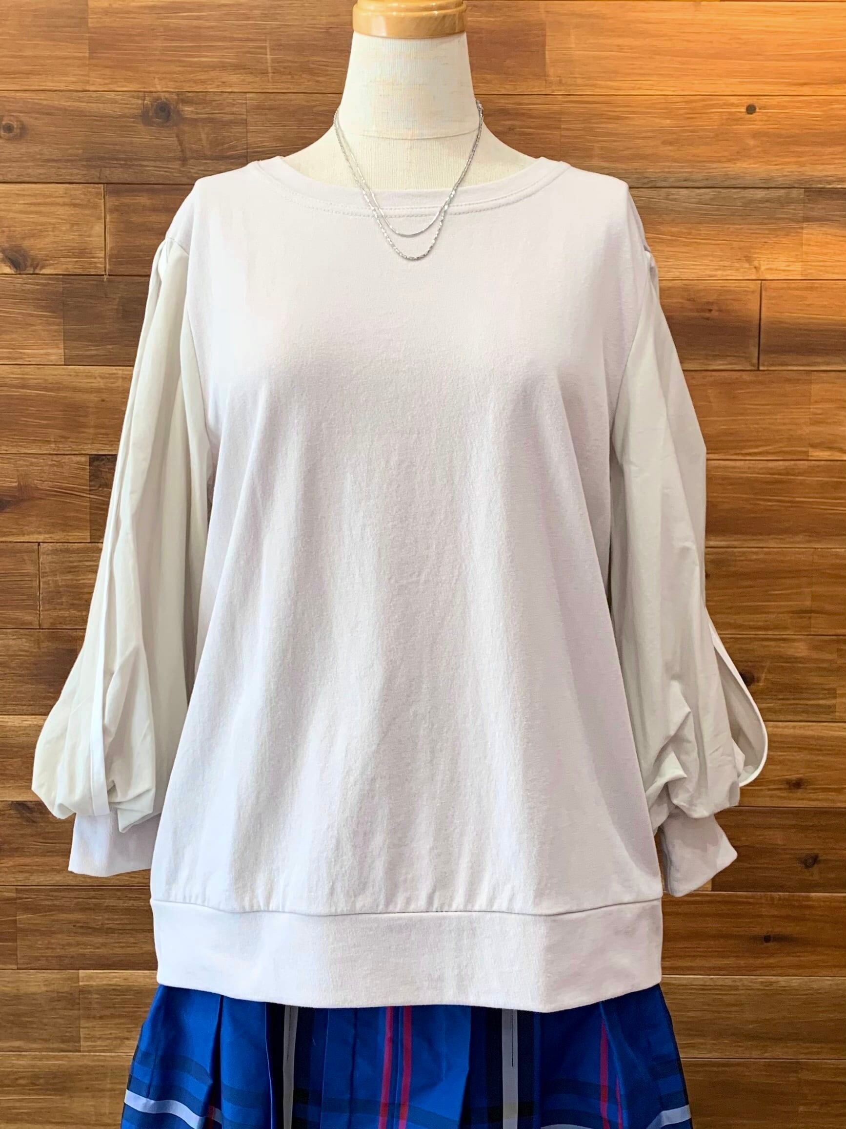 袖部分は布帛生地で切り替えており袖口はリブになっています。