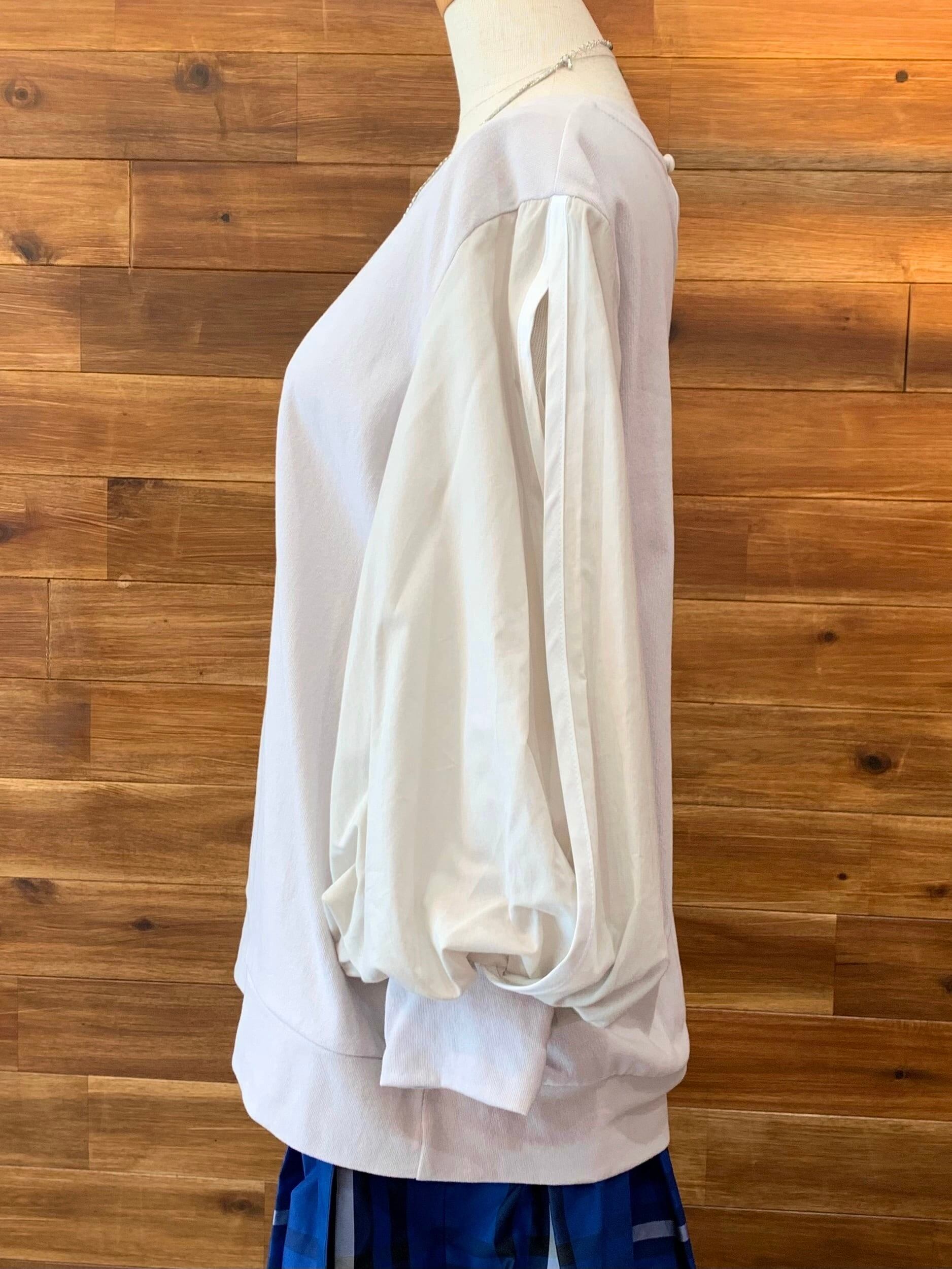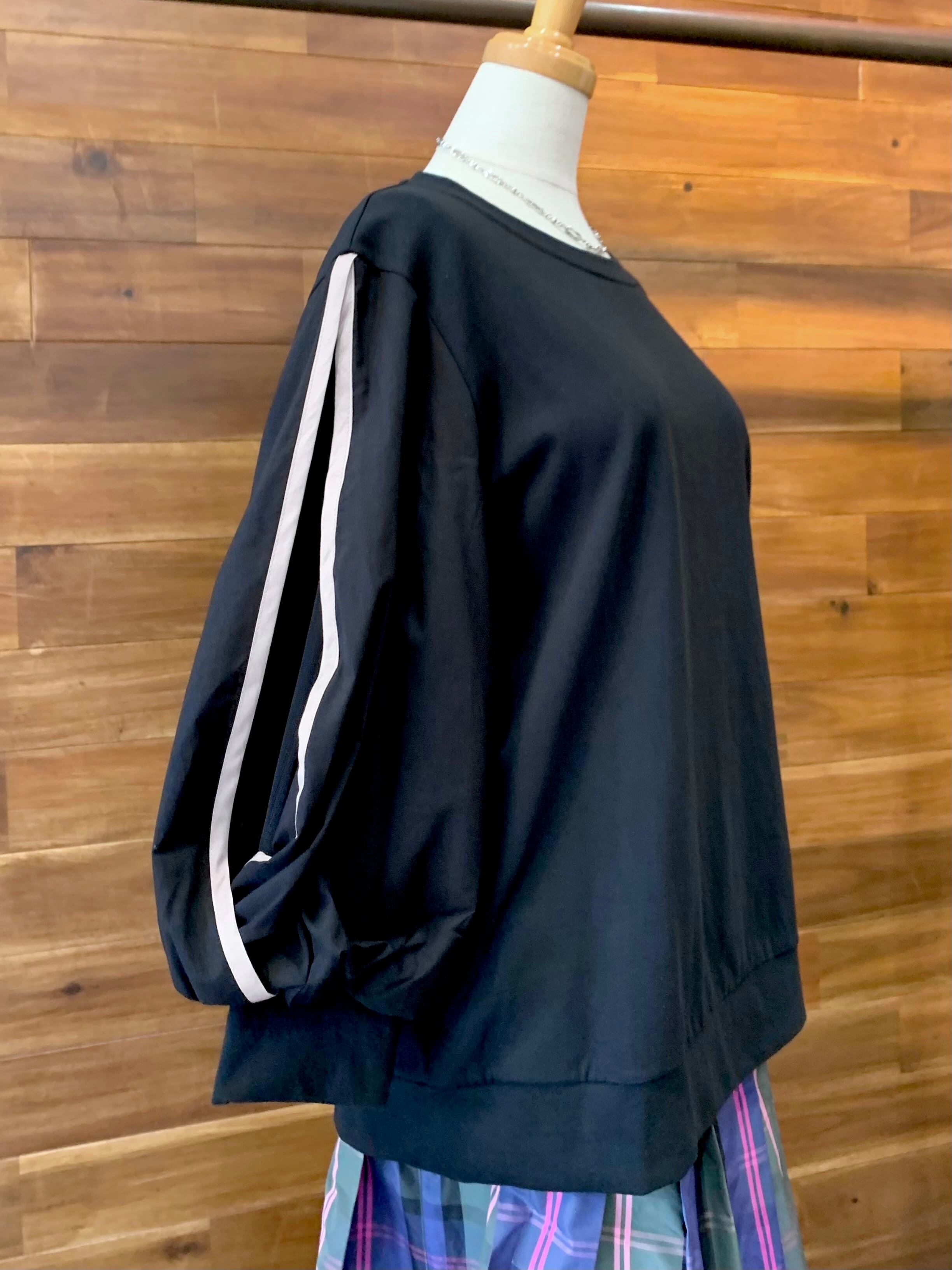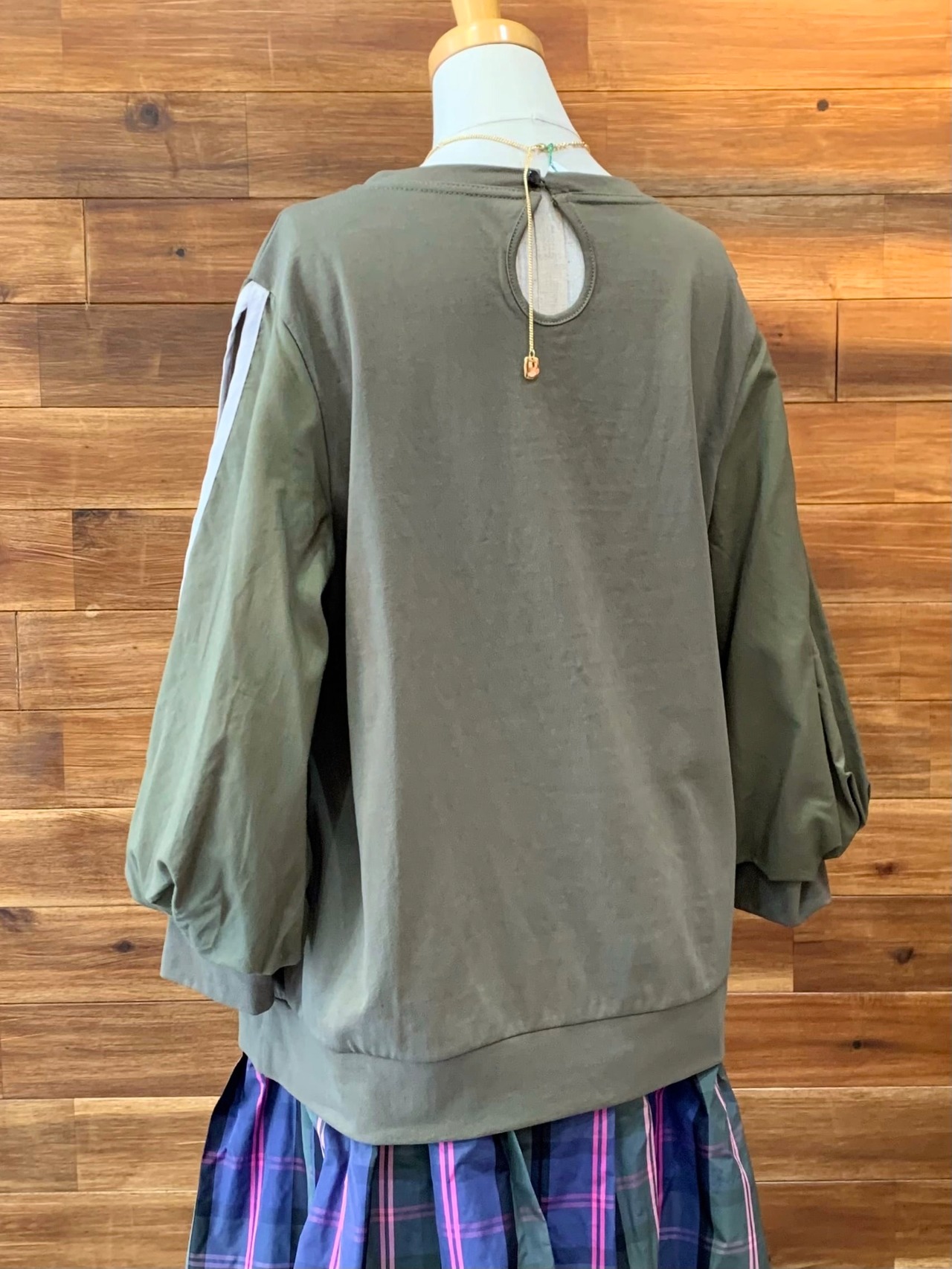 袖部分は布帛生地で切り替えており袖口はリブになっています。