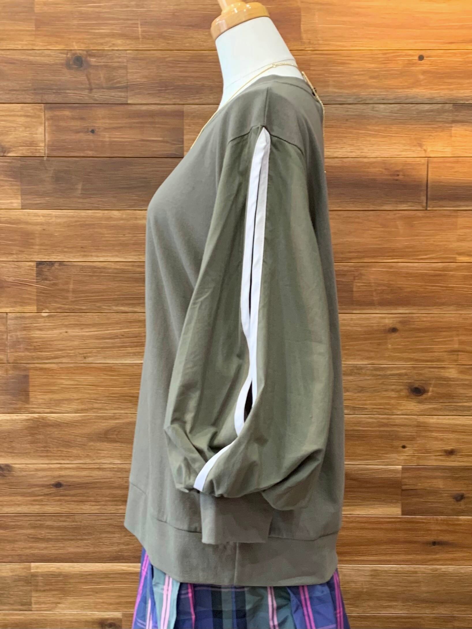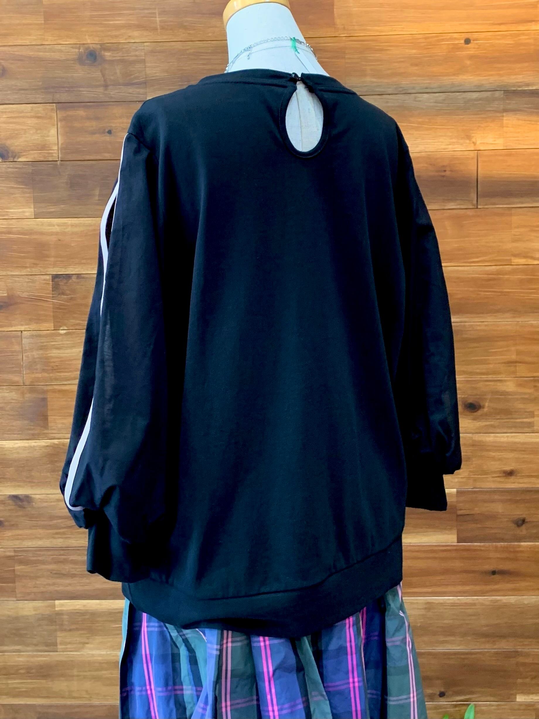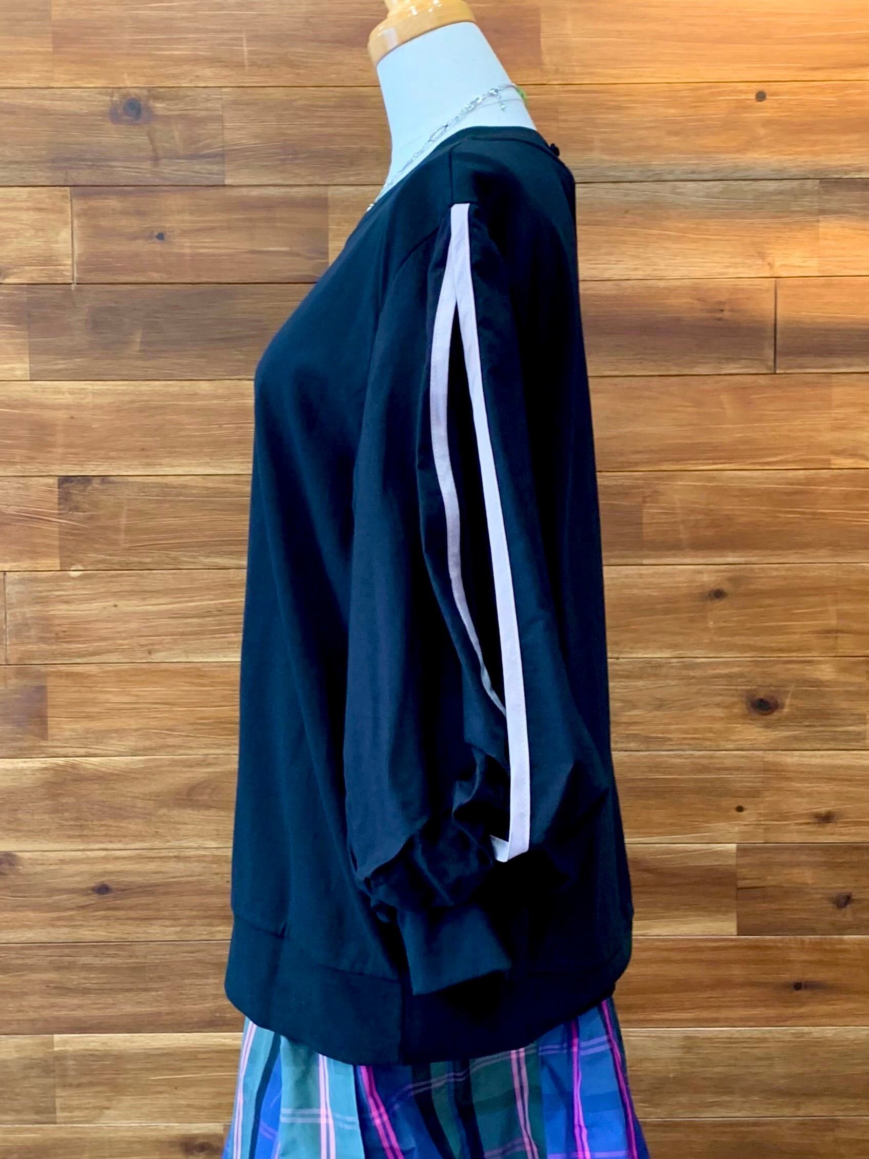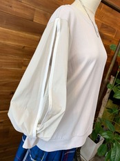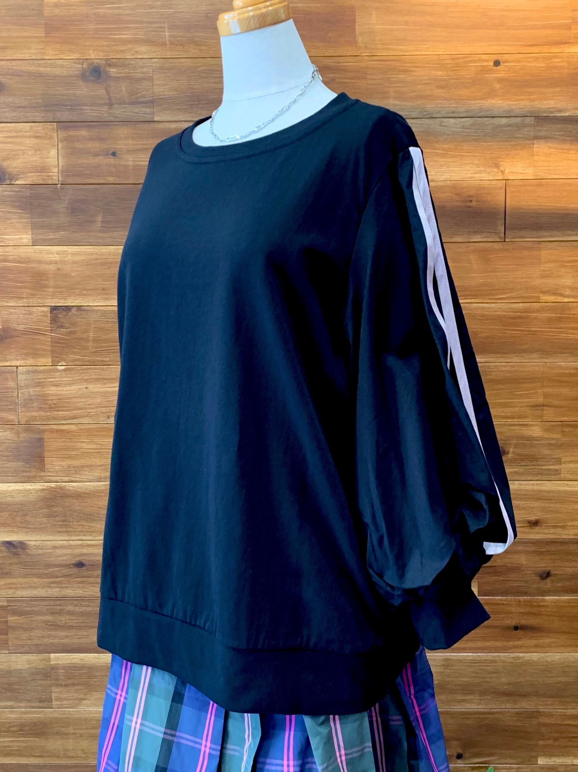 袖部分は布帛生地で切り替えており袖口はリブになっています。