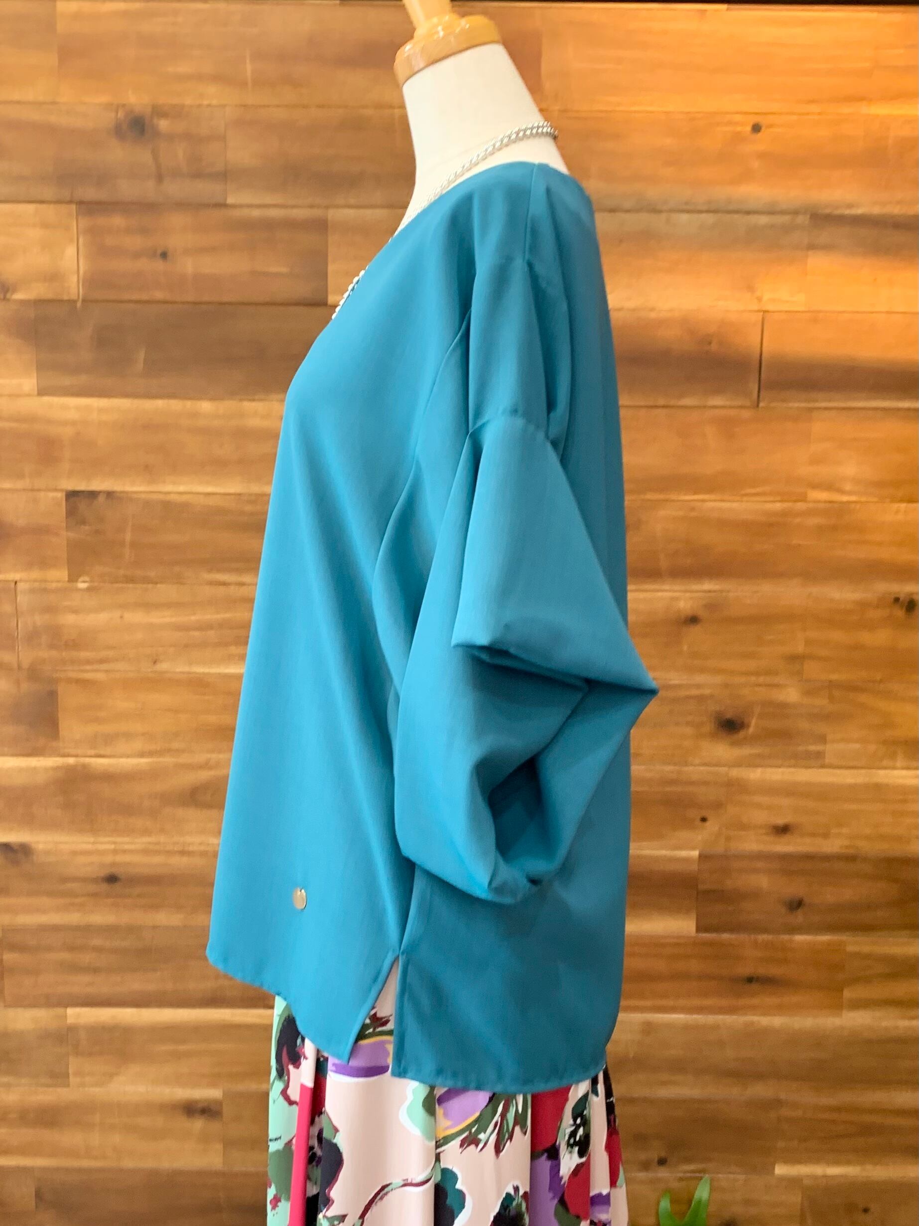 幅広に折り返したお袖が特徴で二の腕をしっかりとカバーし腕を細く見せてくれます◎