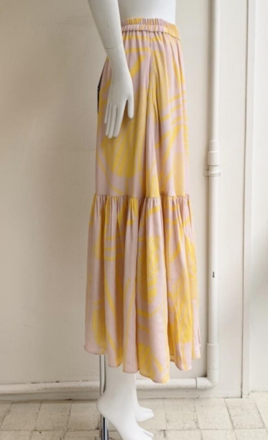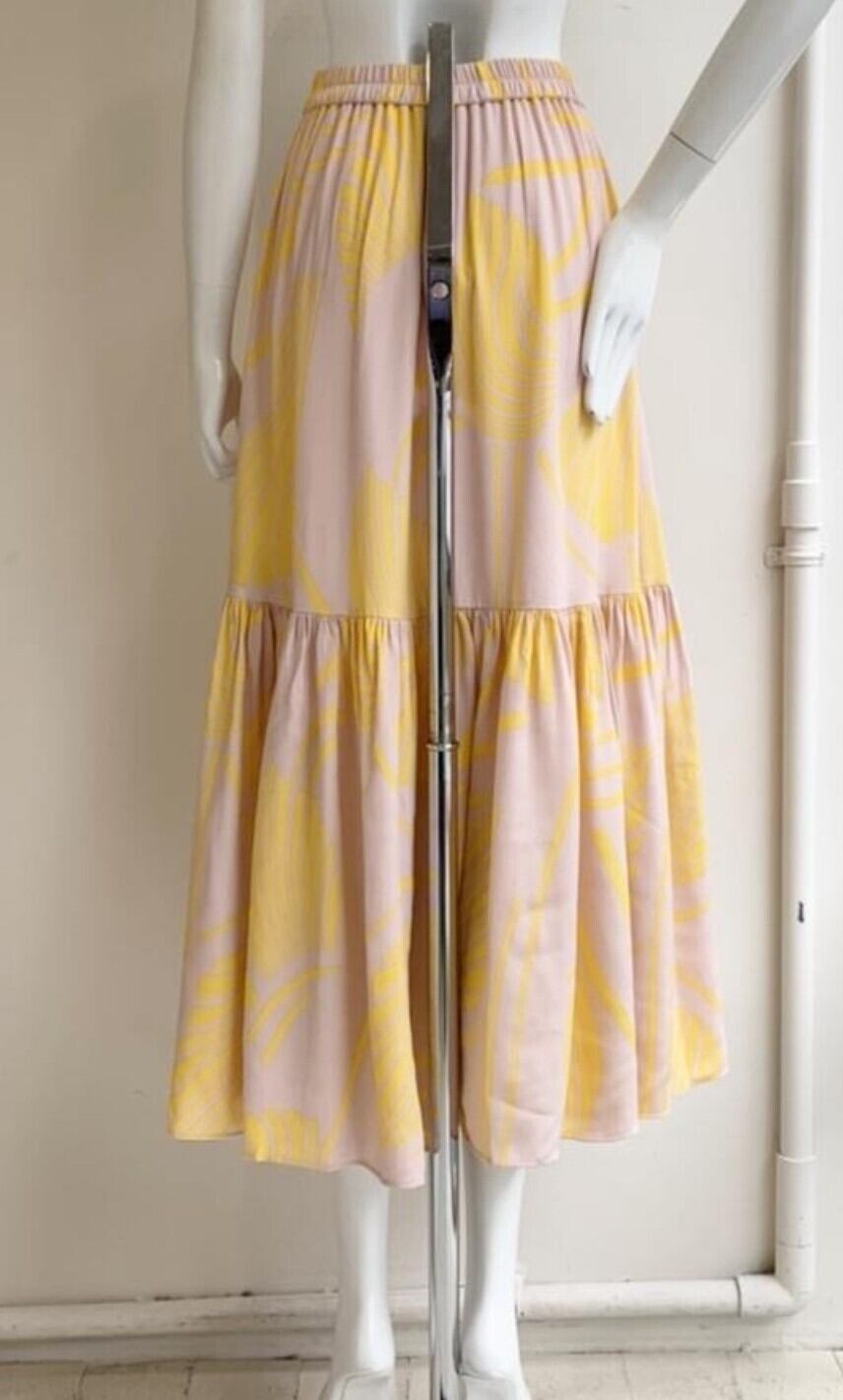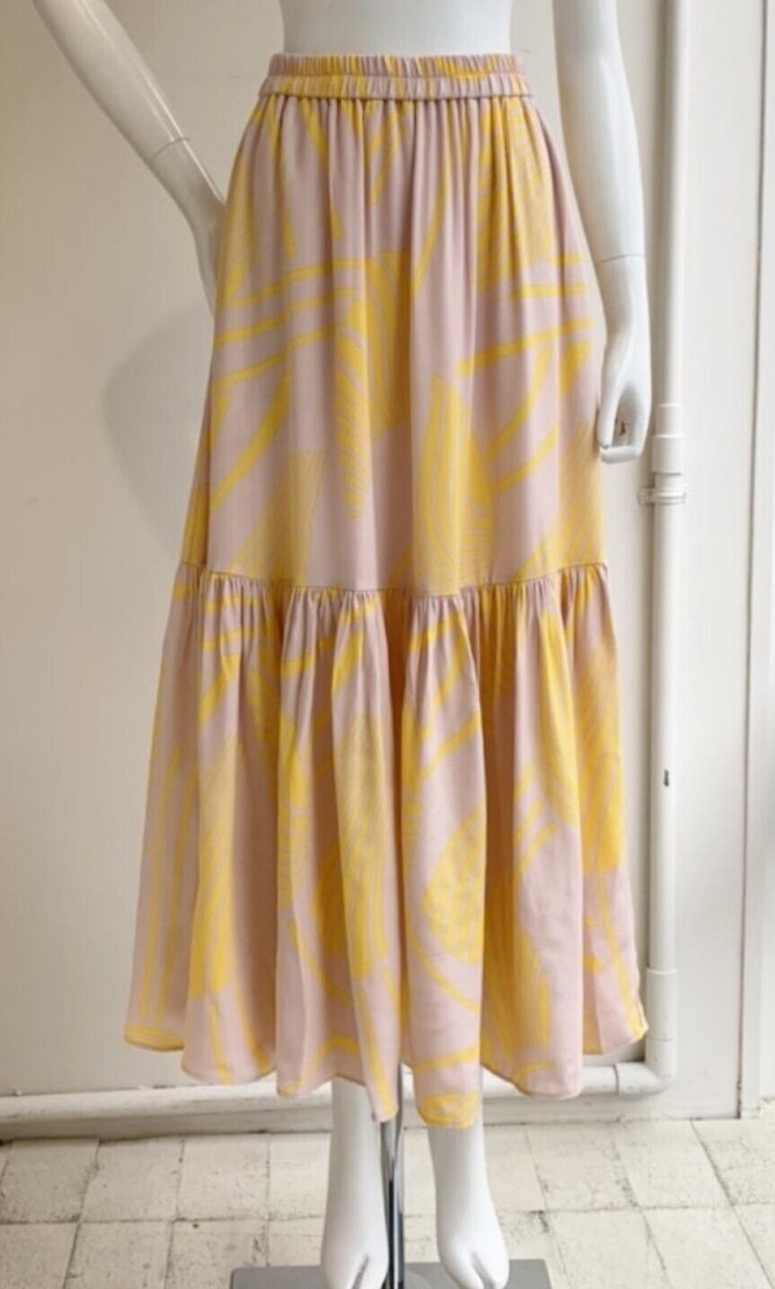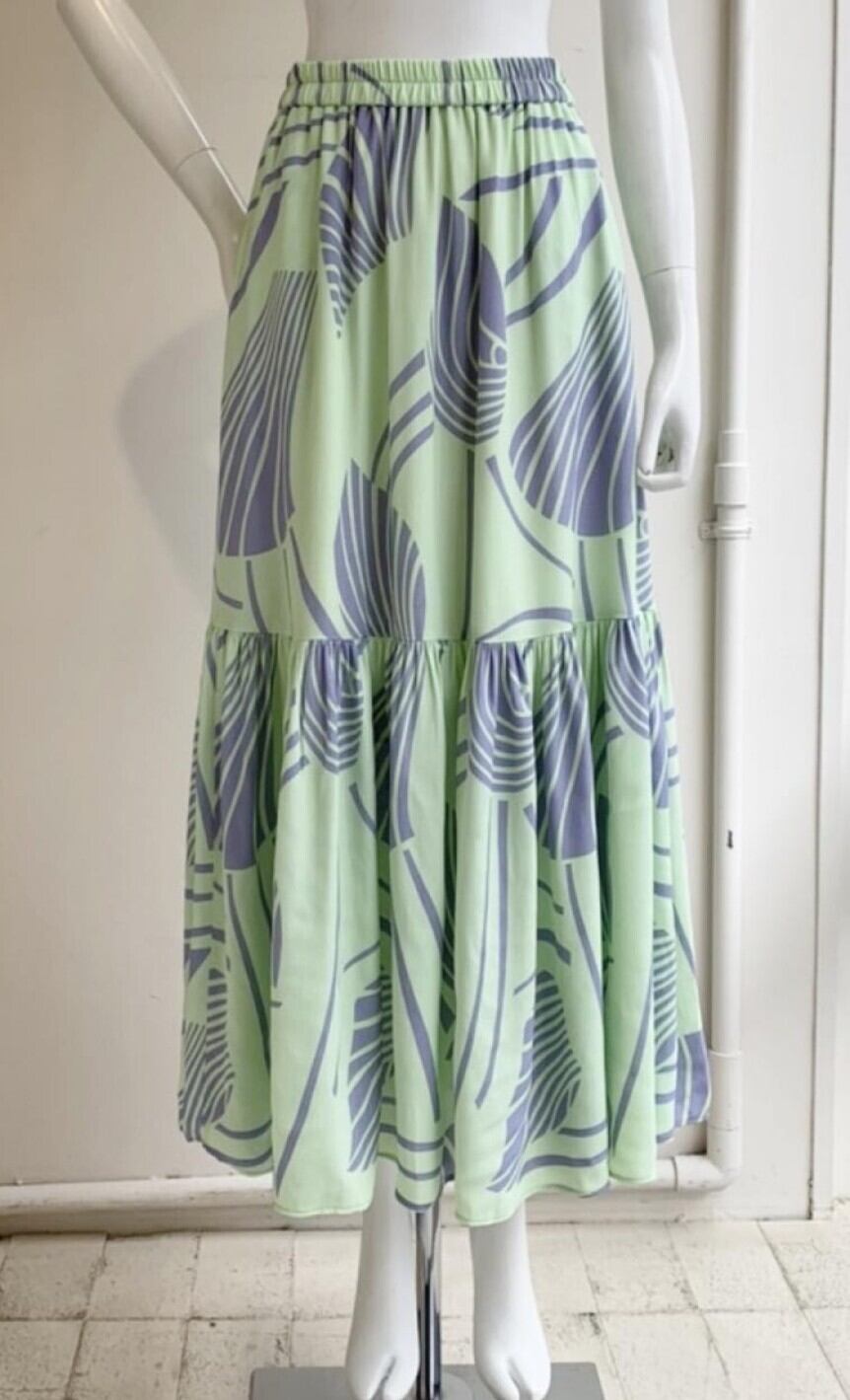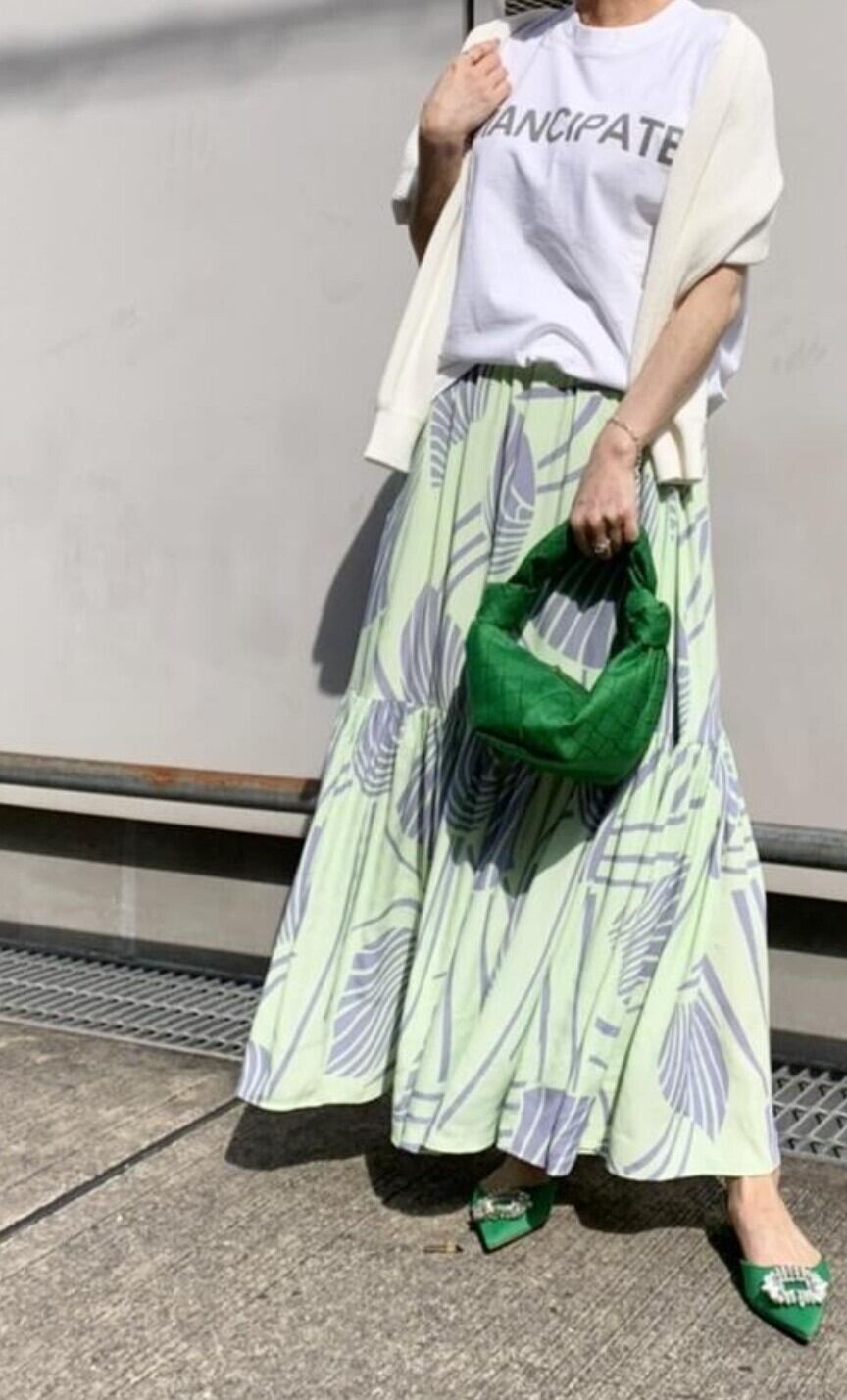 ペールトーンのリーフプリントが今年っぽいムードのティアードスカート♡