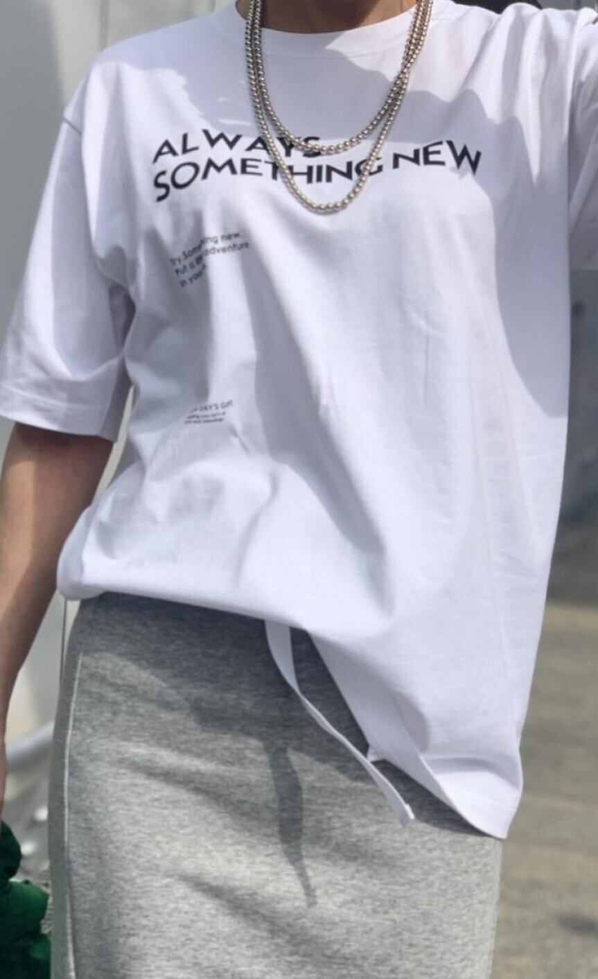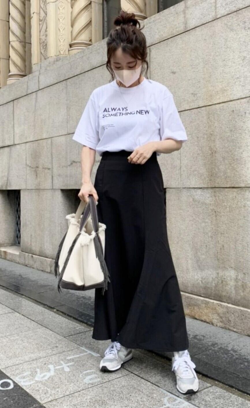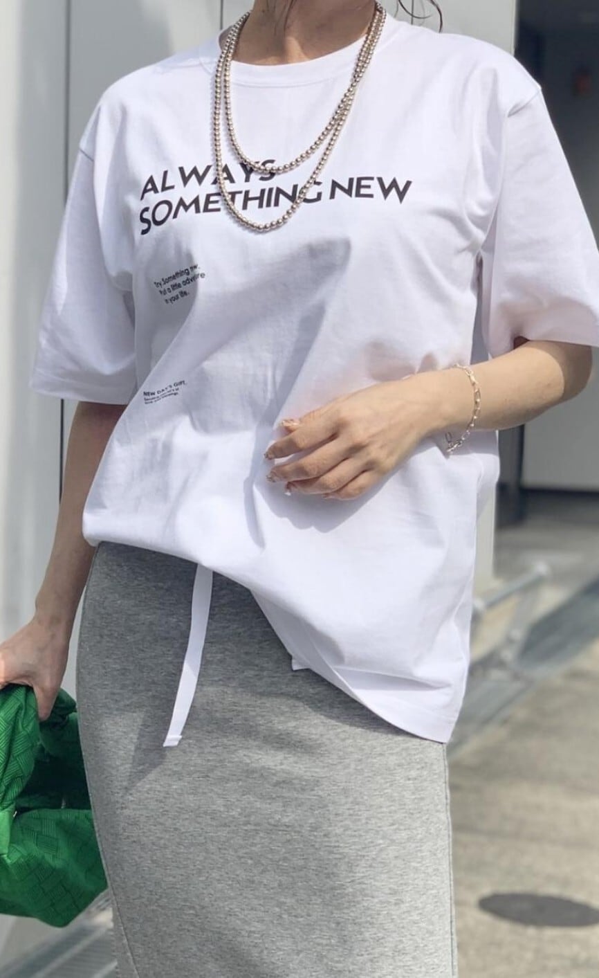大きさの異なるロゴを配置したデザインが大人かわいいTシャツ⭐