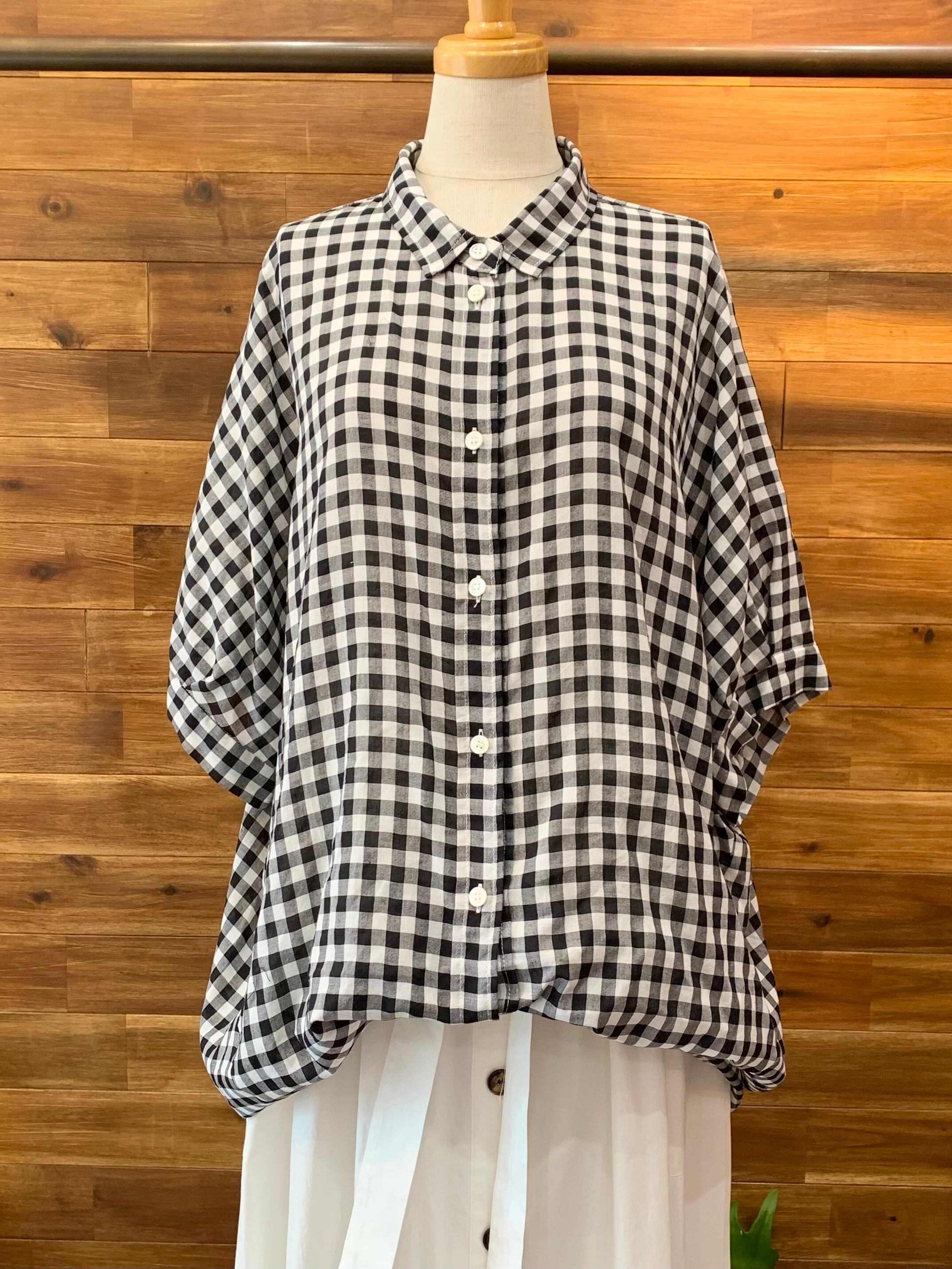 チェック柄はレーヨン47% 綿37% ポリエステル16%の薄手でさらりとした肌触りで、柔らかな着心地です♡