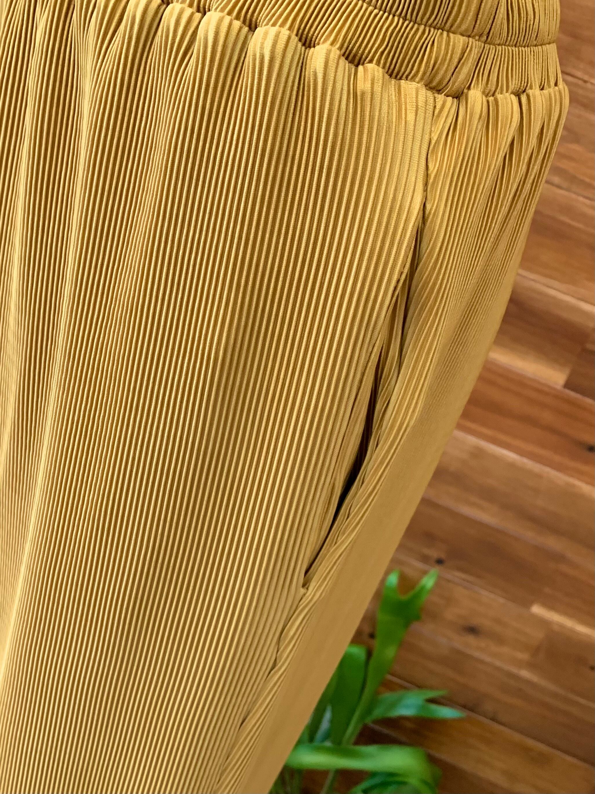落ち感のあるプリーツ素材を使用し、パーカーやニット、ワンピースなどとのスタイリングにもぴったりです◎