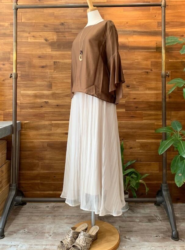 ゆったりとした身幅で身体のラインを拾わずストレスフリーで着て頂けます◎