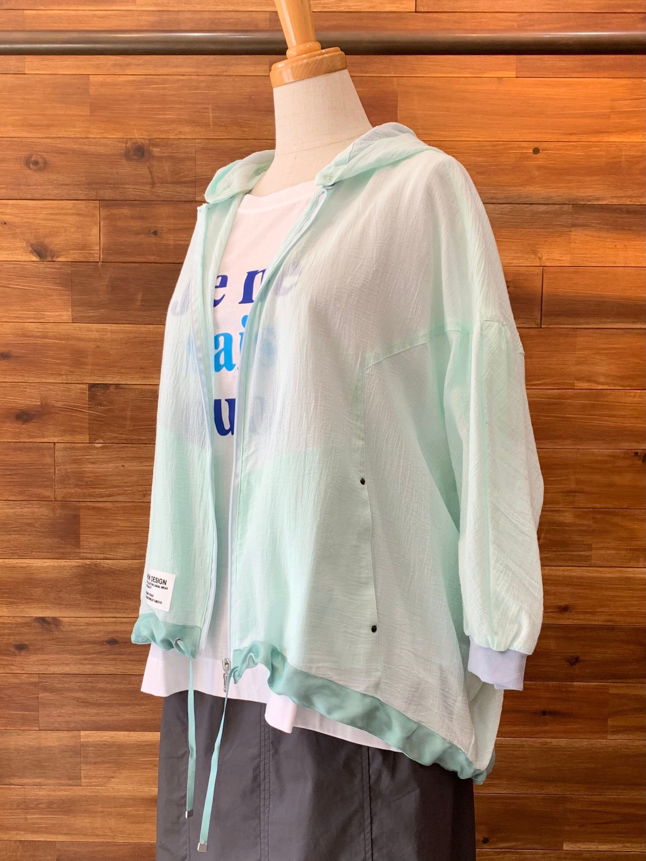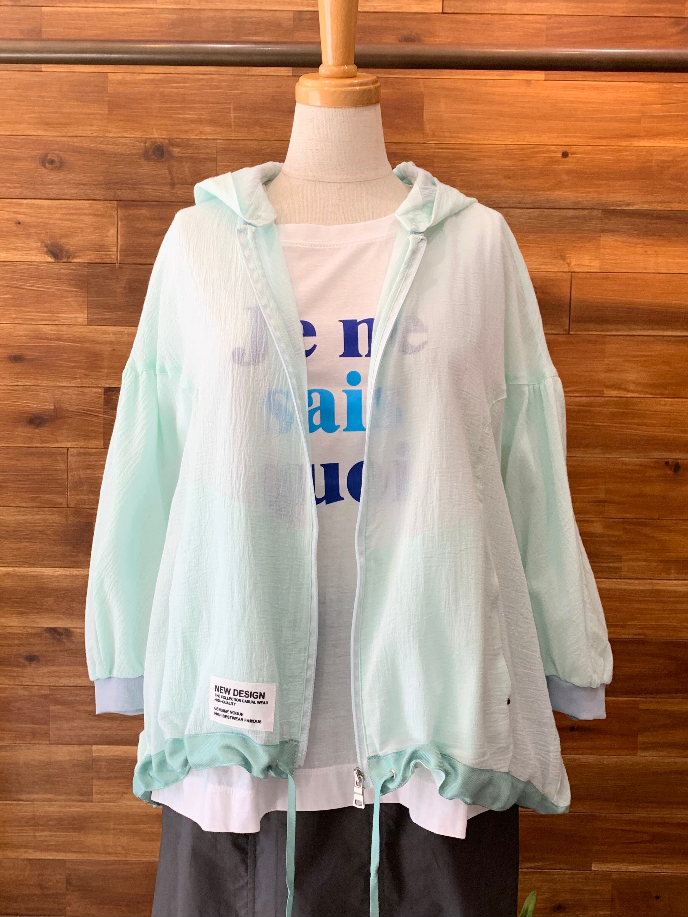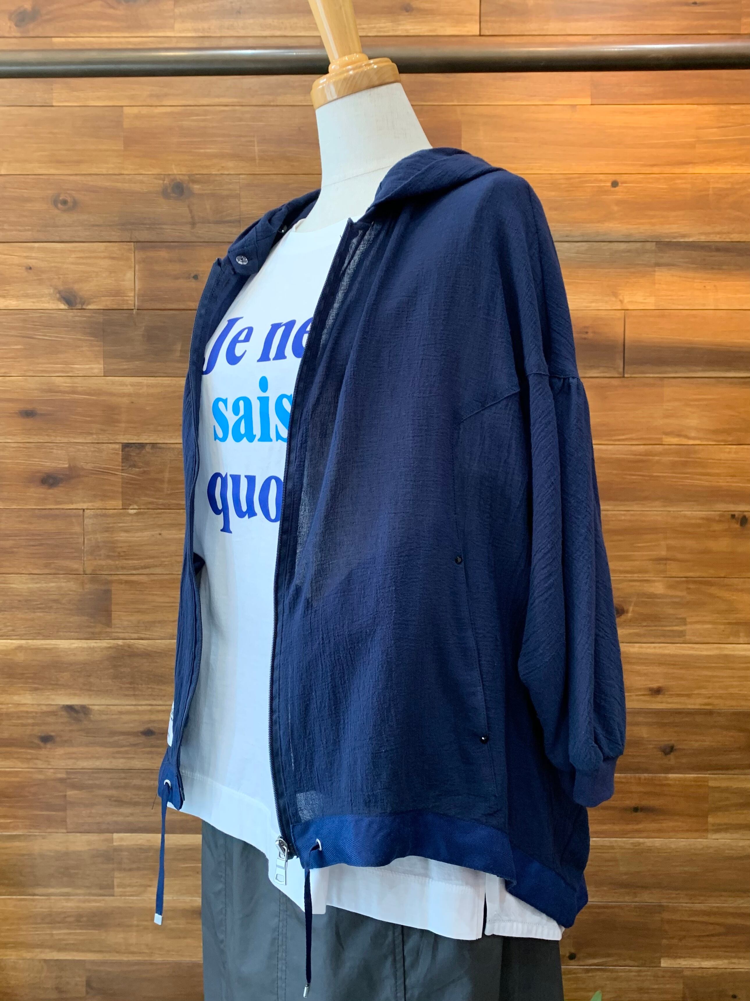 七分袖で袖口がリブになっており、たくし上げた時にも収まりが良く、とても軽いので日除けや冷房対策に、持ち運ぶのにも便利で役立ちます◎