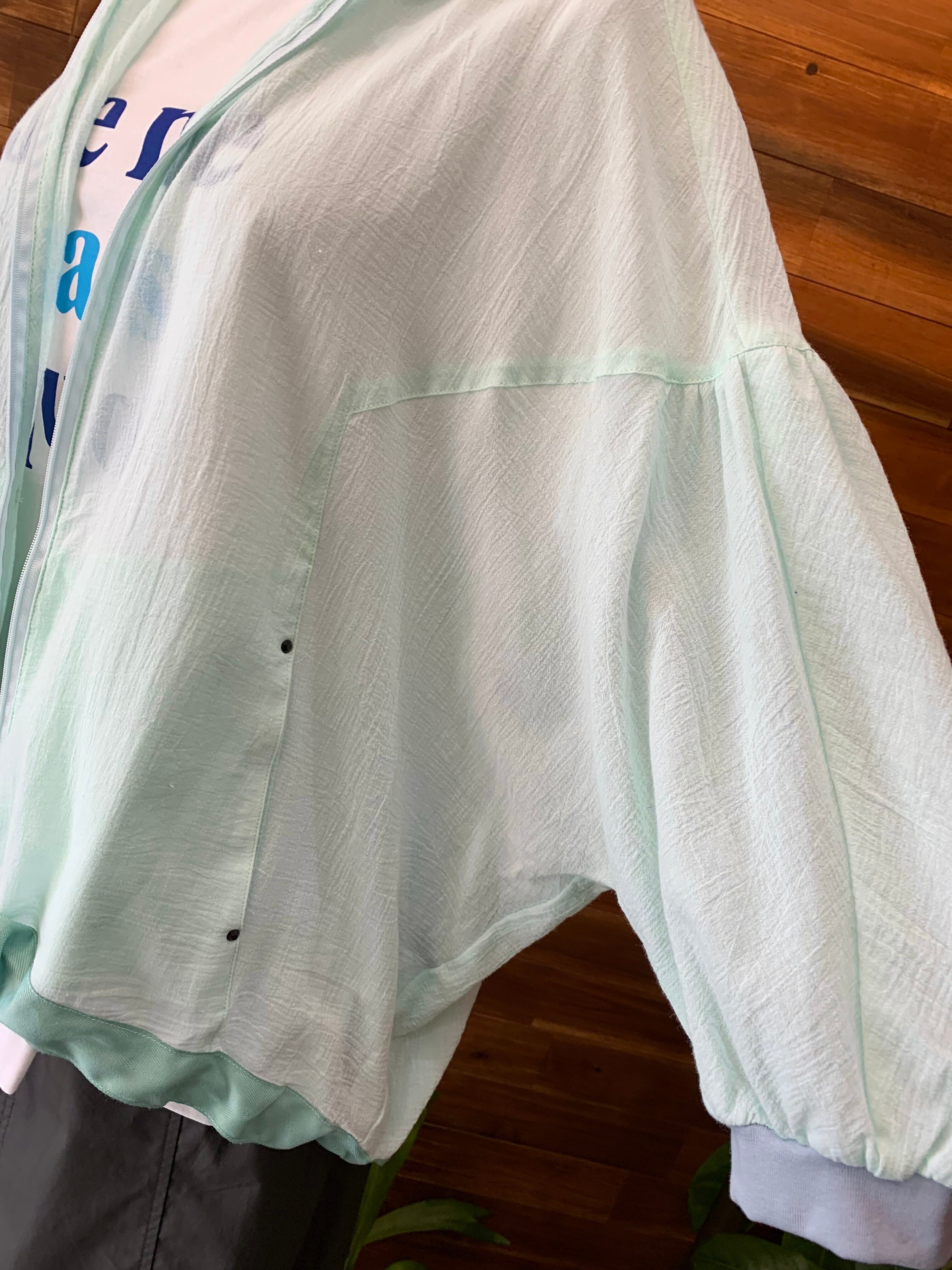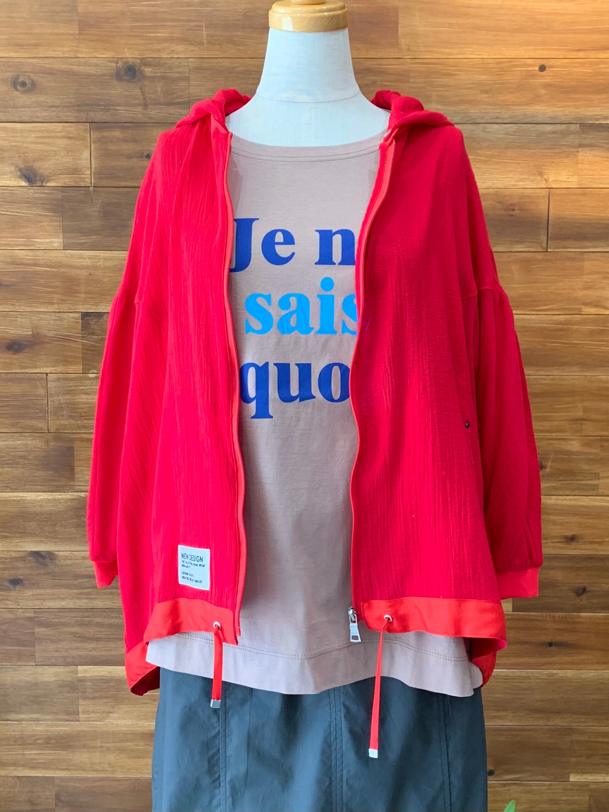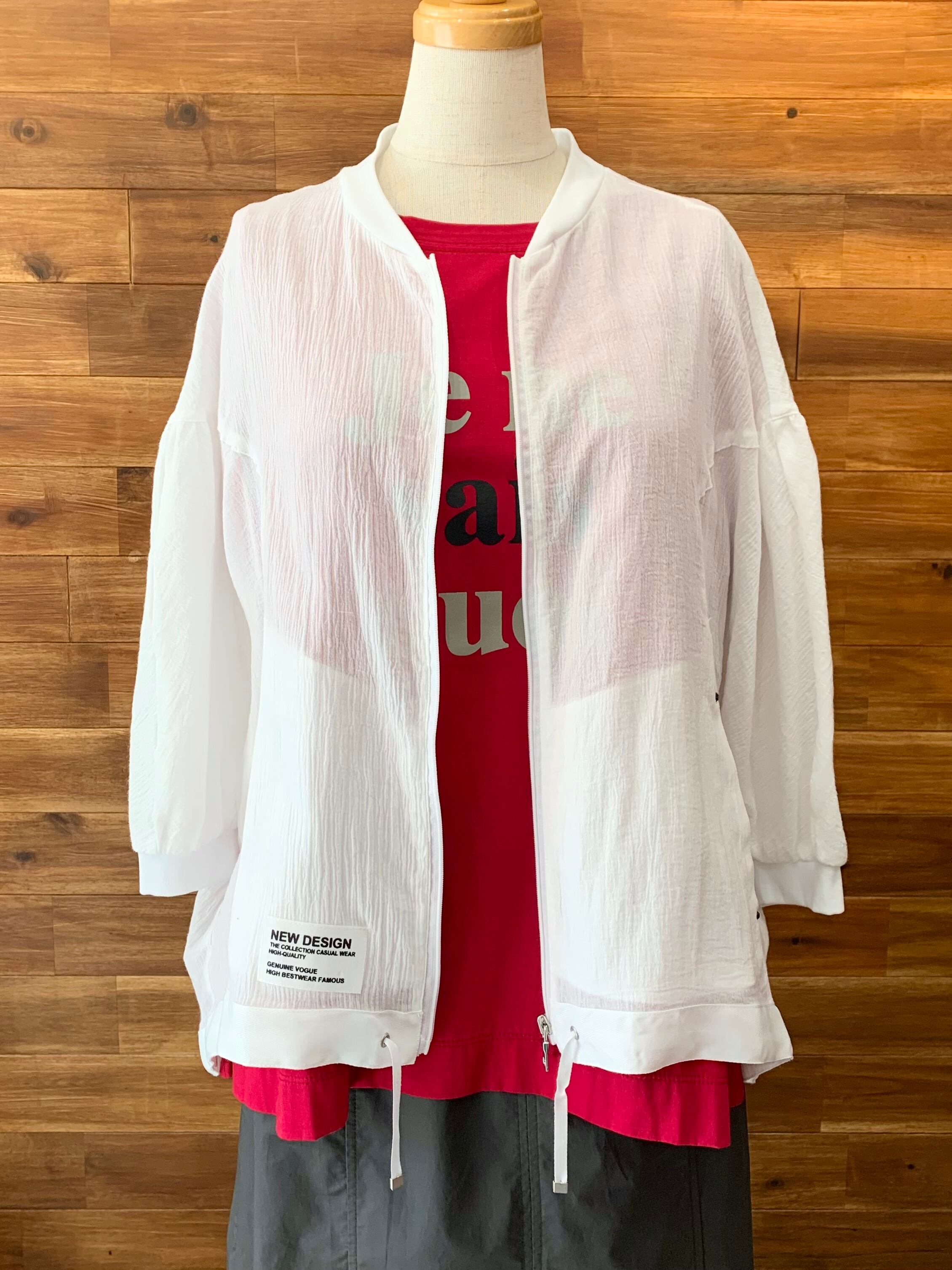七分袖で袖口がリブになっており、たくし上げた時にも収まりが良く、とても軽いので日除けや冷房対策に、持ち運ぶのにも便利で役立ちます◎
