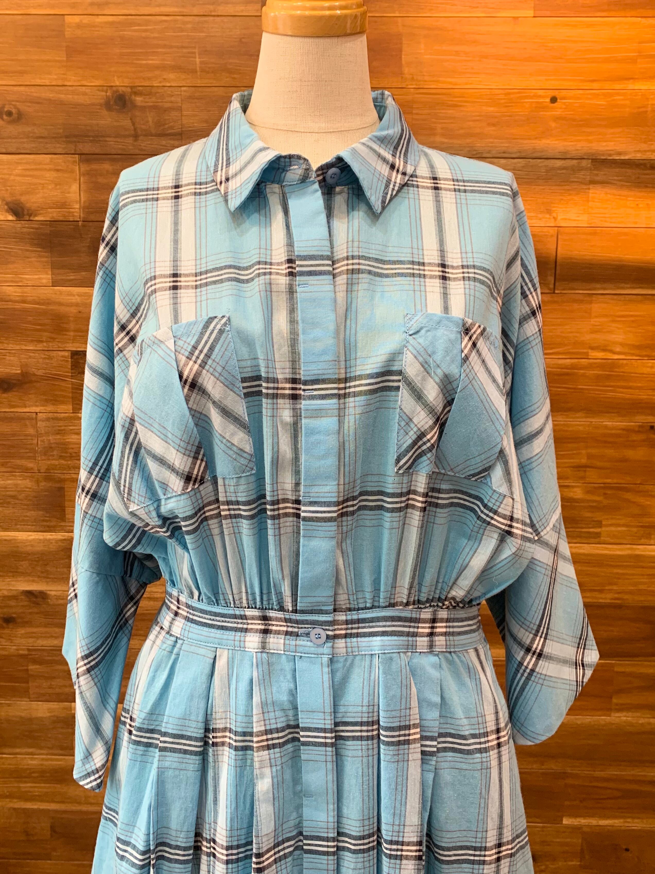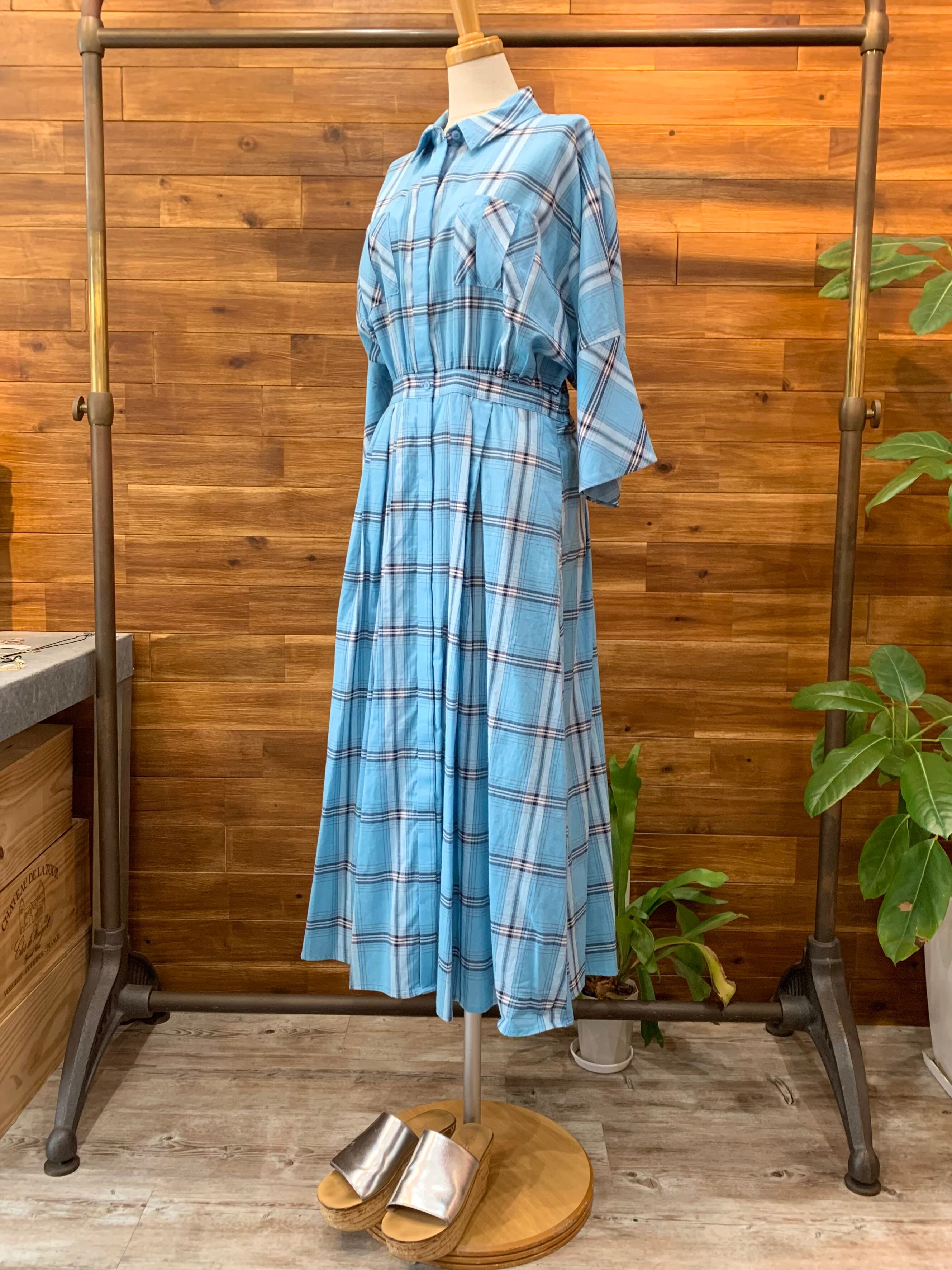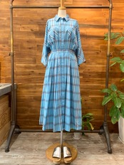 爽やかな色調のチェックとウエストマークのシルエットが、レトロで可愛いシャツワンピース♡