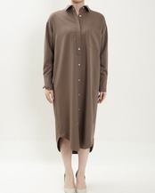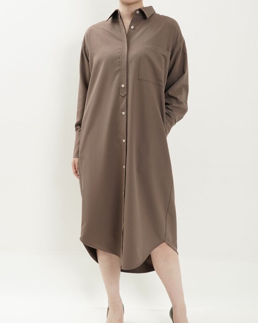 前立てを変形比翼にしたャツワンピは、