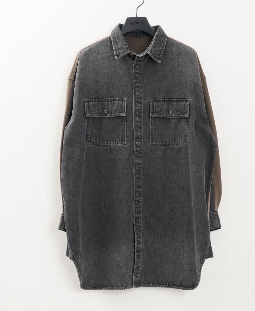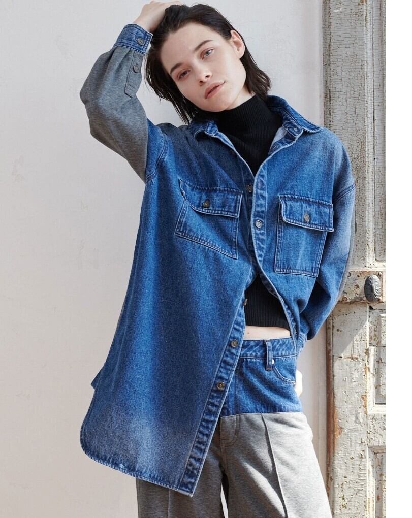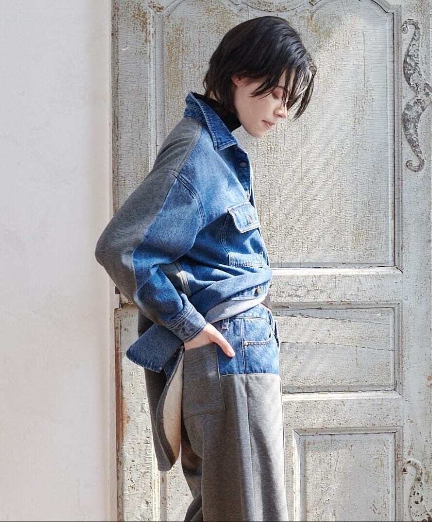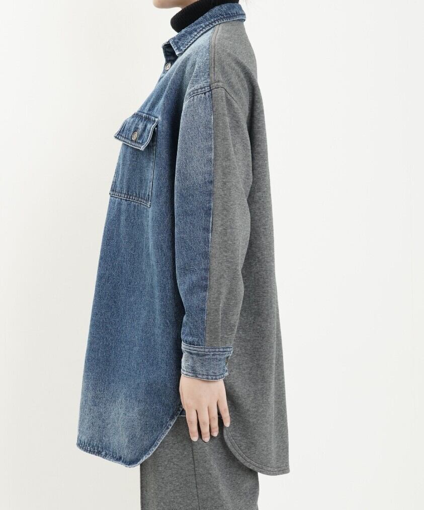 高密度の目面の綺麗な裏毛と程よい肉感のあるデニム素材でドッキングしたシャツジャケット。