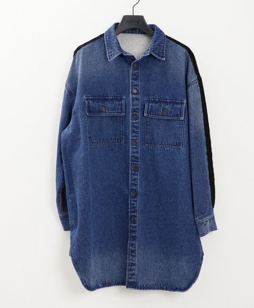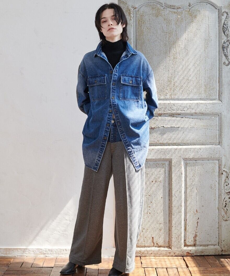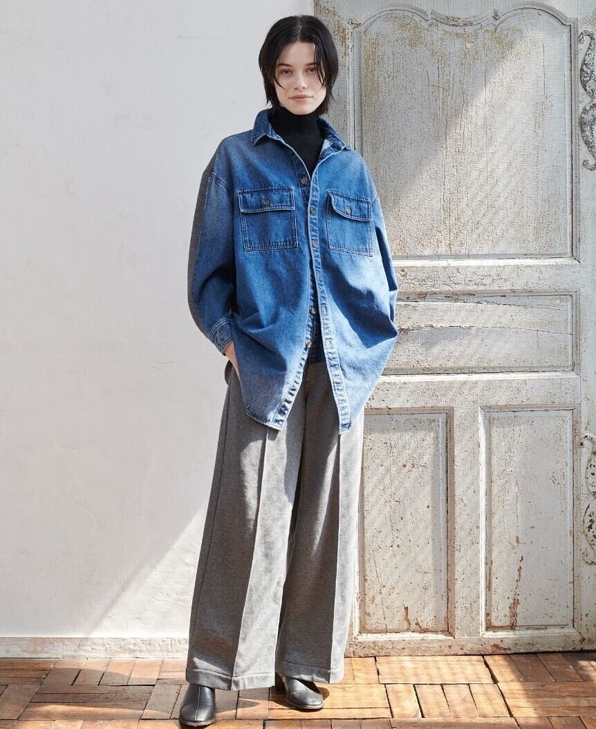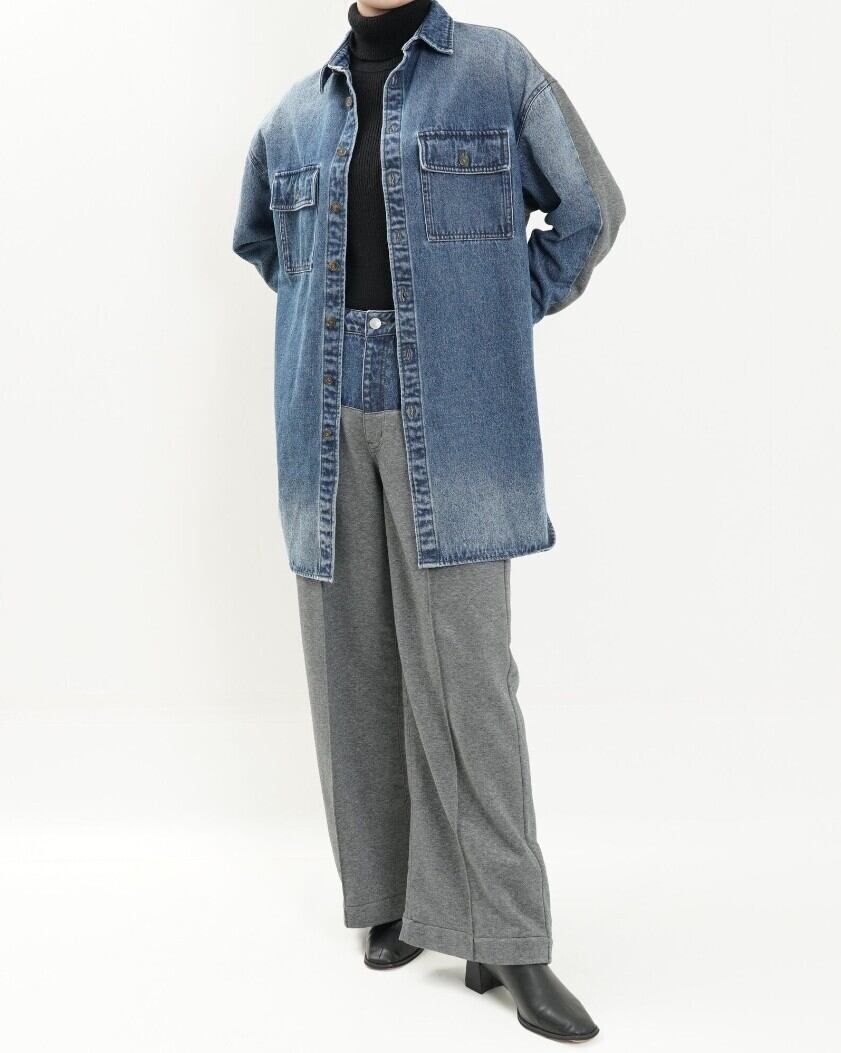高密度の目面の綺麗な裏毛と程よい肉感のあるデニム素材でドッキングしたシャツジャケット。
