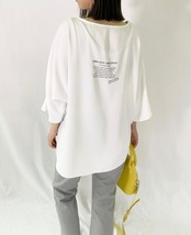 Tシャツシルエットのブラウスにロゴプリントを施して、程よくカジュアルダウンさせました。