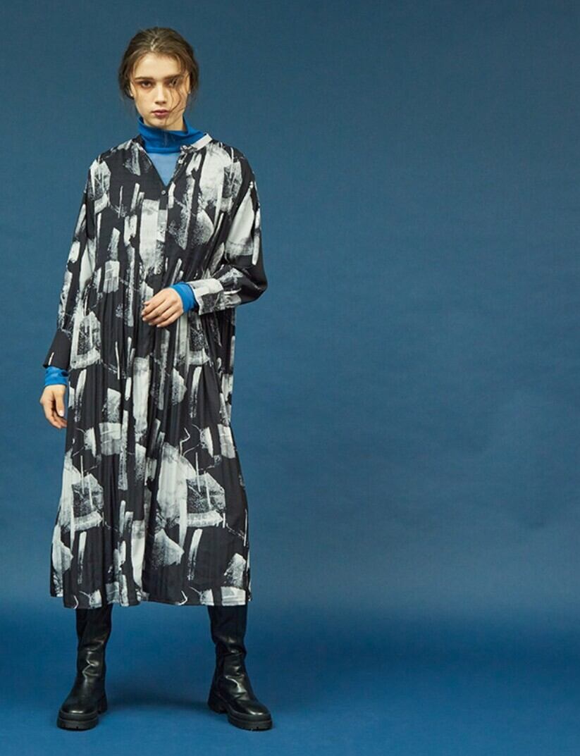 合わせやすいプリントですので、秋口は羽織りとして、またジレやショートニットとのレイヤードに、長いシーズン活躍してくれるオススメワンピースです◎