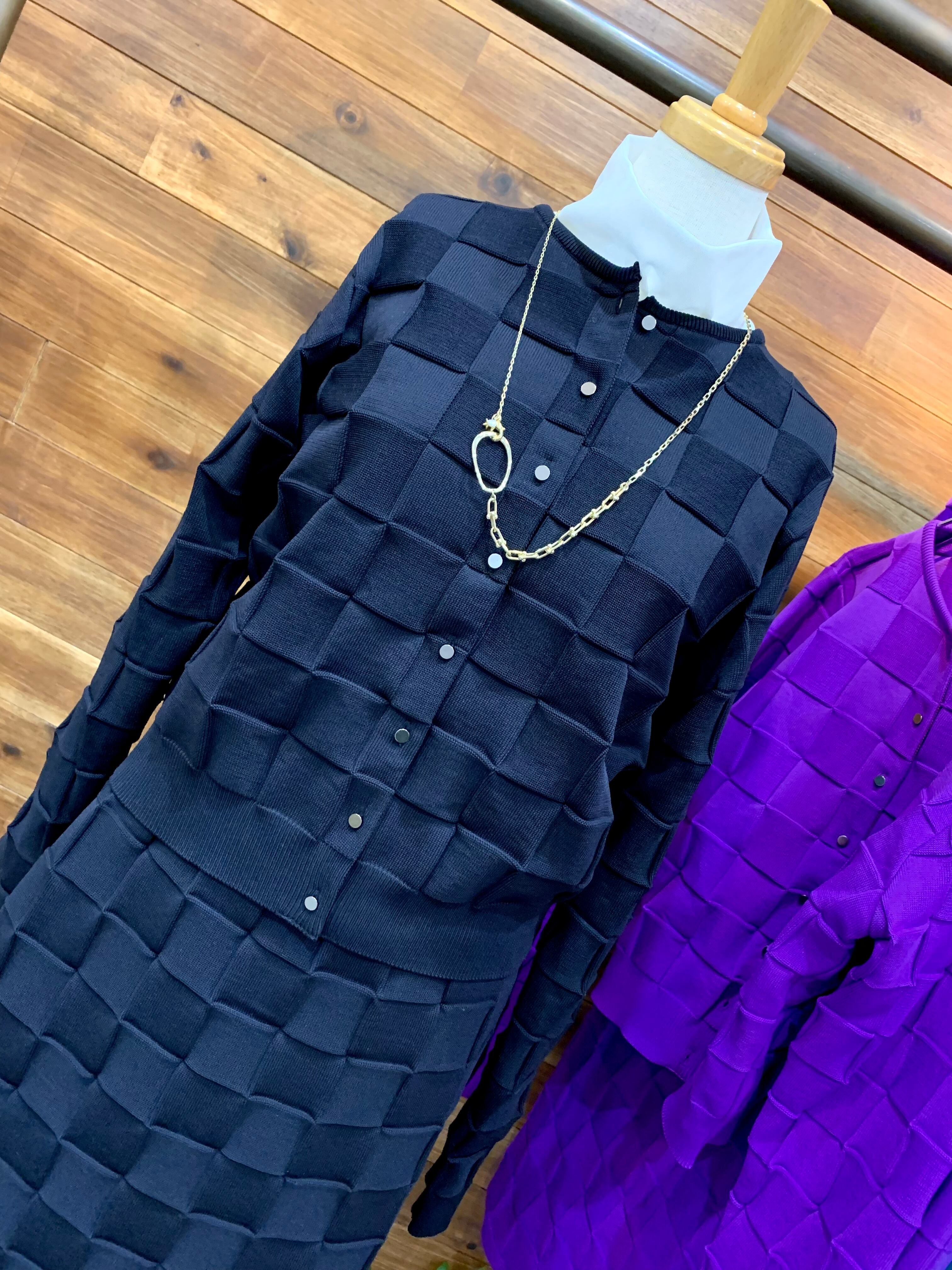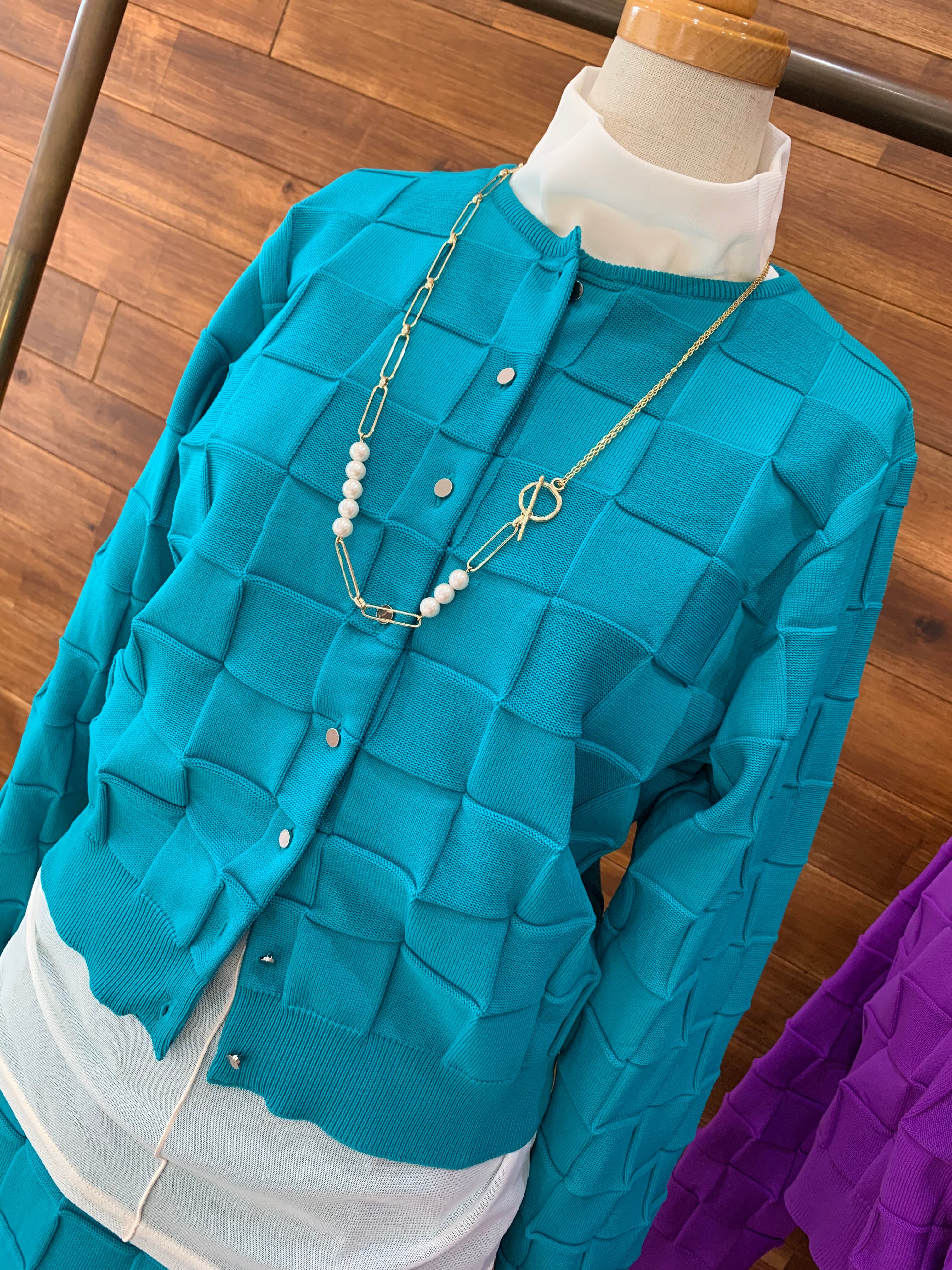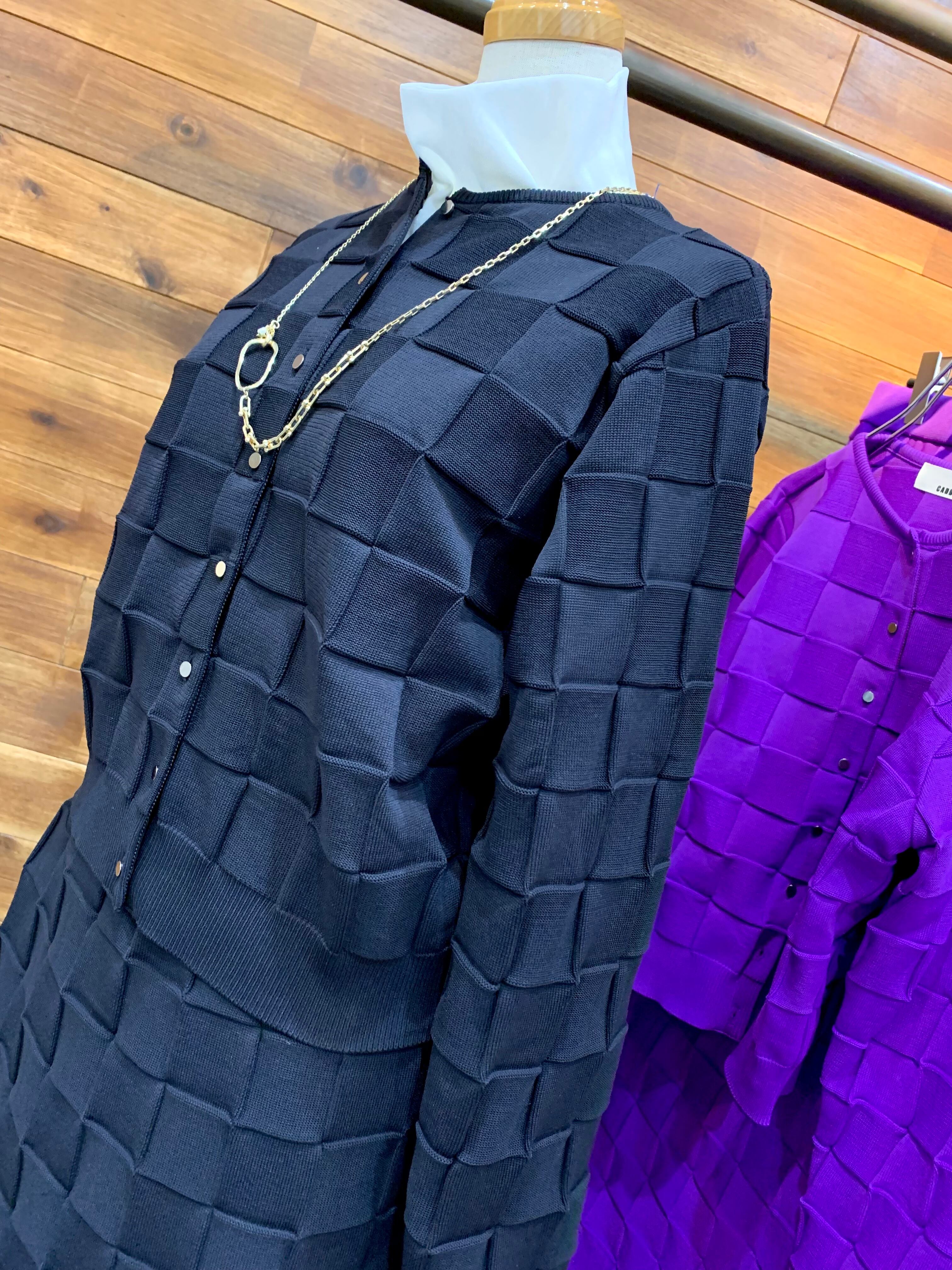 ブロックチェックの柄が、モードな雰囲気のニットカーディガン♡