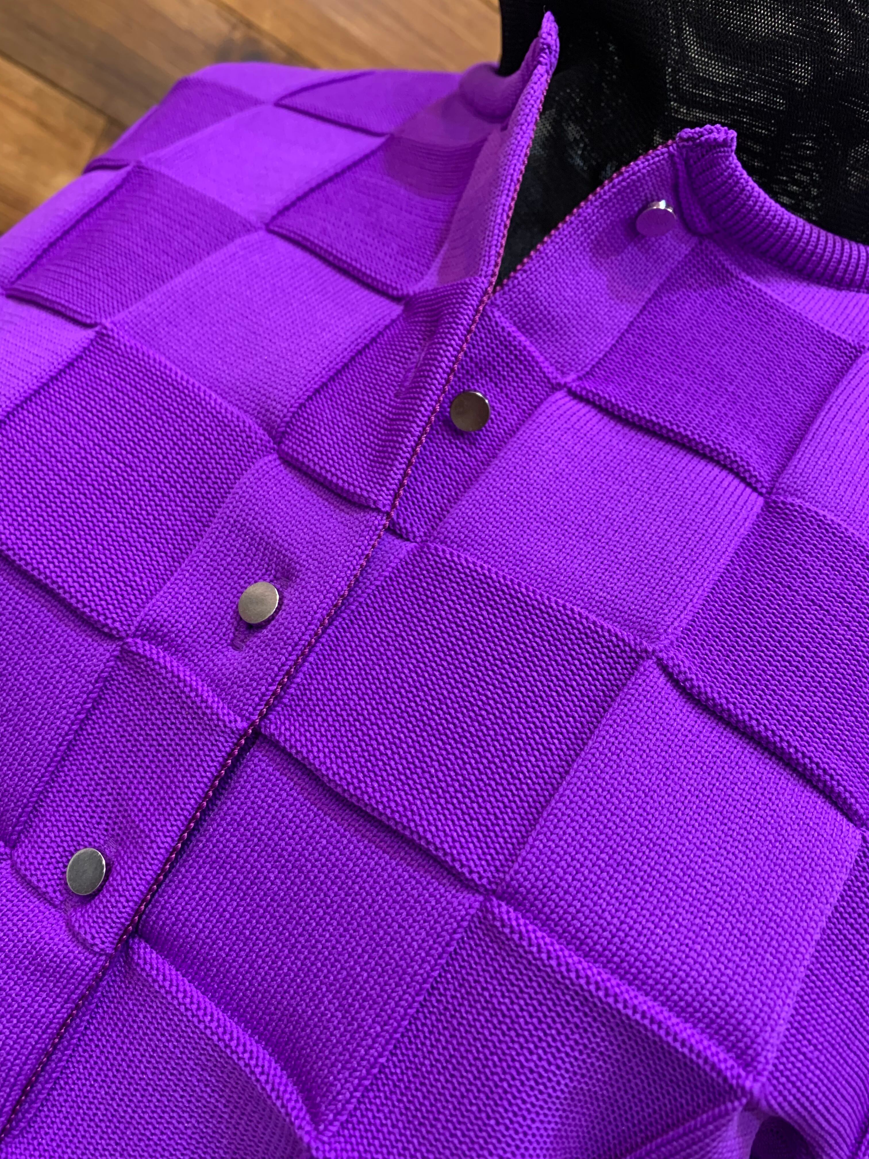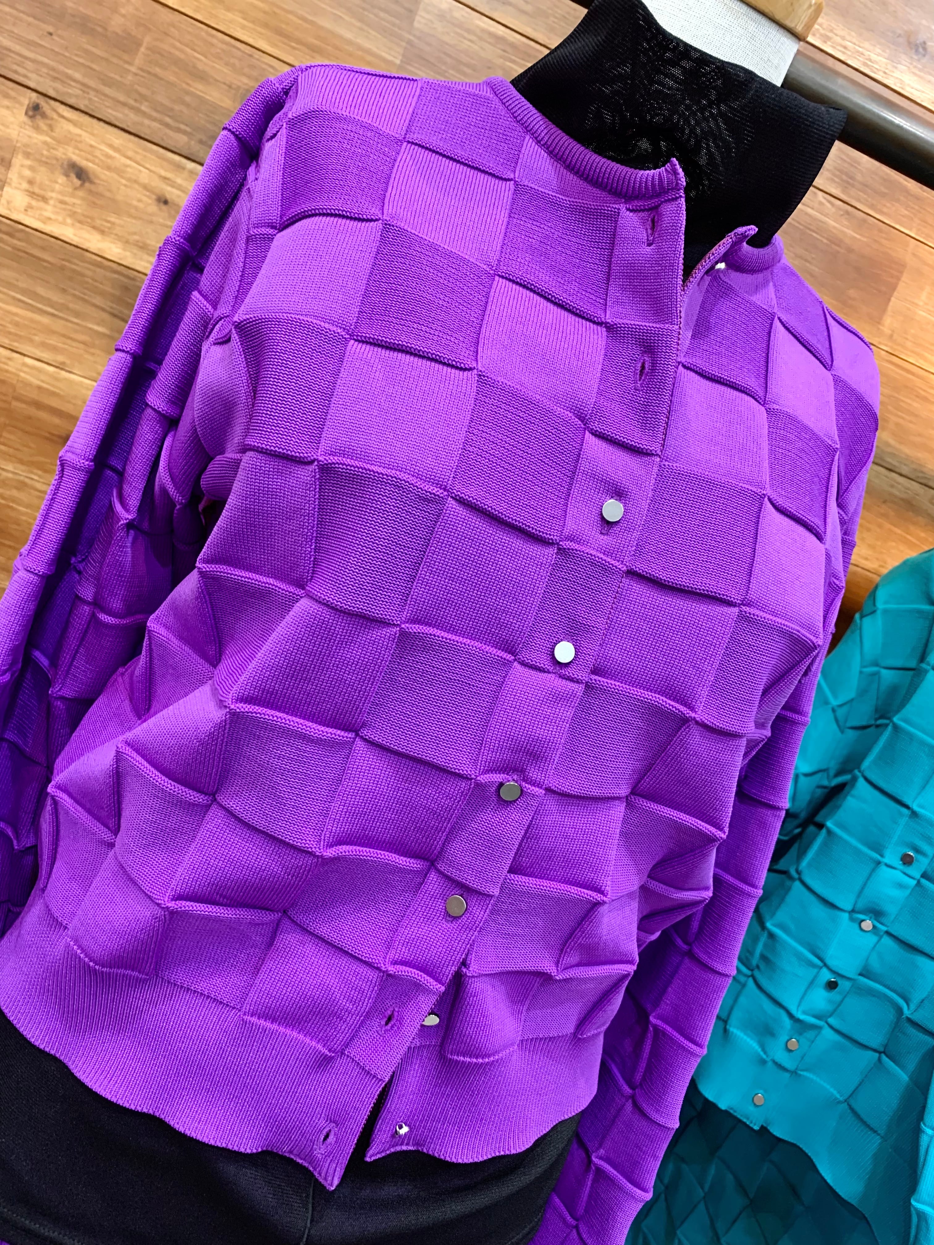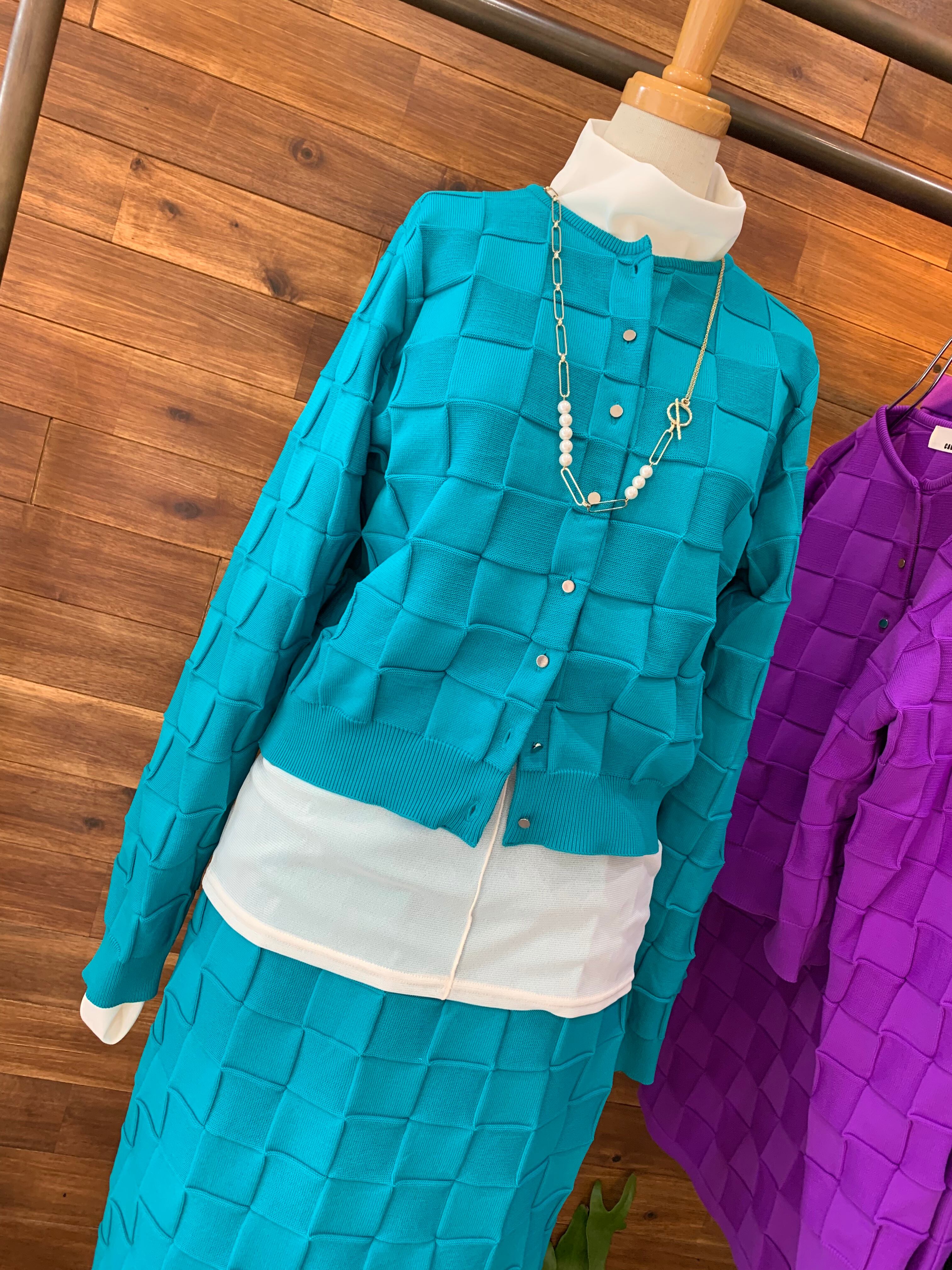 ブロックチェックの柄が、モードな雰囲気のニットカーディガン♡