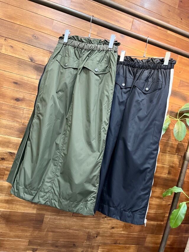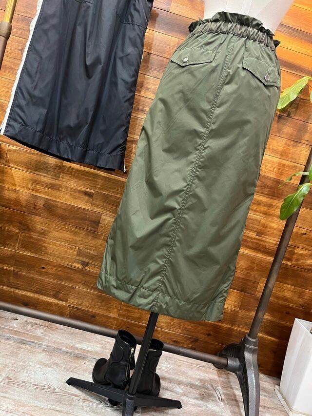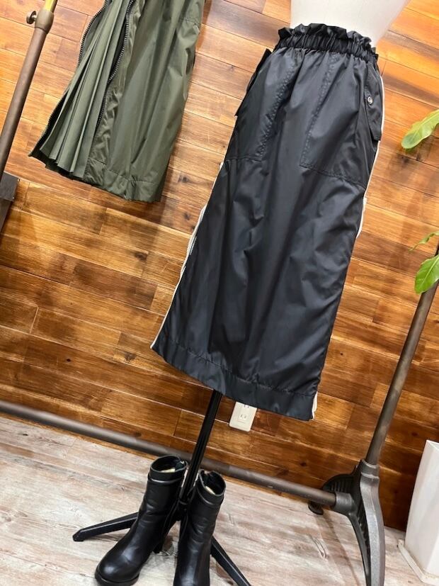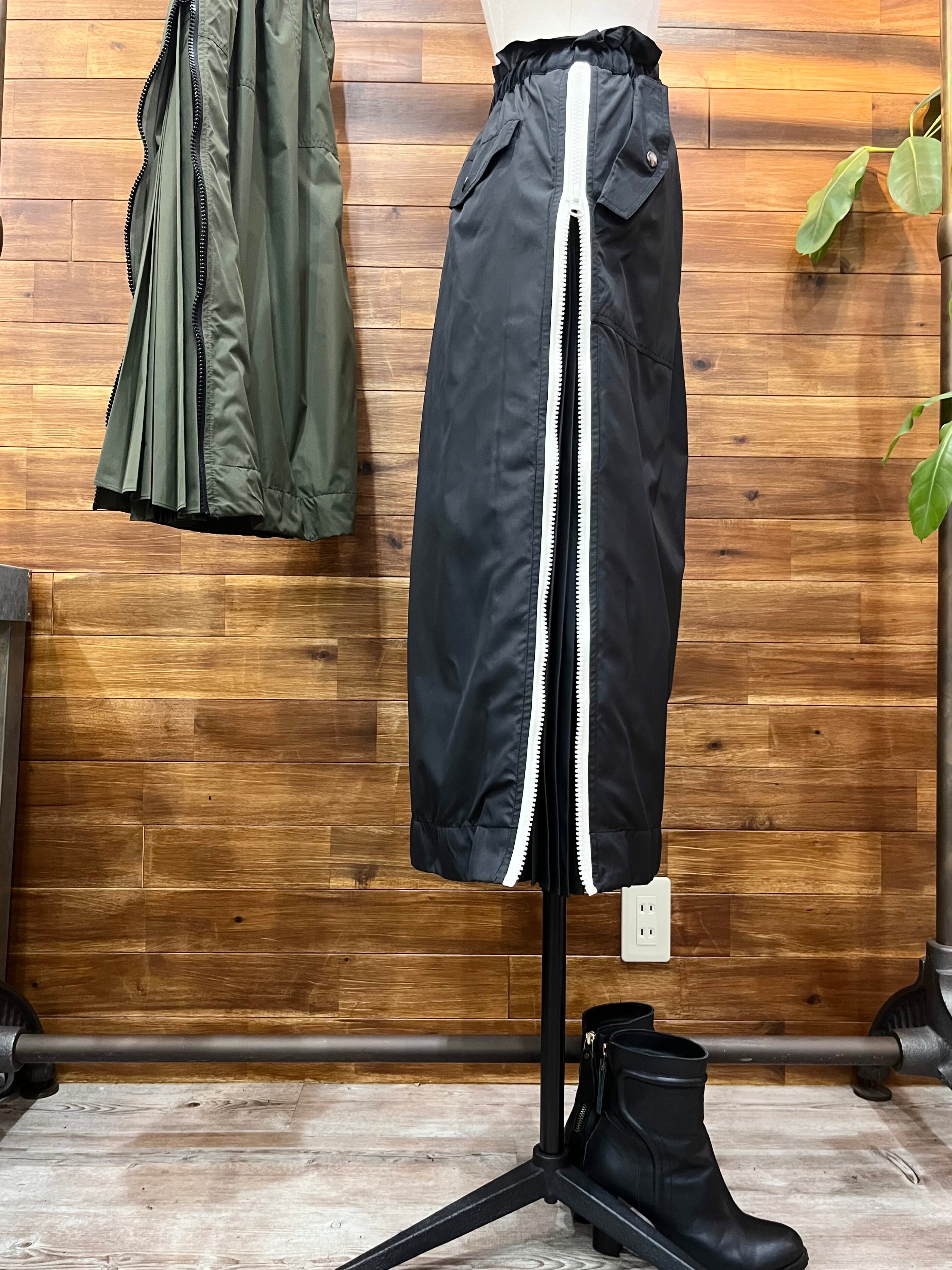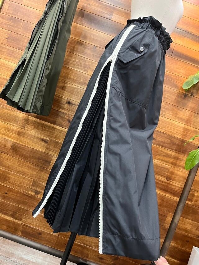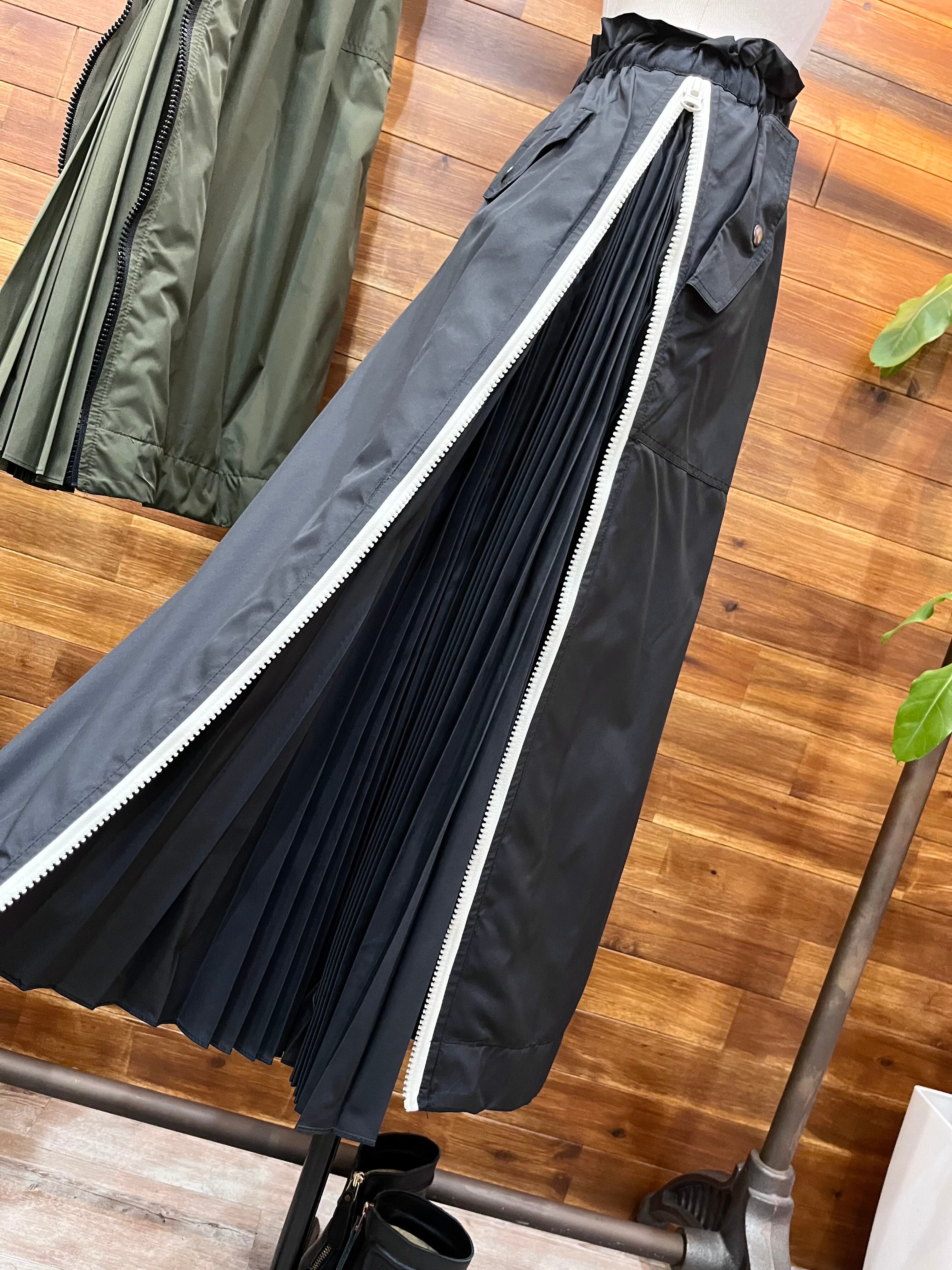 サイドのファスナーを開けるとプリーツが出てくるデザインになっていて、タイトからフレアまで、ご自分好みの広がり、落ち感が楽しめます♡
