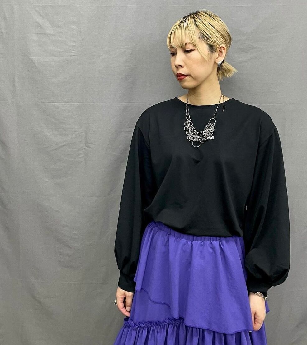 サイドスリットの入ったデザインで、フロントは短めのレングスですので、フロントインもしやすく、パンツにもスカートにも合わせやすいのも嬉しいです◎