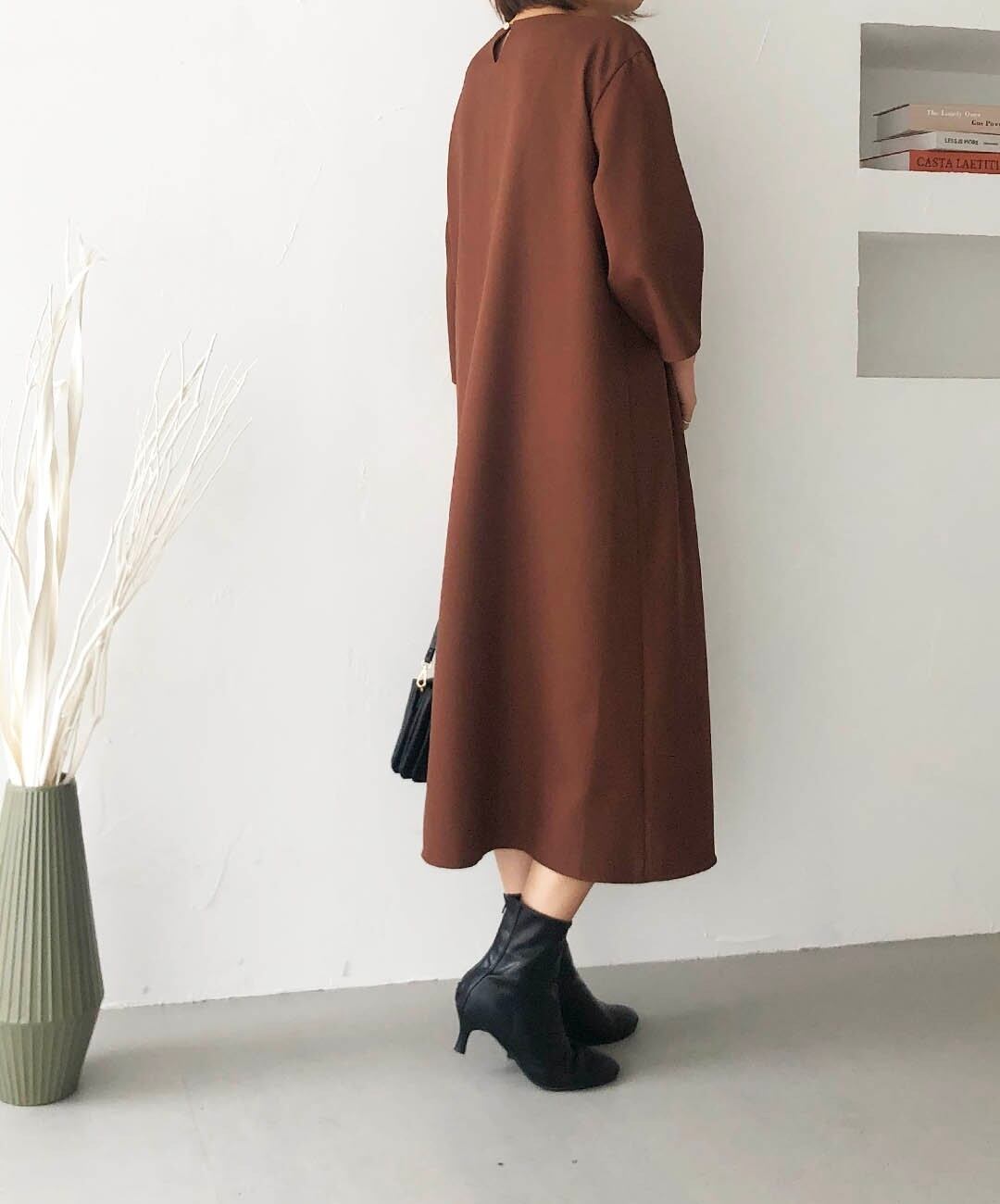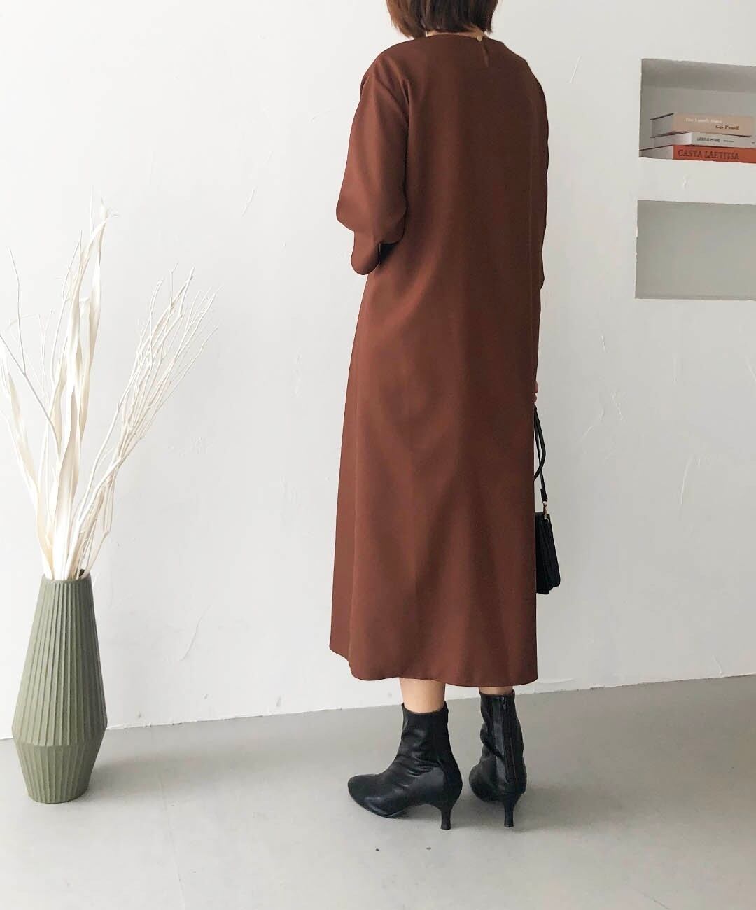サイドから後ろにかけてはストンとしたシルエットで、ノンストレスな着心地♪