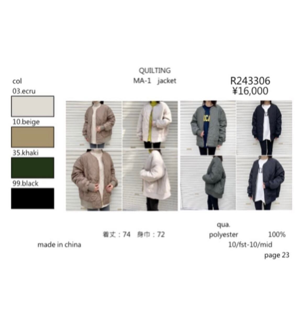 昨年大人気、即完売のキルティングのMA-1ジャケットが新色のエクリュとベージュの2色を追加して今年も登場します◎