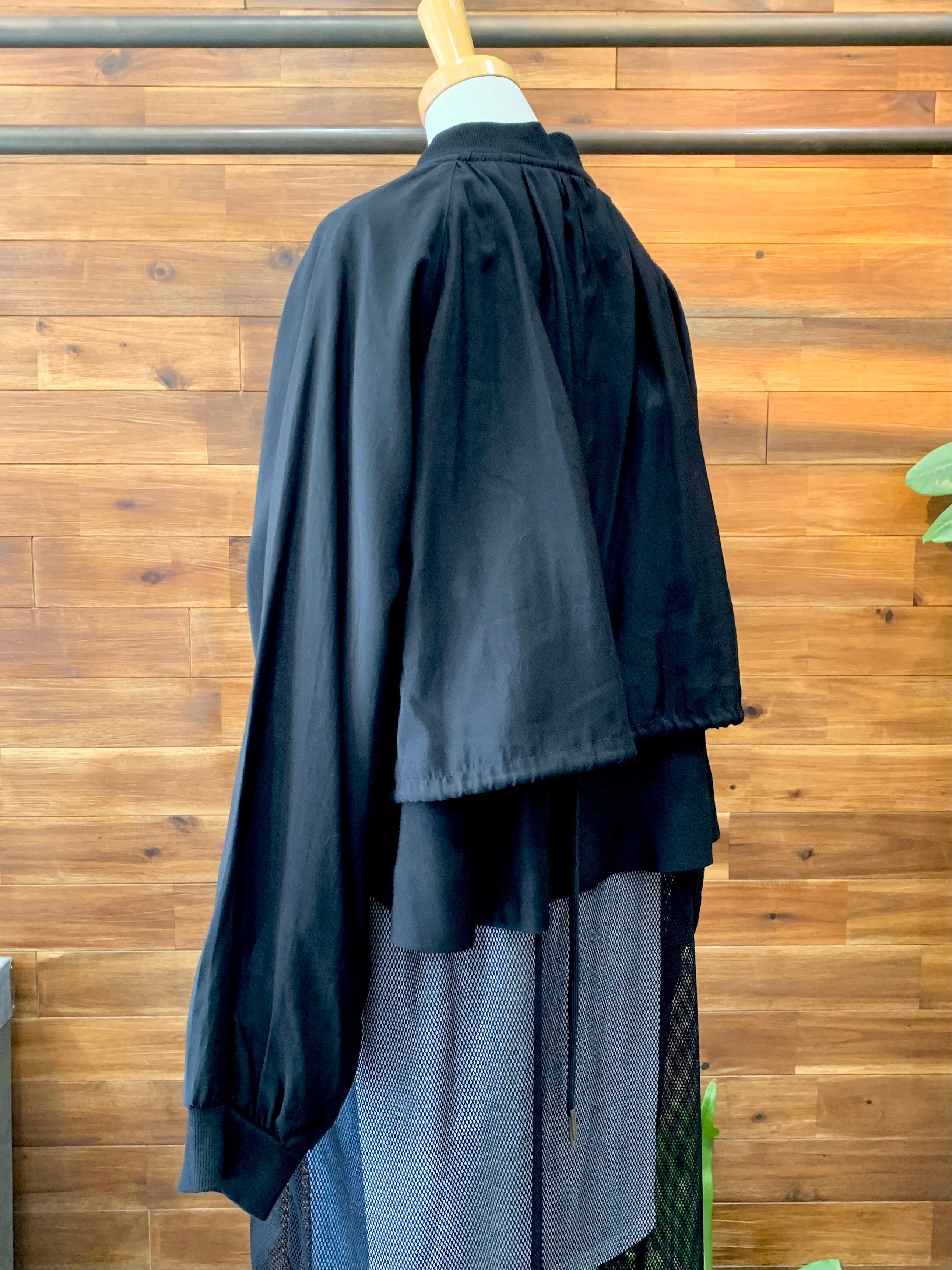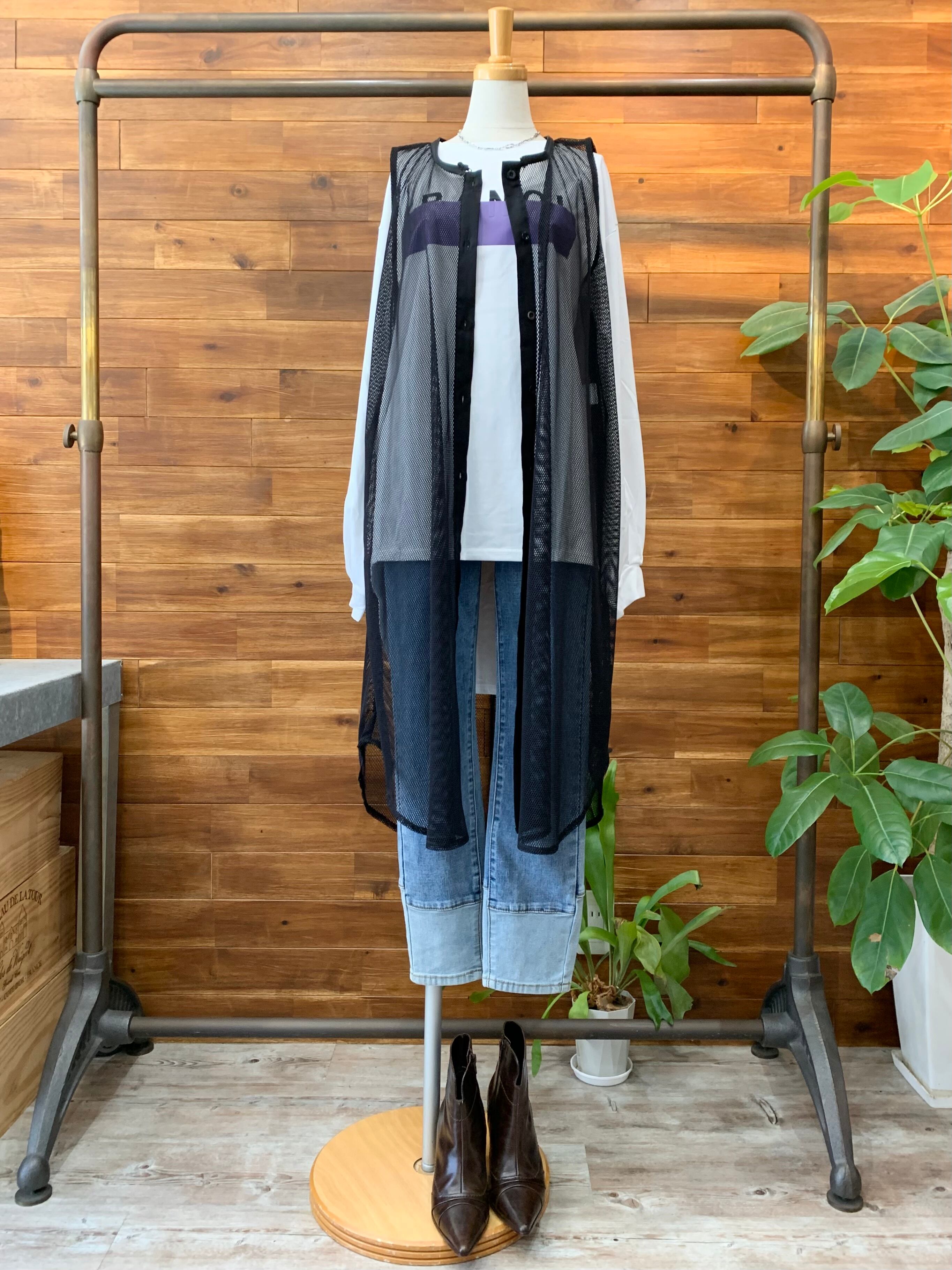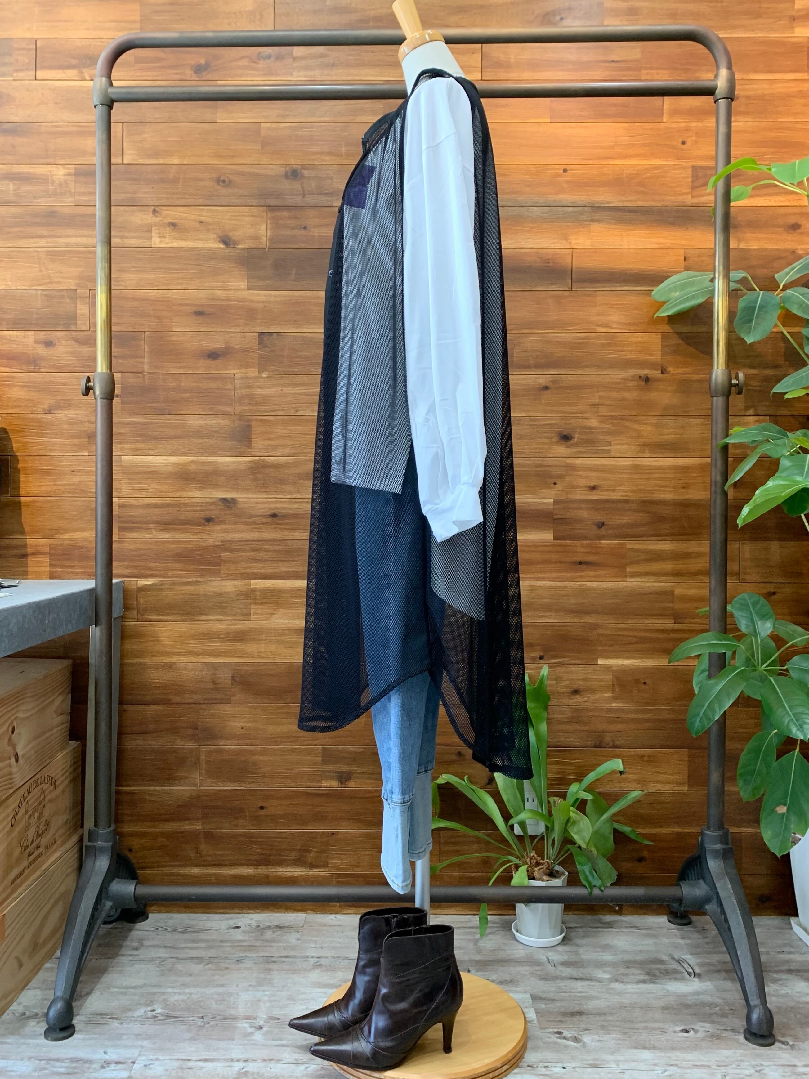 前ポタン付きのジレはメッシュ使いで今年風♫襟のファスナーで取り外し可能♫3wayでお使い頂けます◎