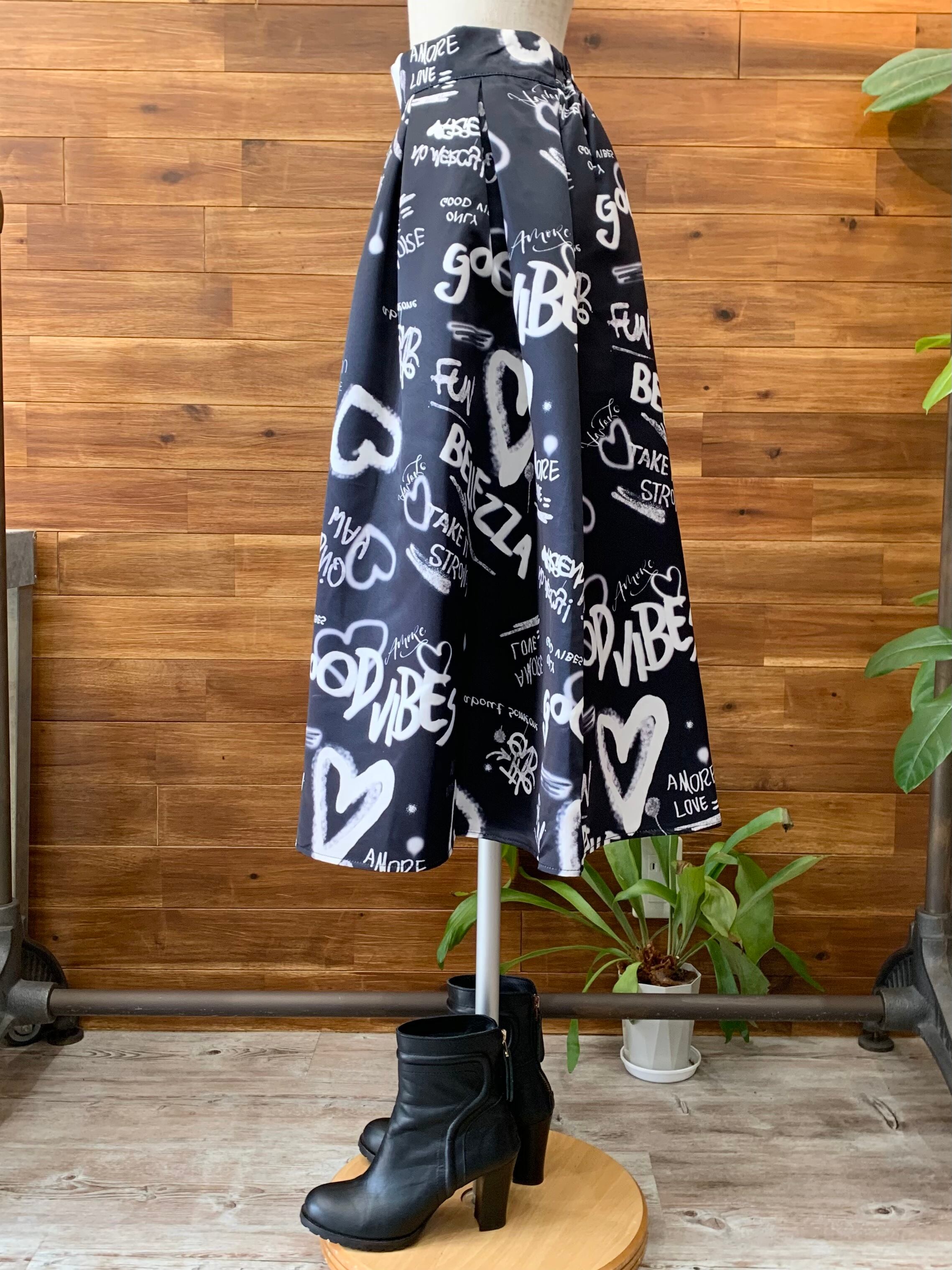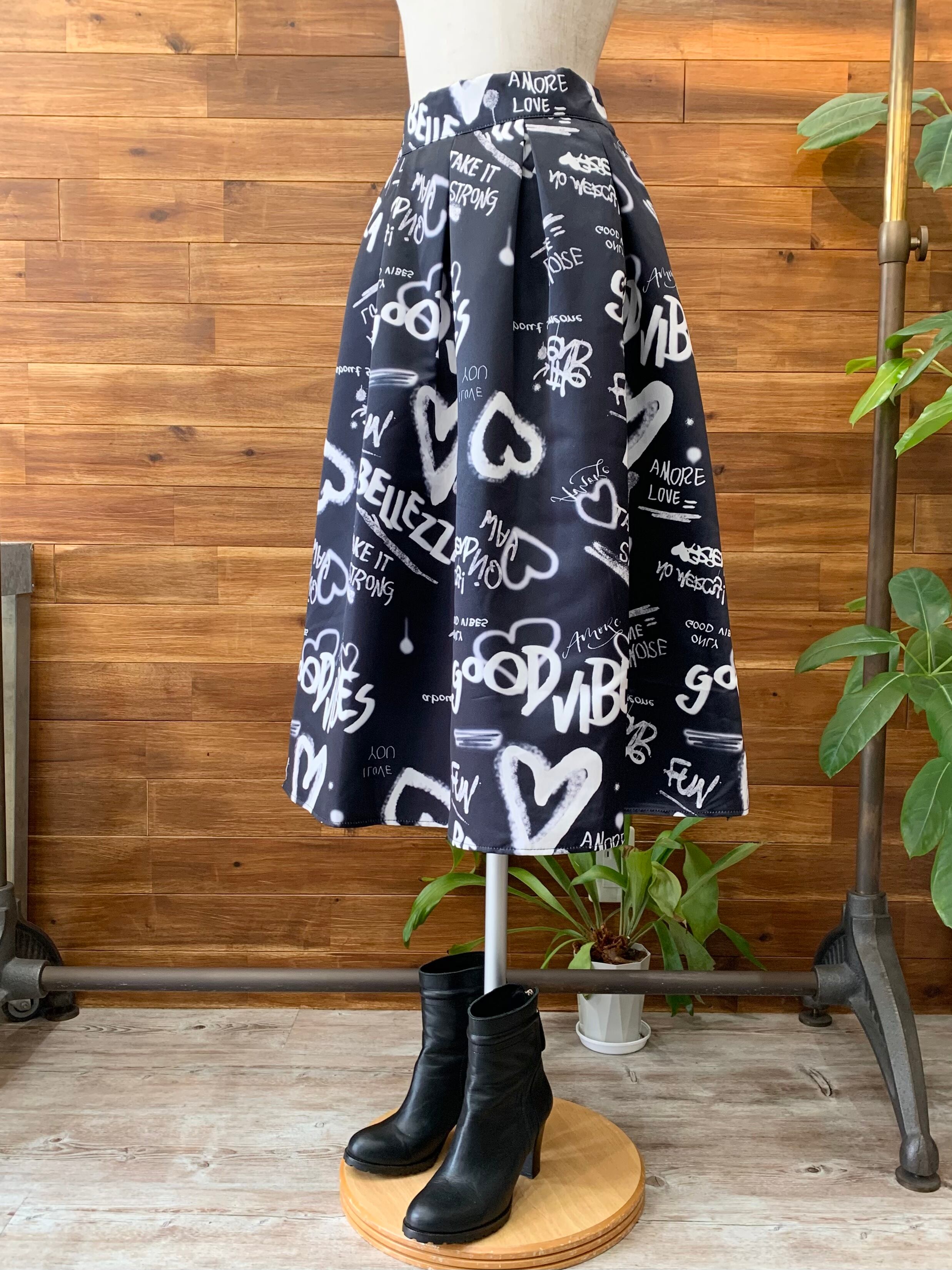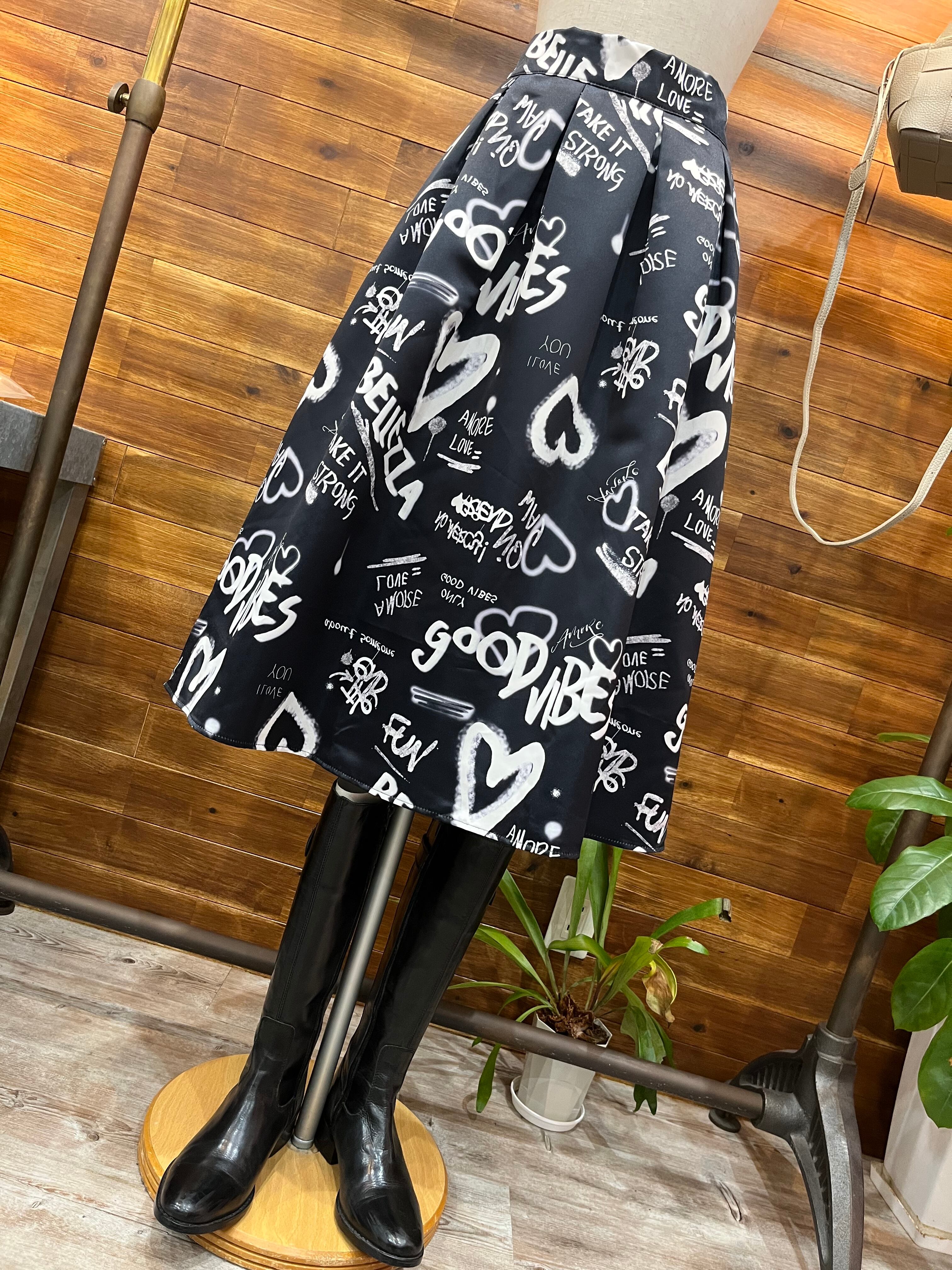 ぼかしロゴ柄が、とっても華やかなタックフレアースカート♡