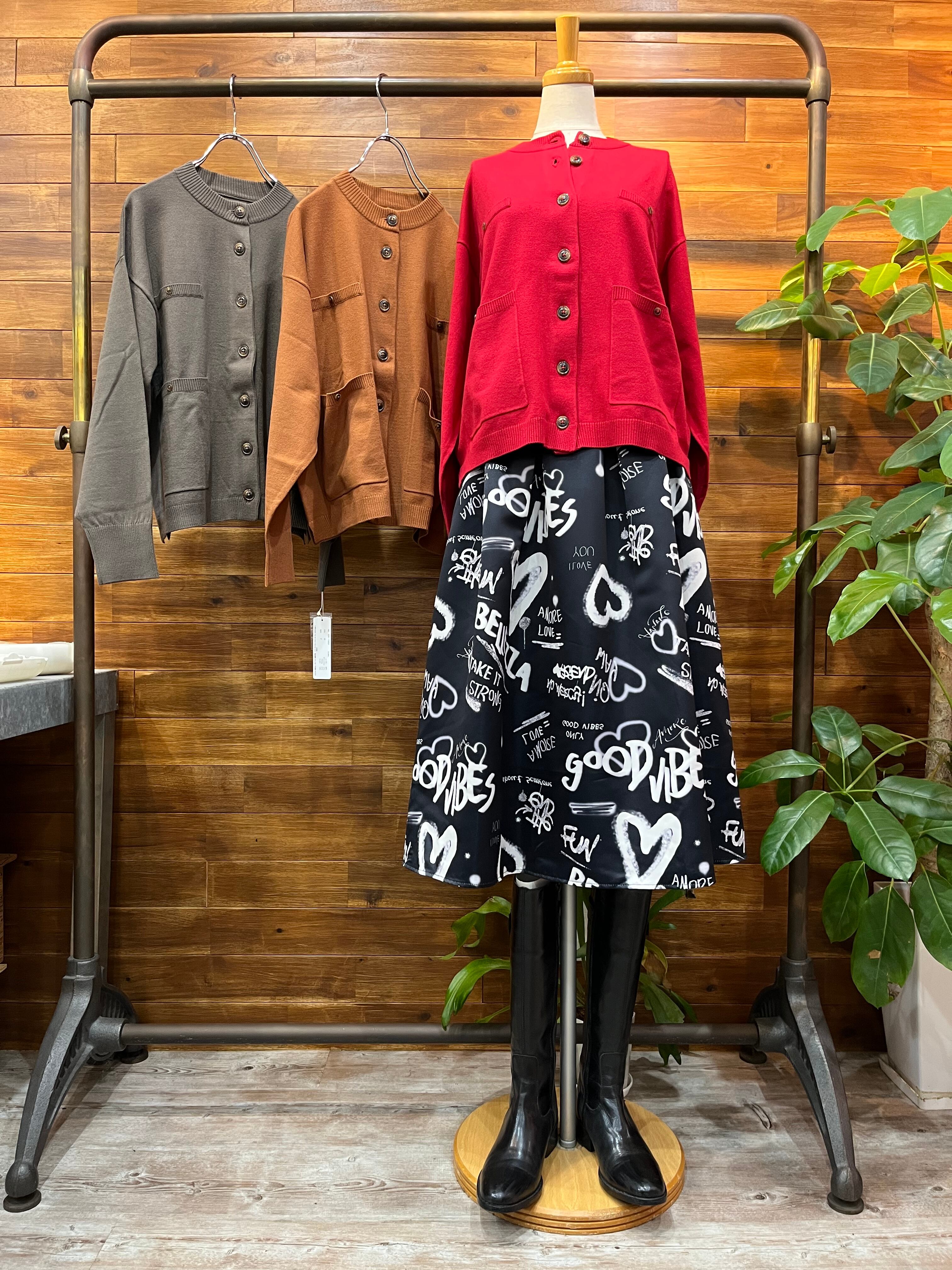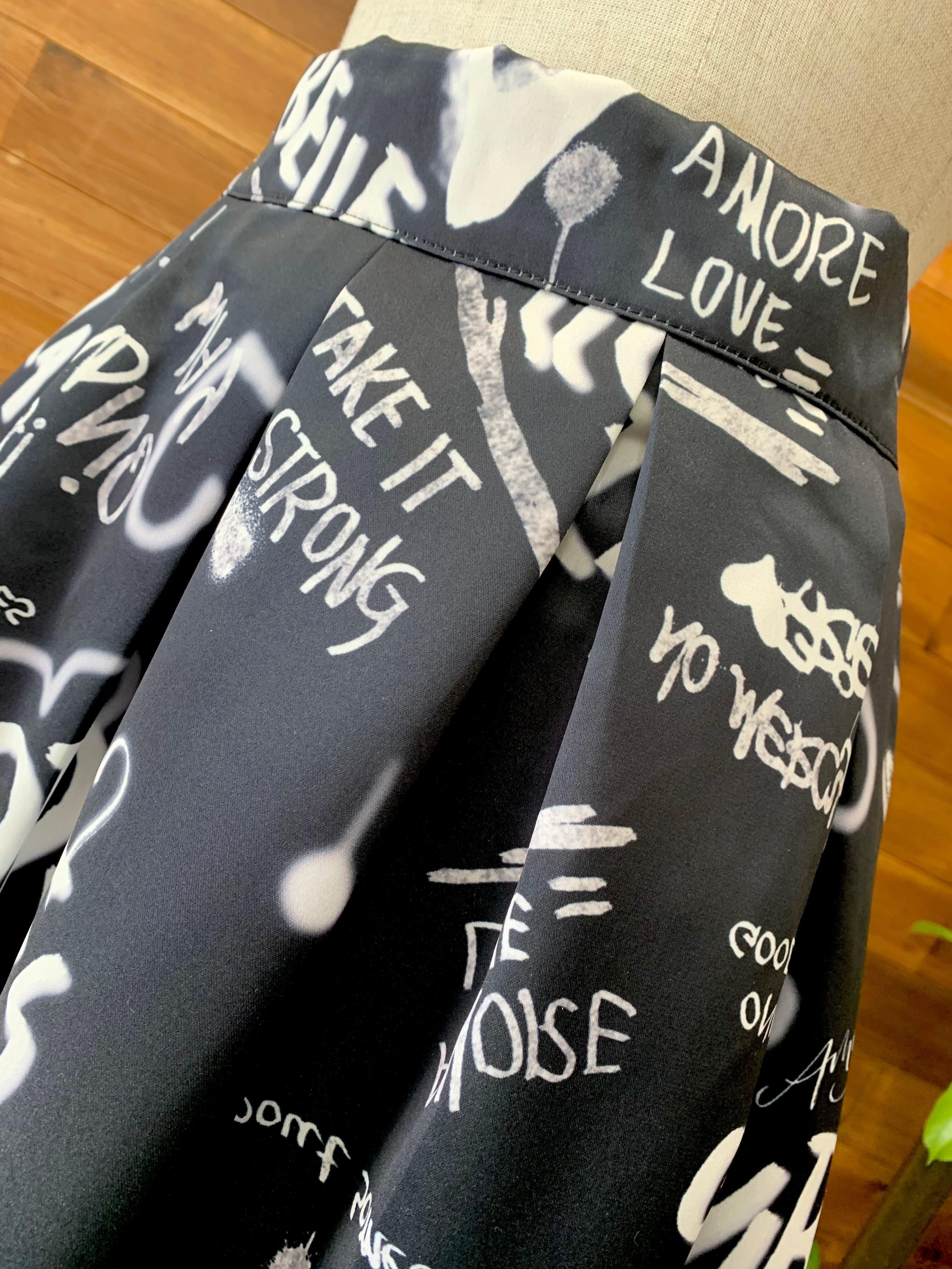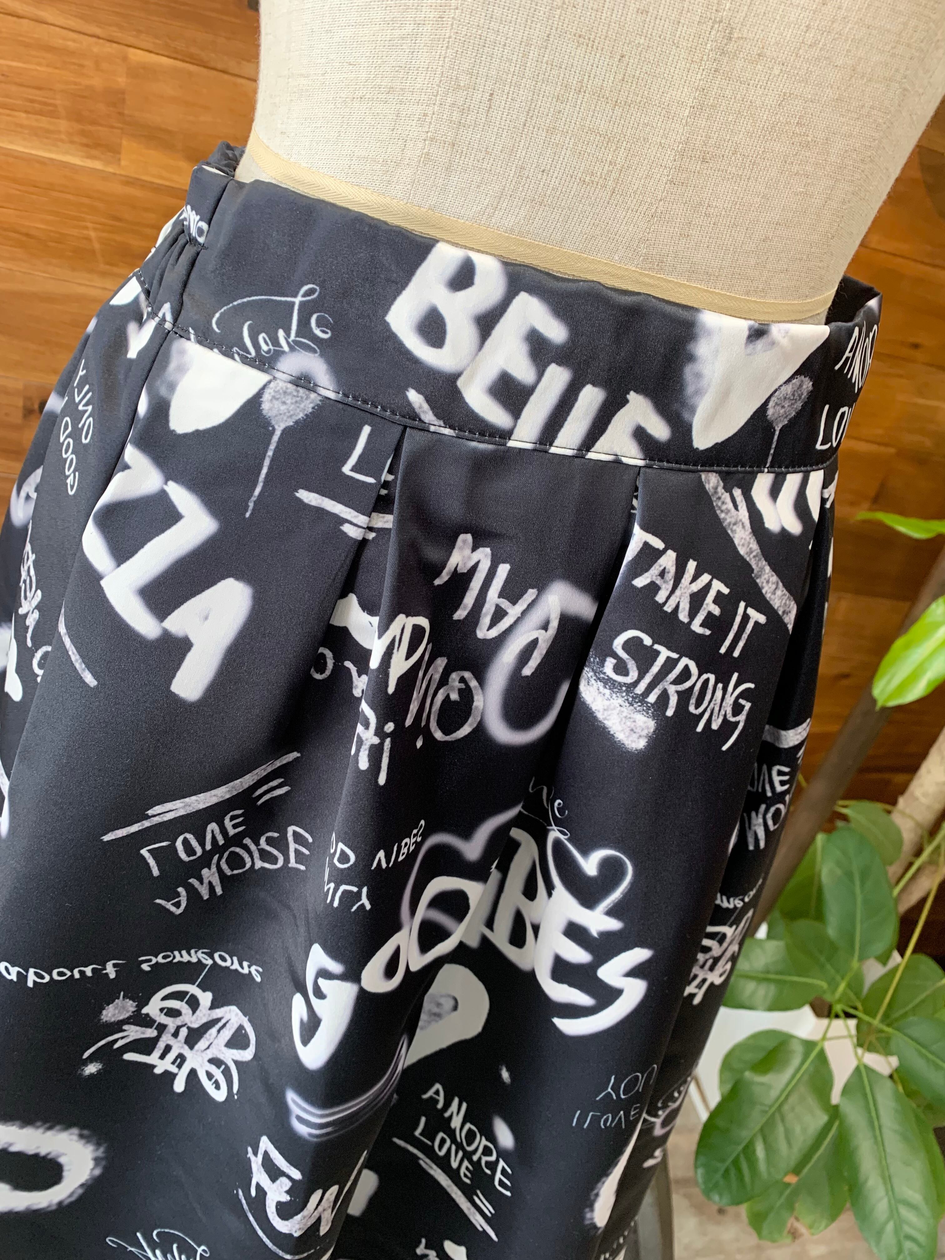 ぼかしロゴ柄が、とっても華やかなタックフレアースカート♡