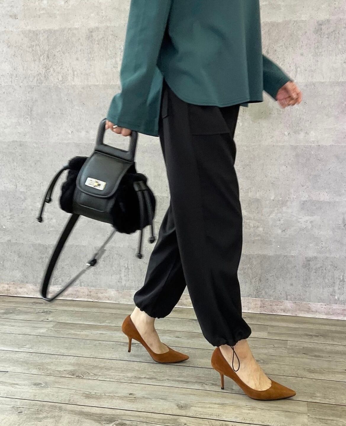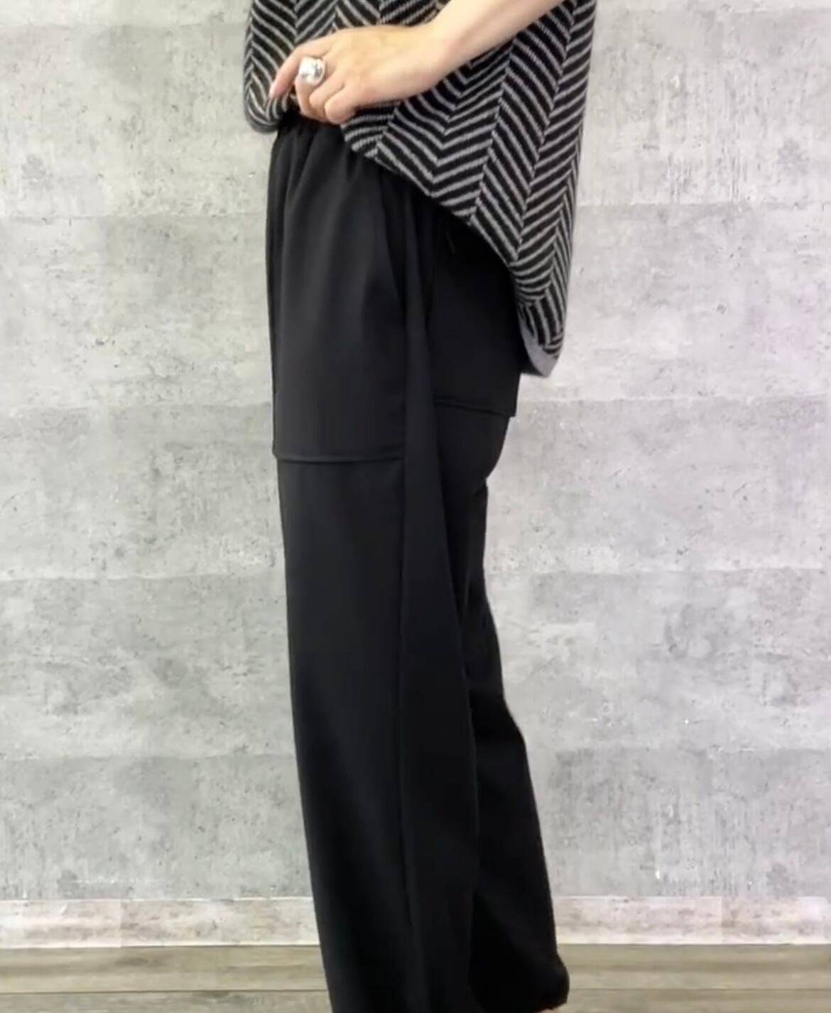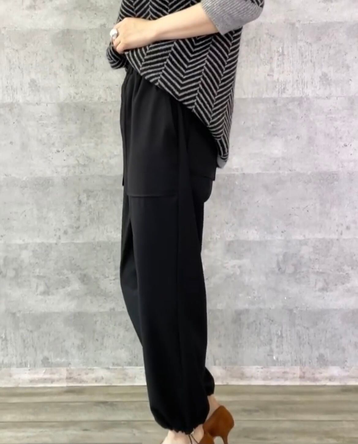 裾の紐を絞れば足元がスッキリし、アクティブで抜け感のあるこなれた印象になる大人のイージーパンツです♡