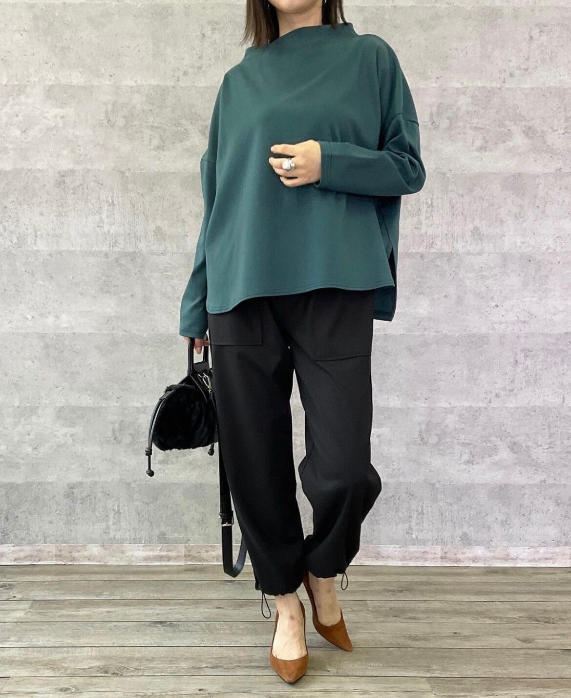 ストレッチ入りの布帛素材で、すっきりとしたシルエットが女性らしく、バランスの取れた大人カジュアルコーデが完成します◎