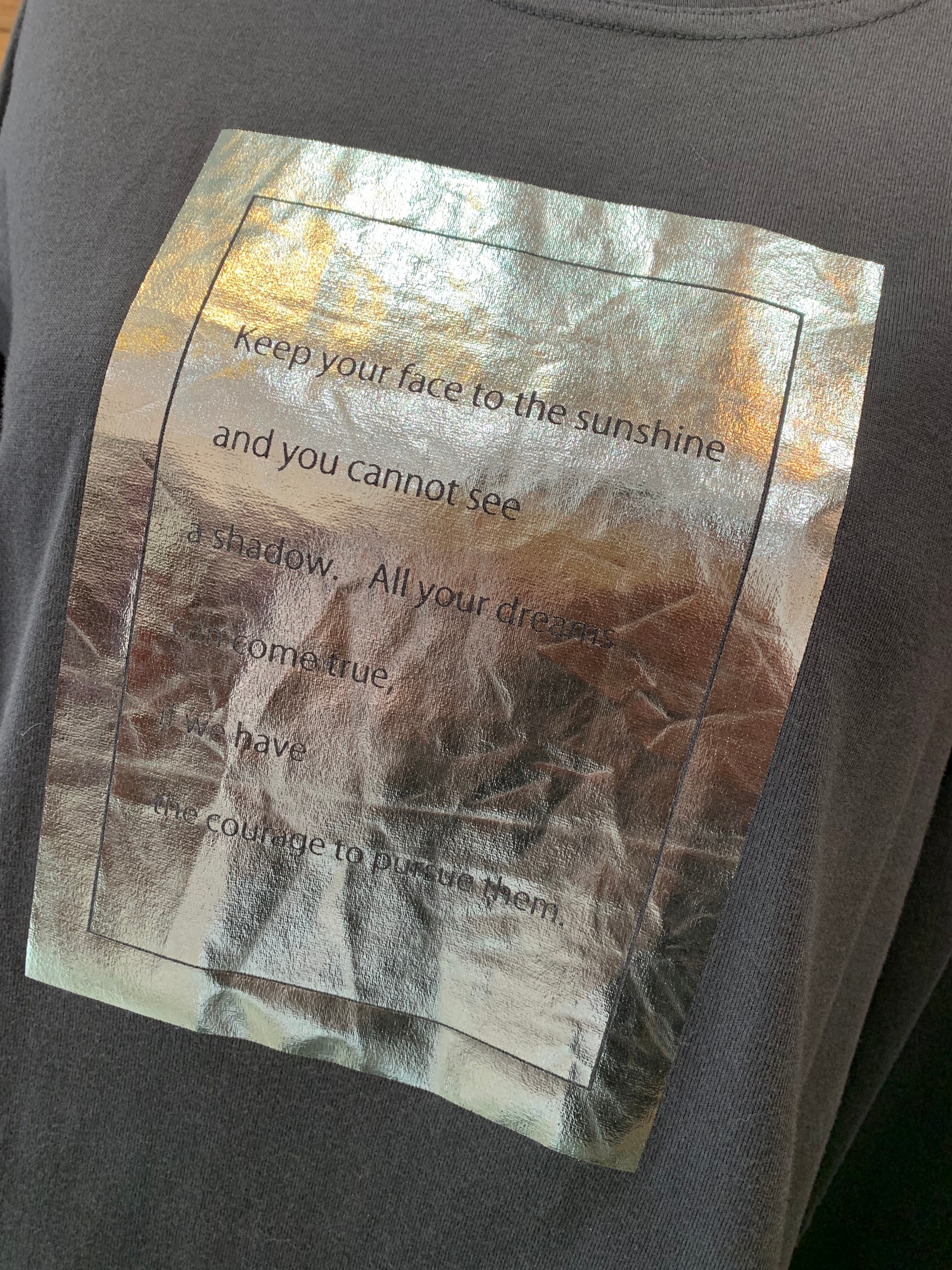 箔のロゴでカジュアルになり過ぎず、こなれ感たっぷり。