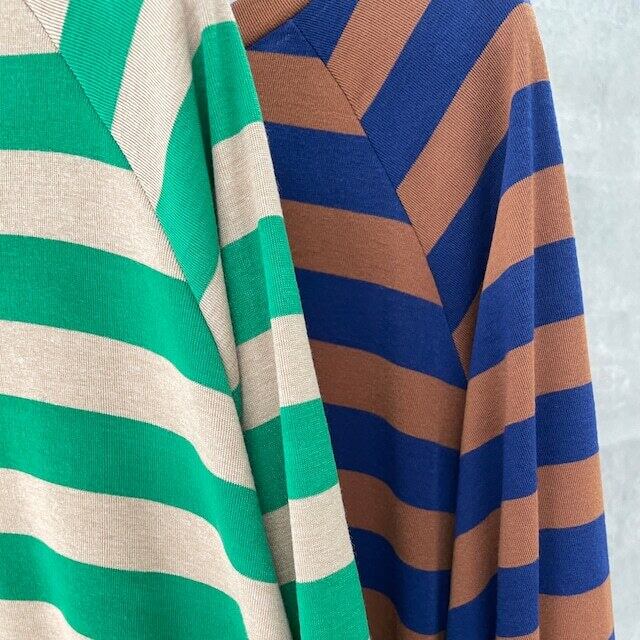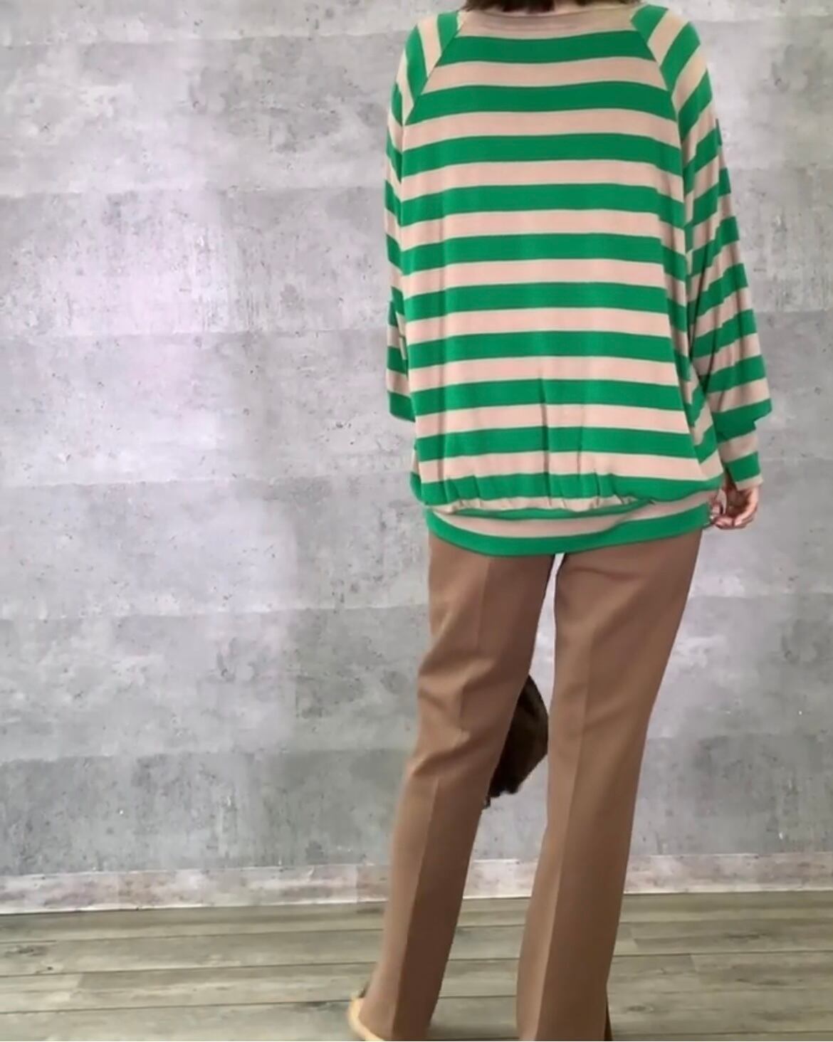 ゆるっとしたシルエットが華奢見えし、優しい肌触りがやみつきになるボーダートップス♪