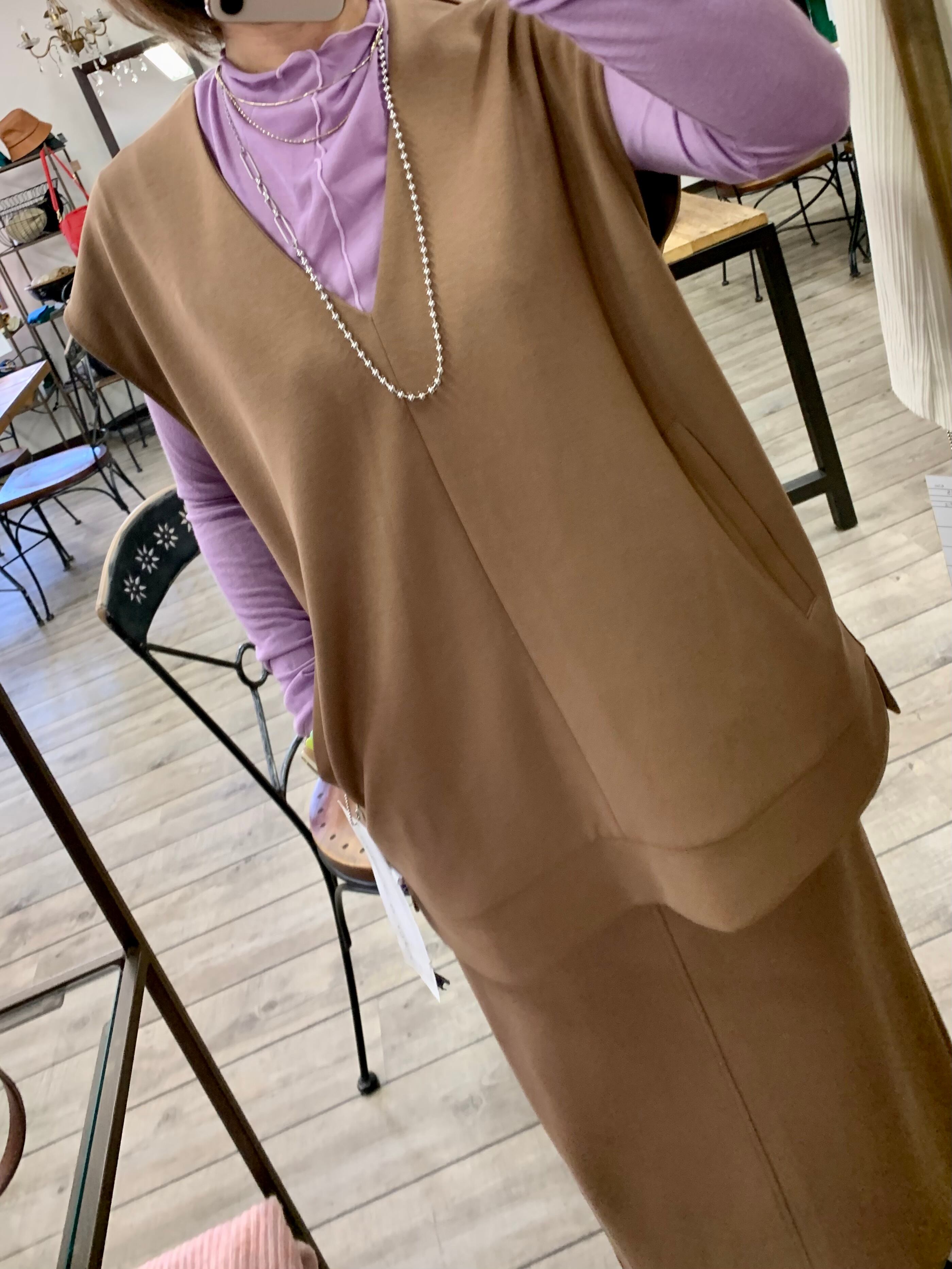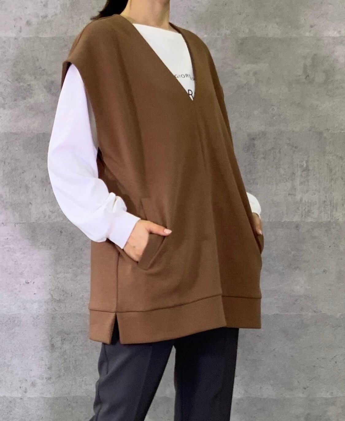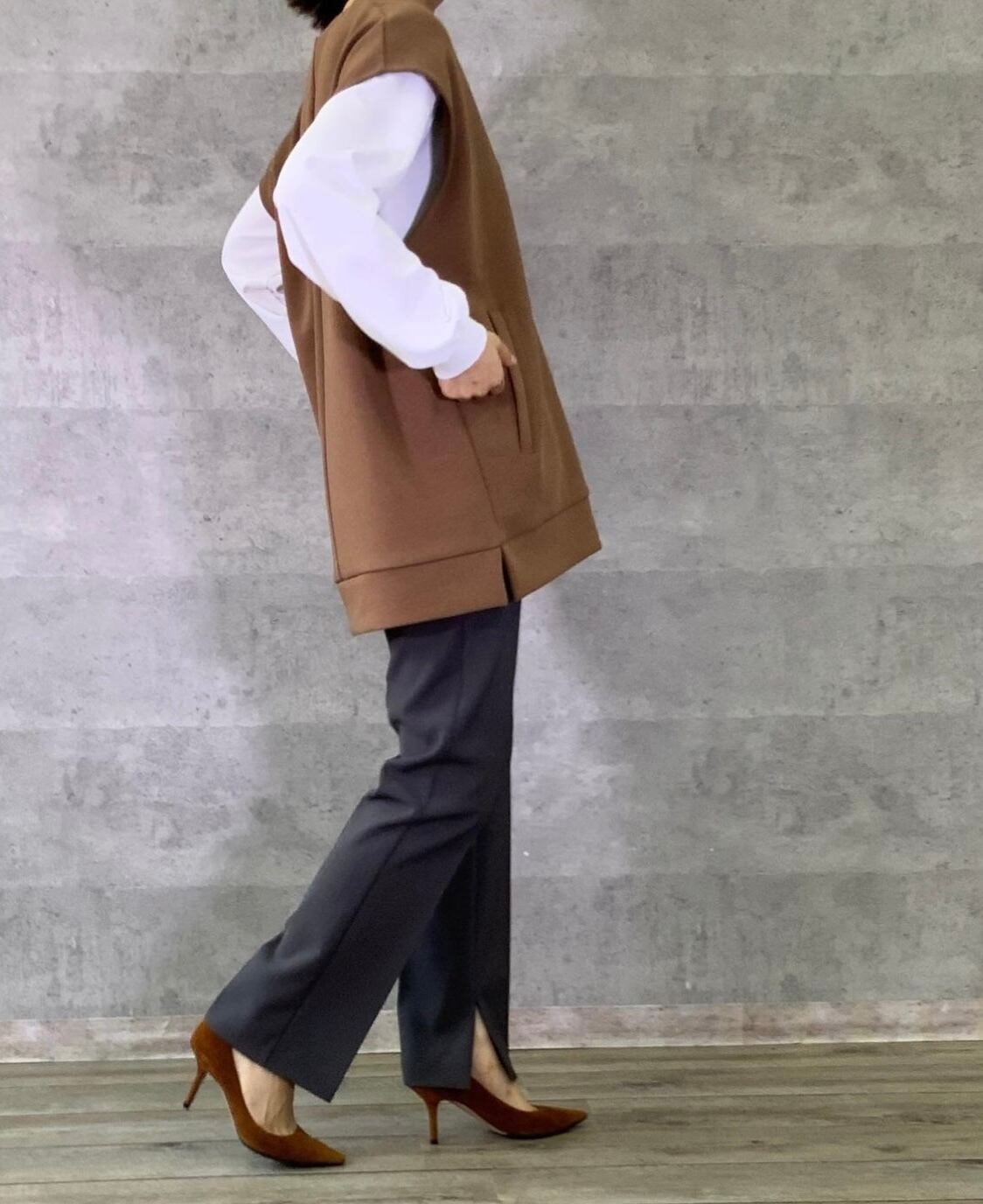ブラウスやロンTにさっとレイヤードするだけで、旬のスタイリングが完成するかぶりのジレ♪