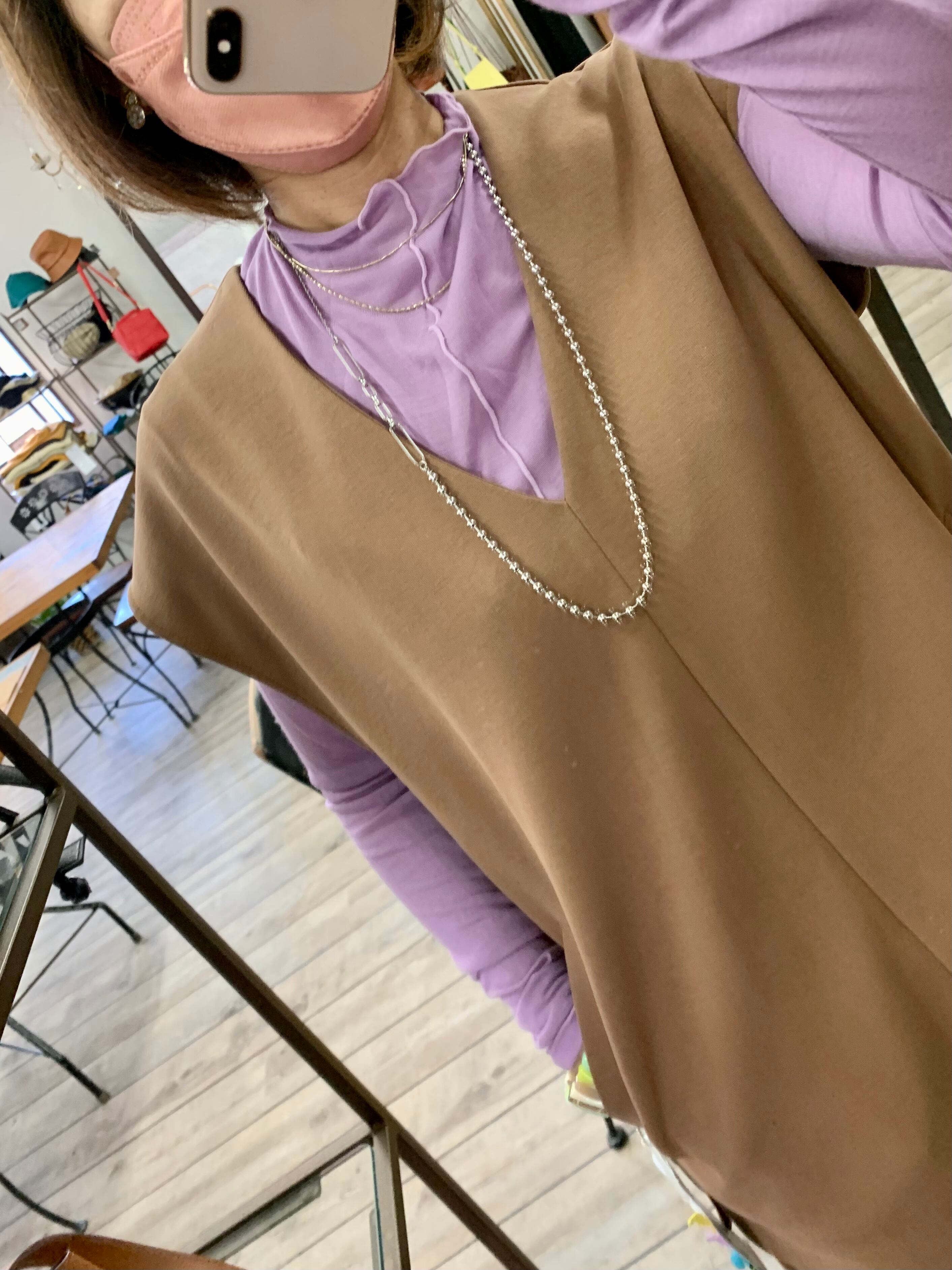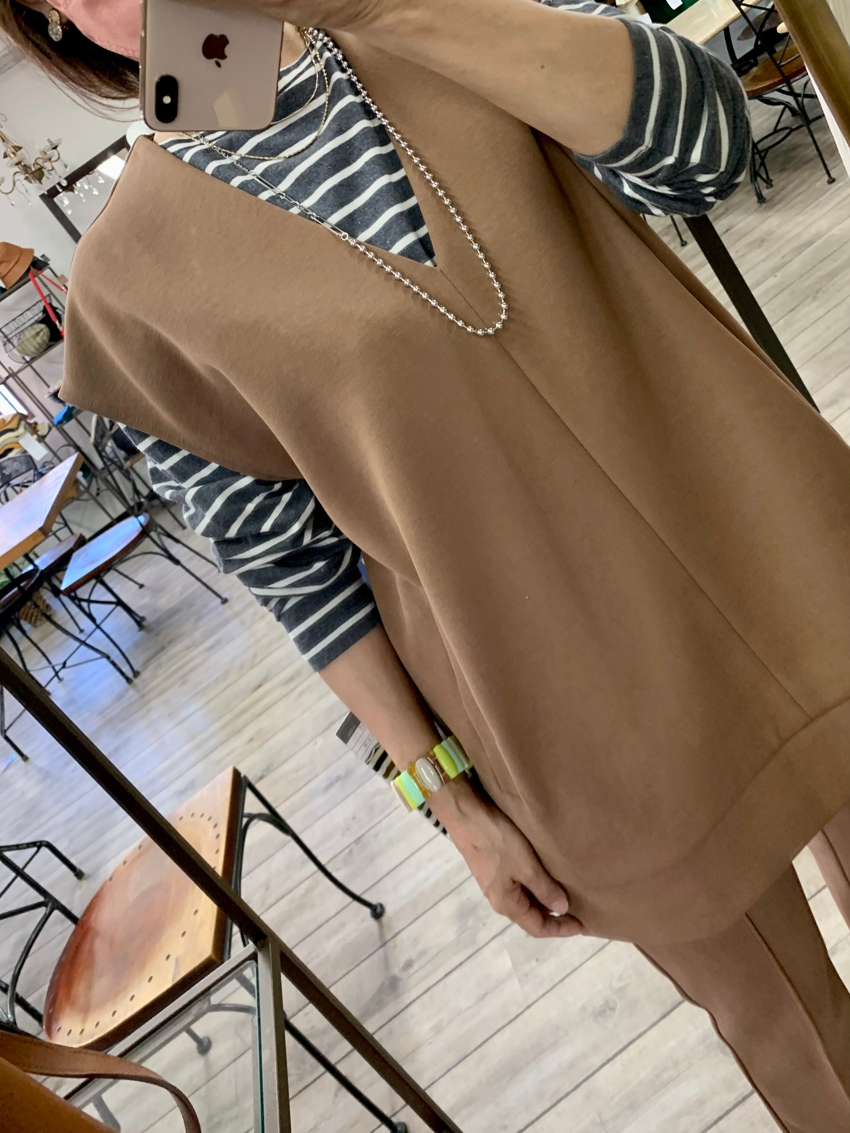 深Vネックとサイドスリット入りで、コーディネートが重たくならず、スタイリングを楽しんで頂けます◎