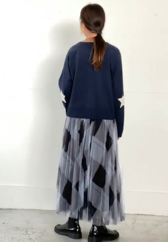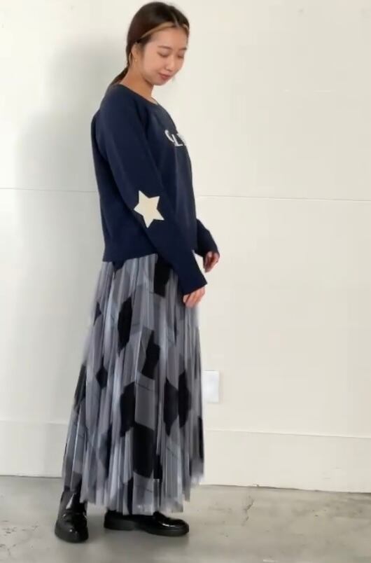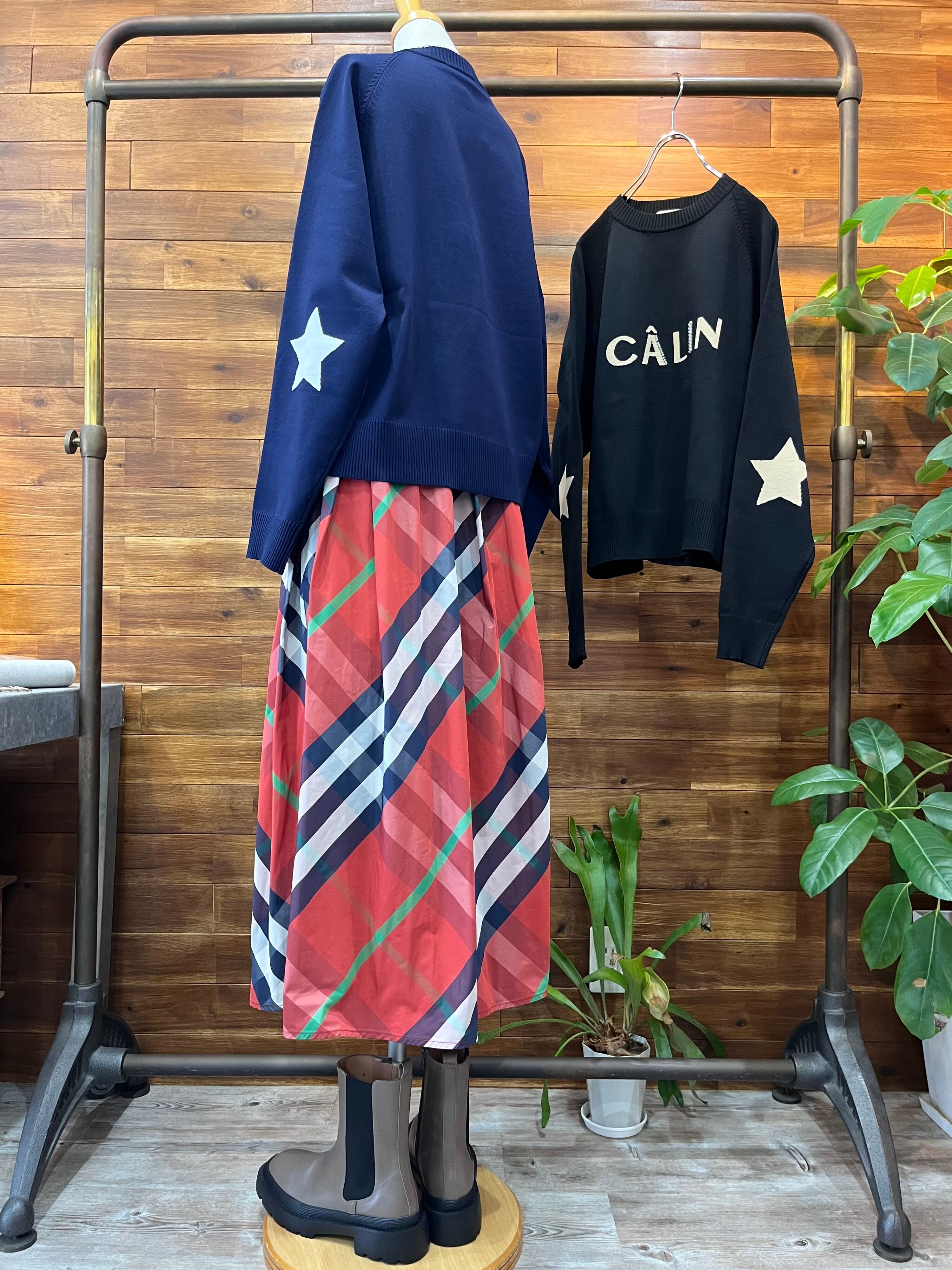 身頃と肘にジャカードのロゴと星をあしらったニット♫