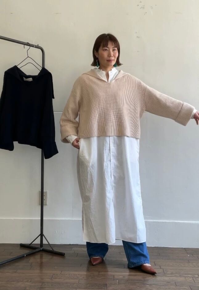 セーラーカラーのニットはワンアイテムで抜け感のあるスタイルになります♡