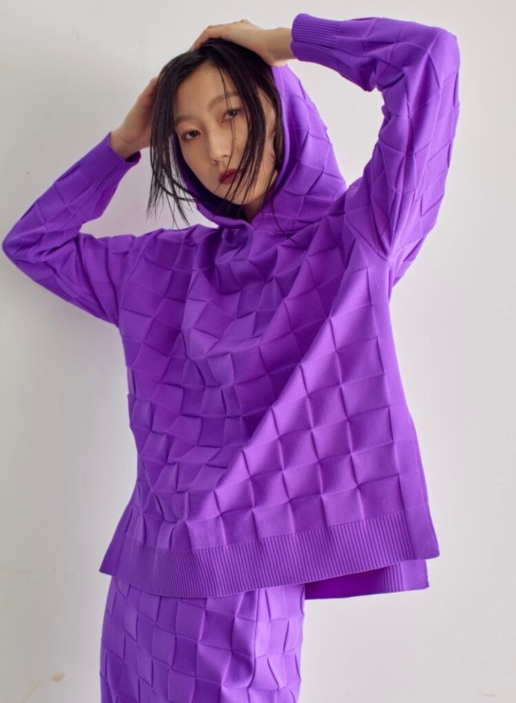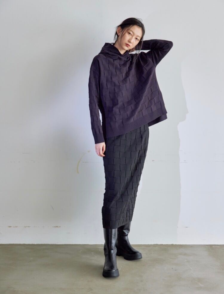 ブロックチェックの柄が、モードな雰囲気のニットパーカー♡