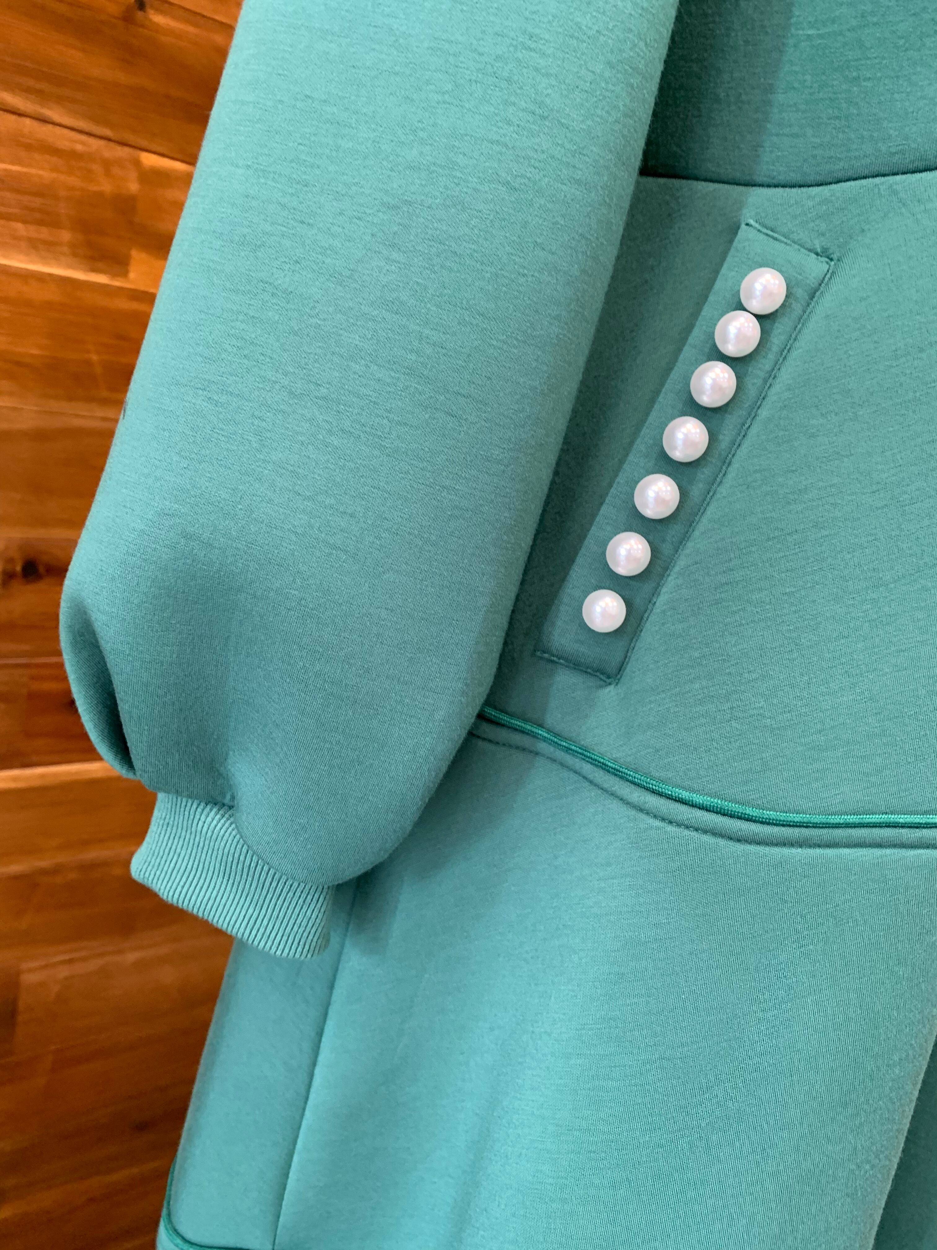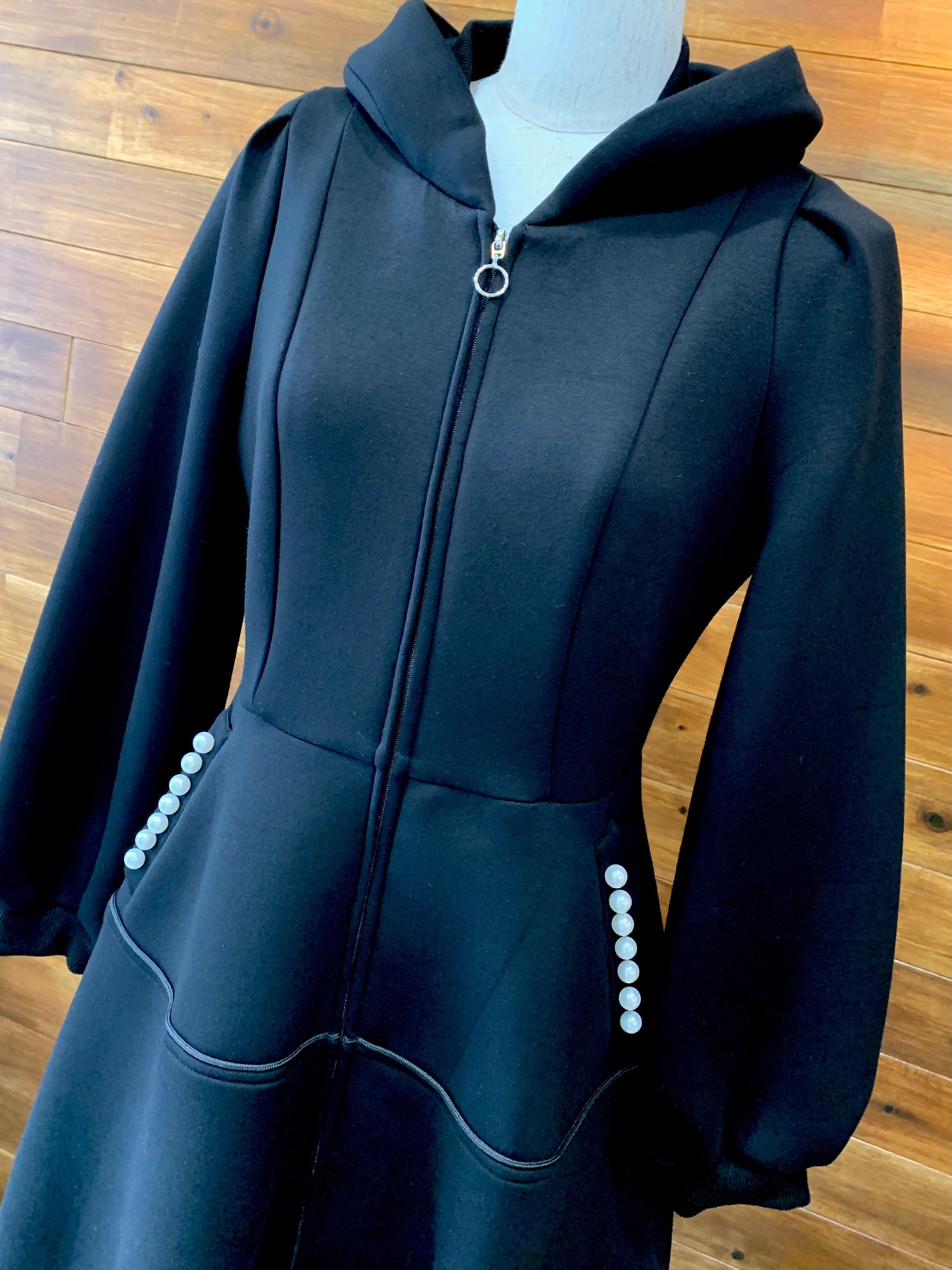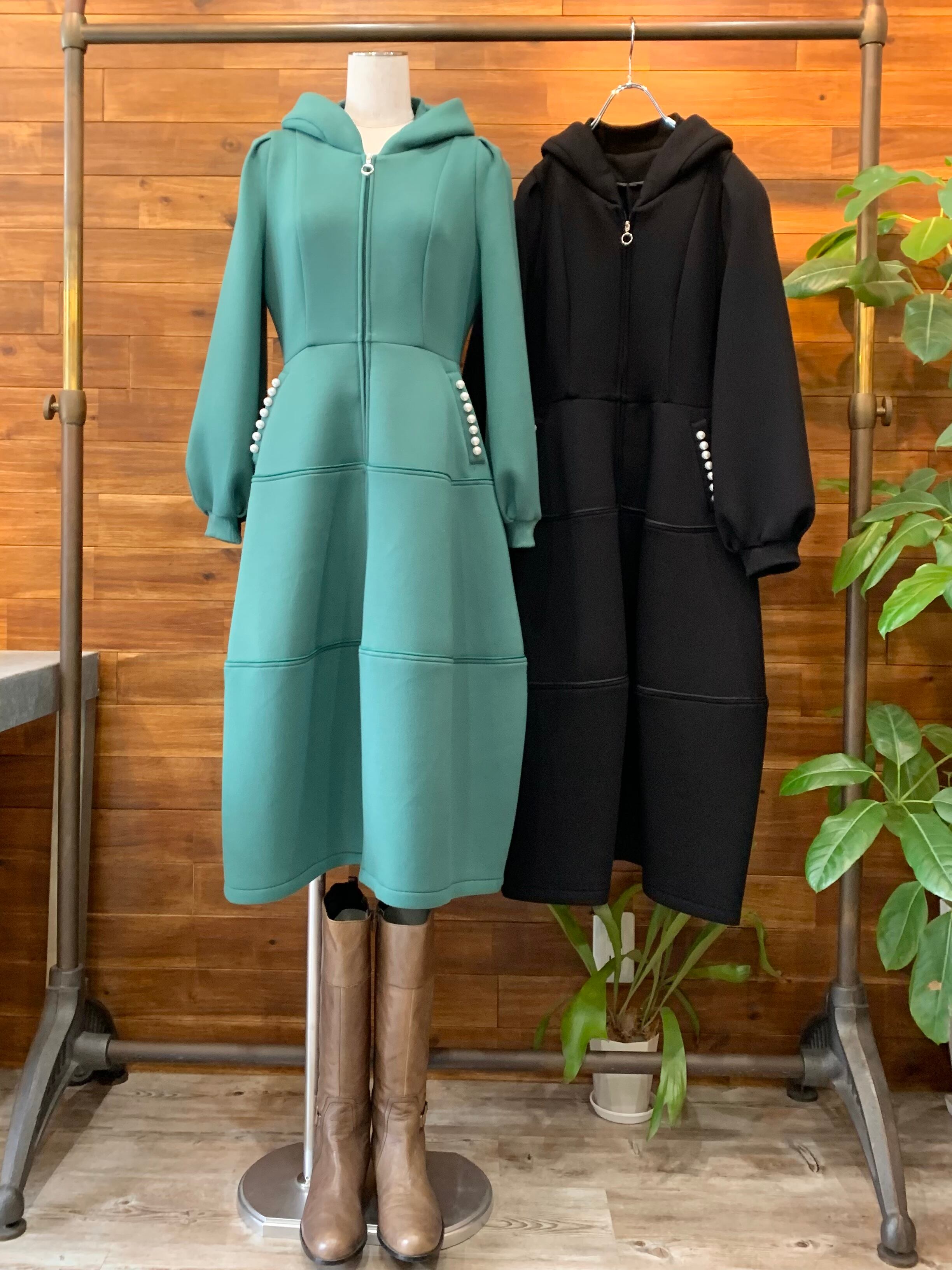 両サイドポケットのパール飾りがキャッチーなボンディングのコート♡