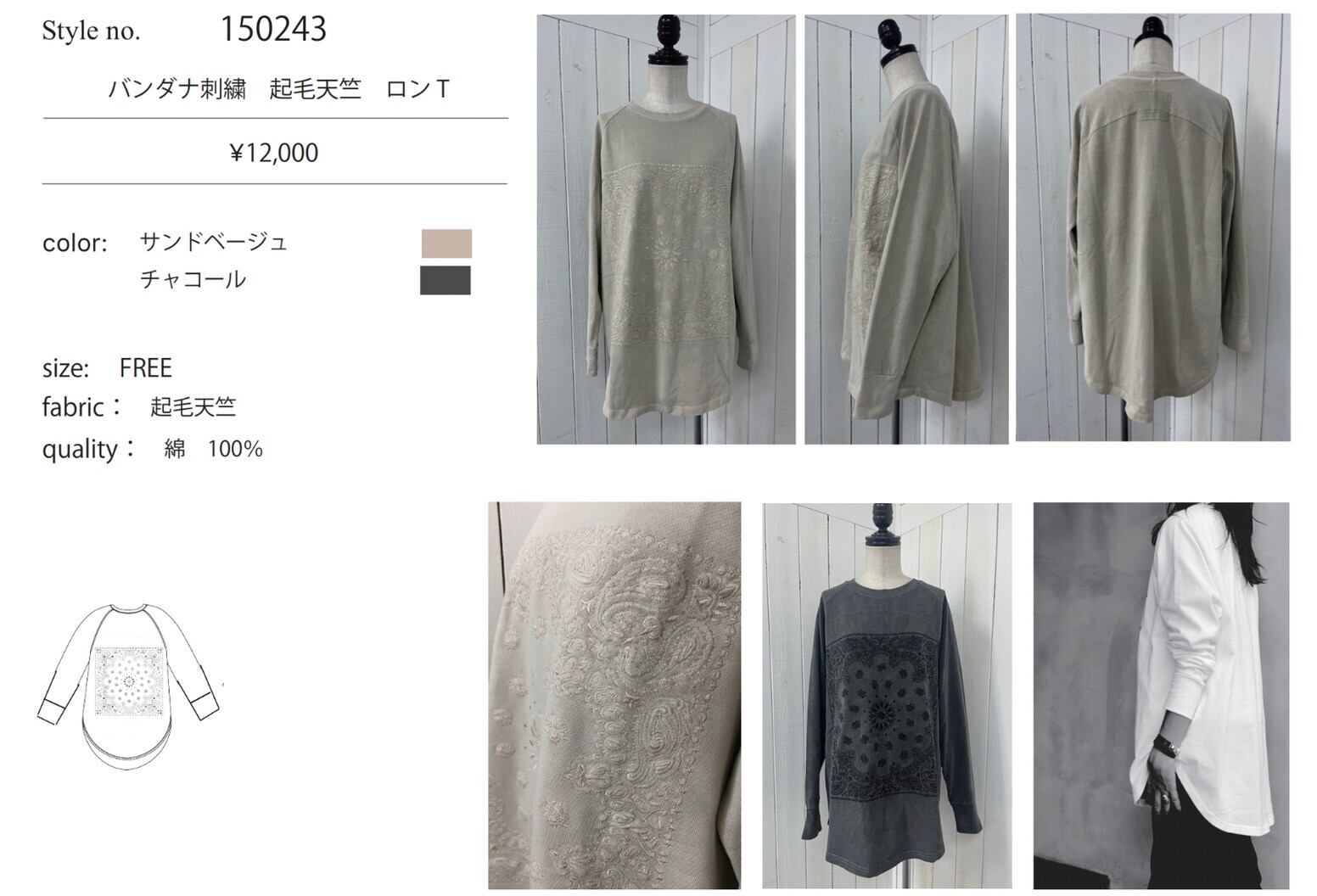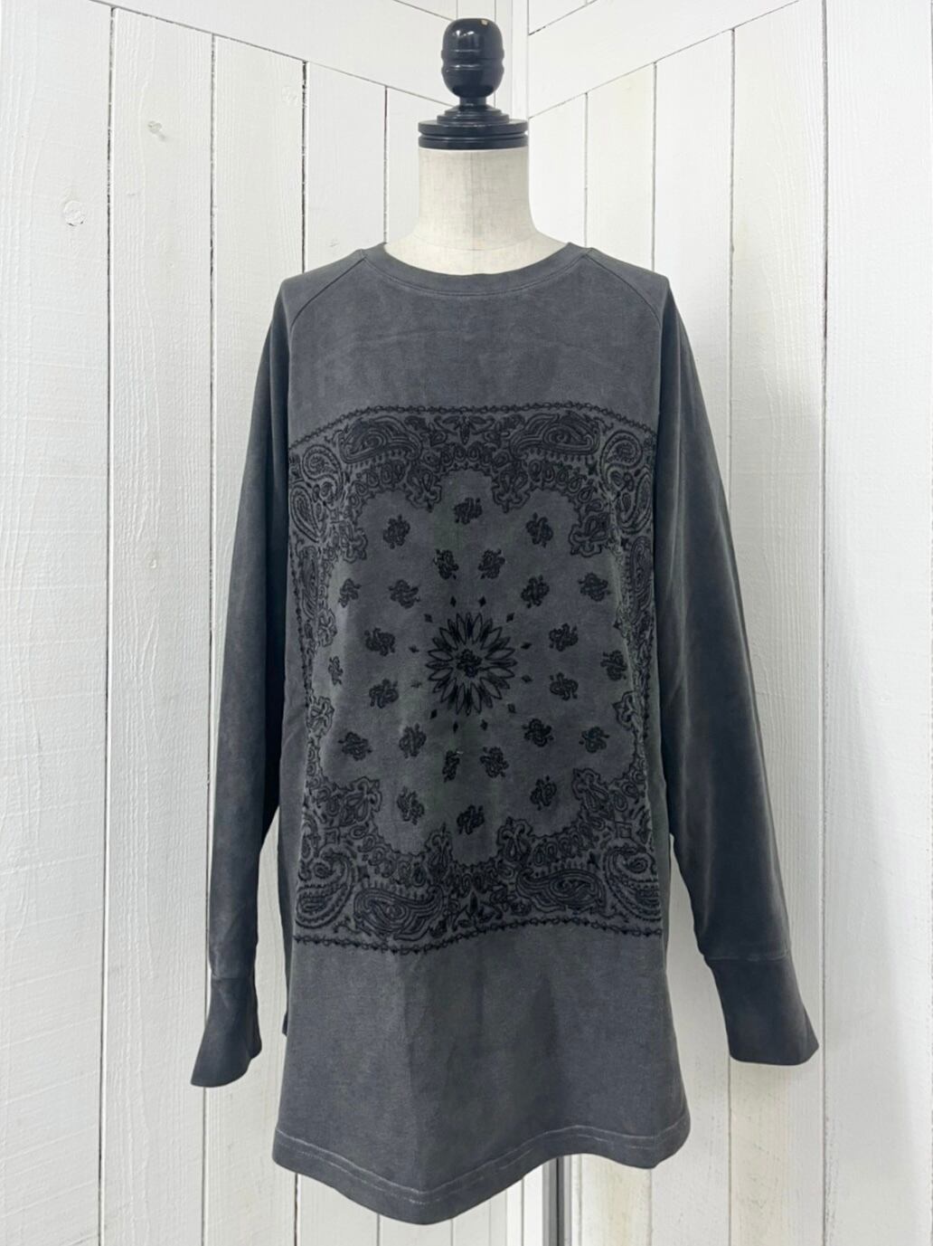 バンダナ刺繍 起毛天竺 ロンT