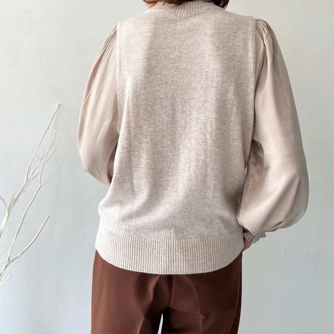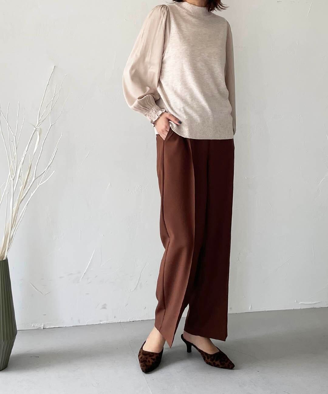 異素材パフ袖アンゴラ混ニットプルオーバー