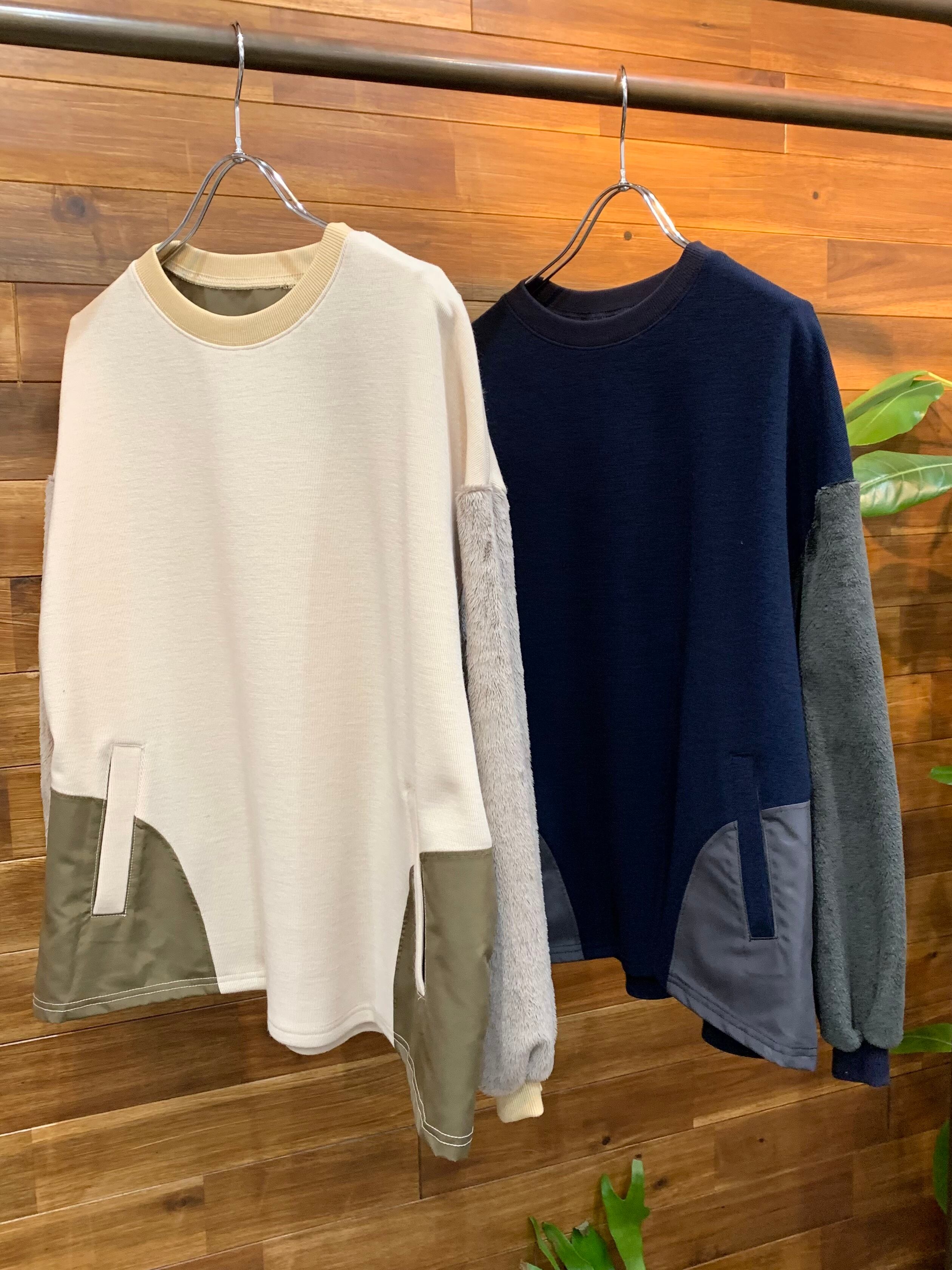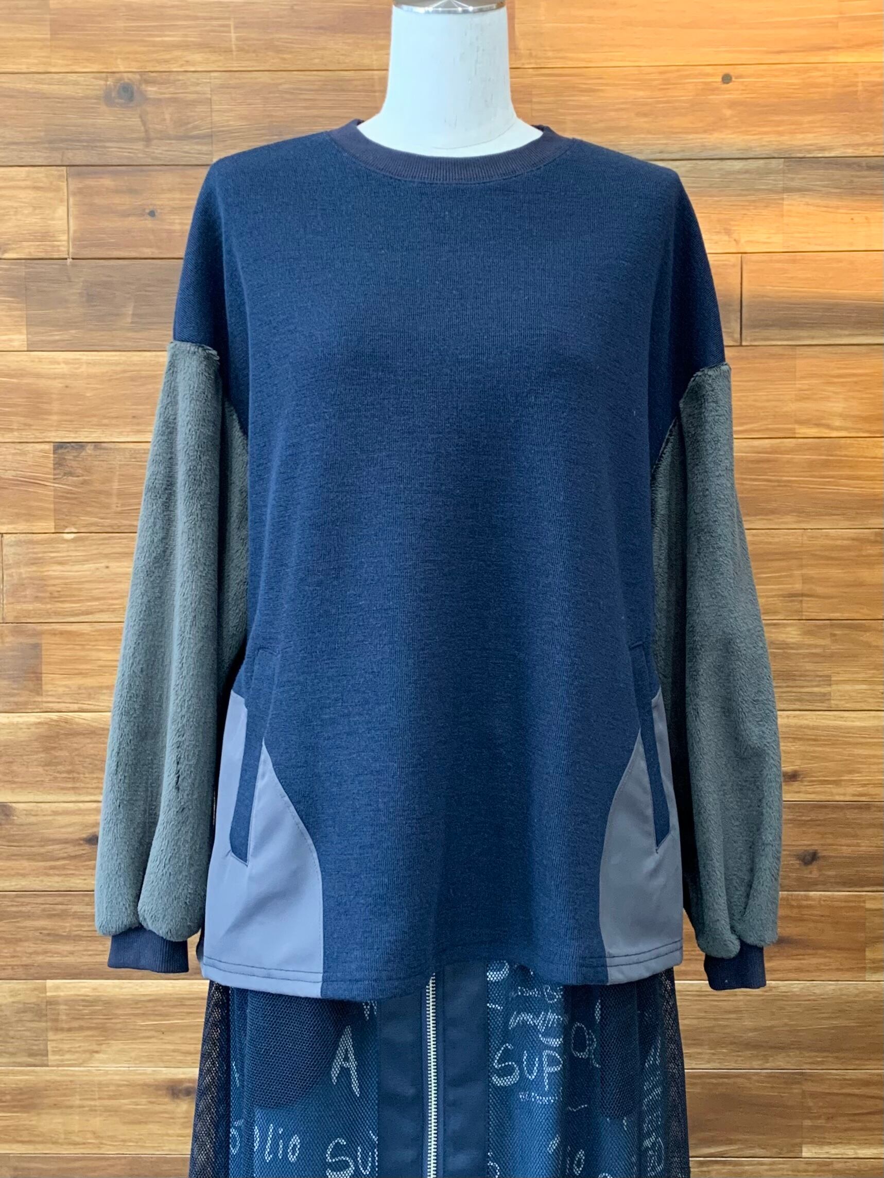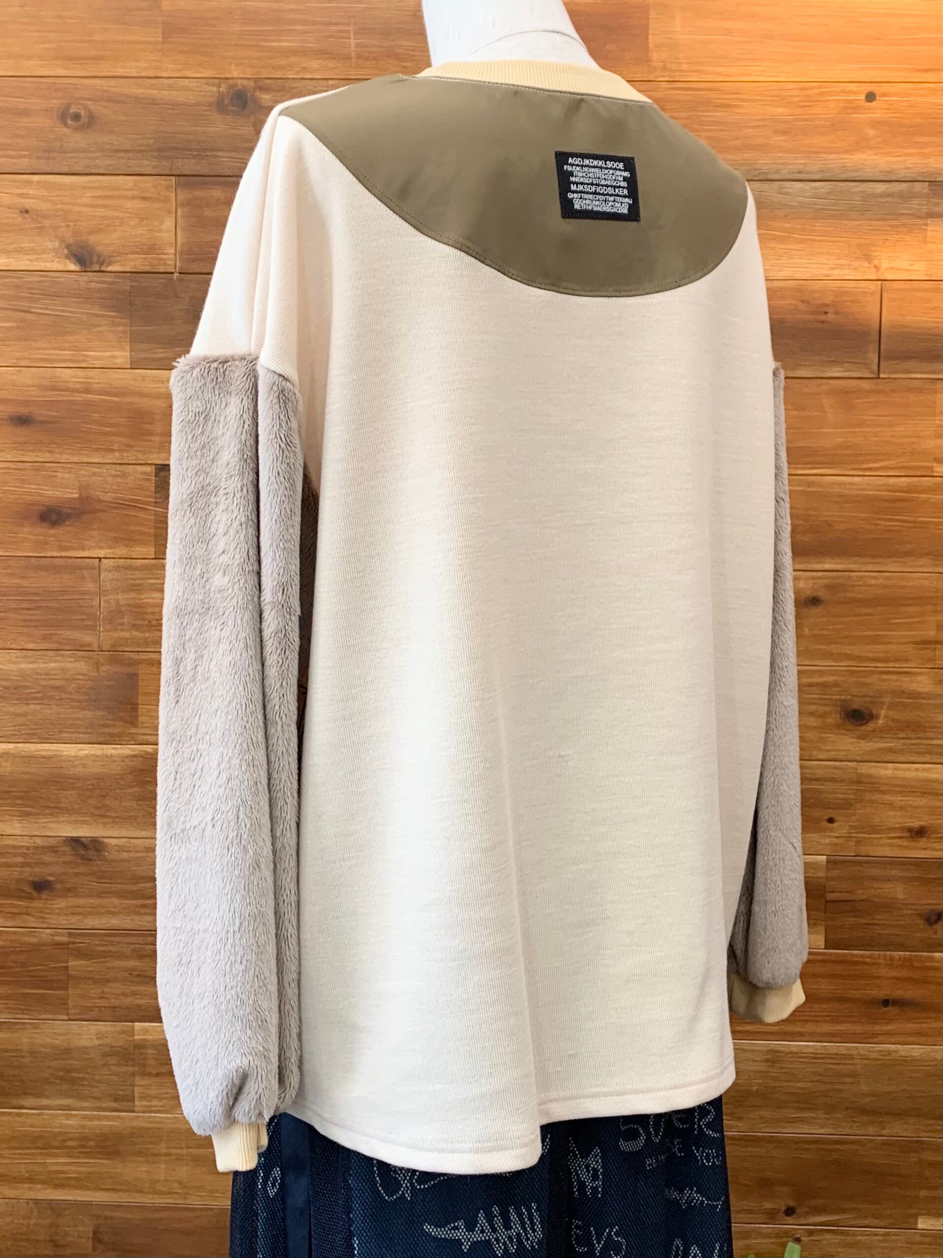 ドロップした肩からしっとりとしたファー切り替えのドッキングプルオーバー♪