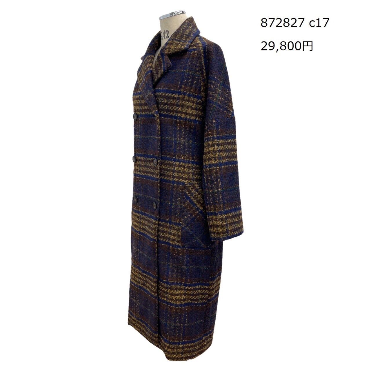 何とも言えない配色がオシャレなチェックのチェスターコートです♪