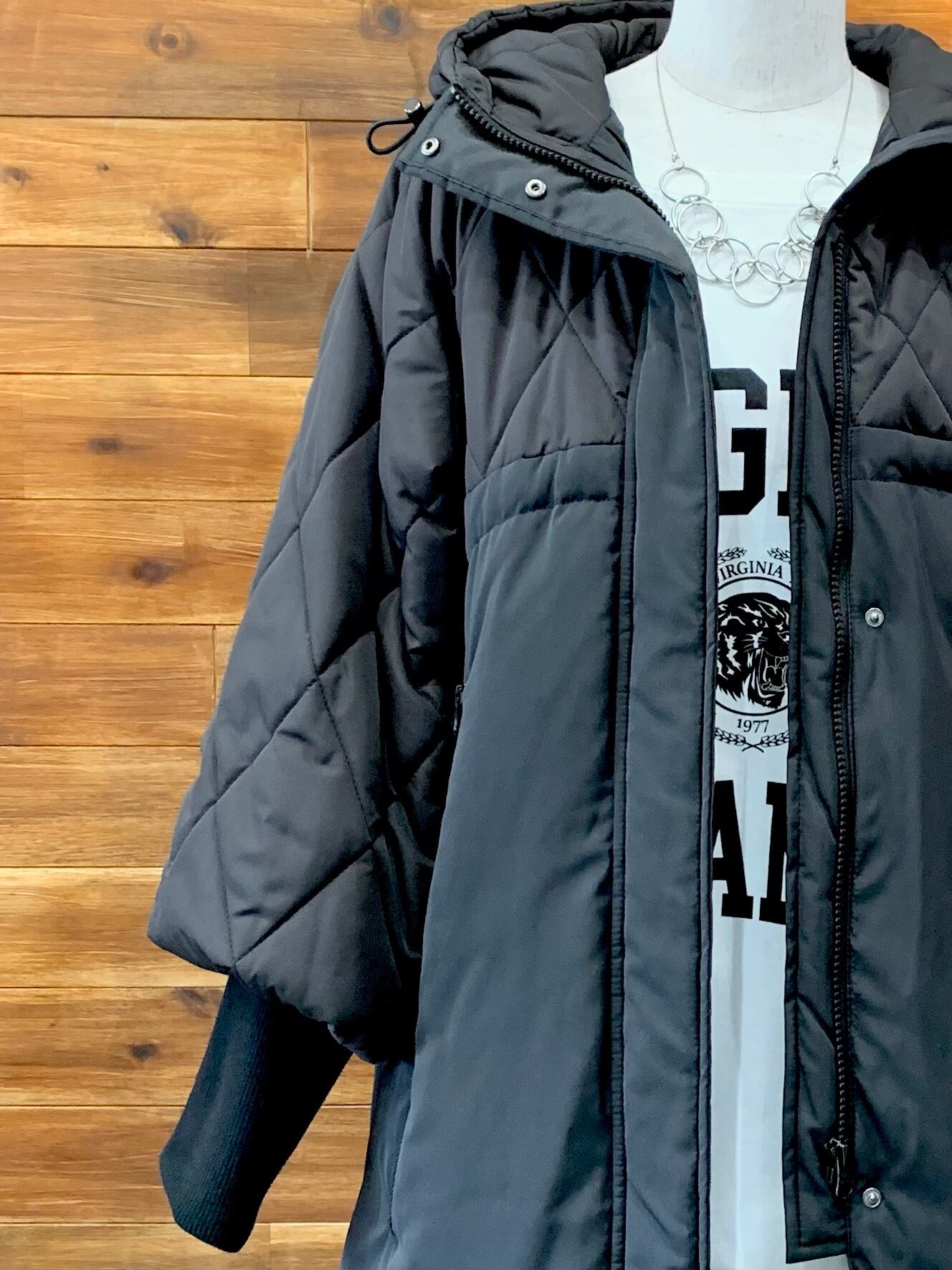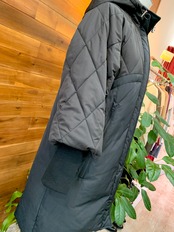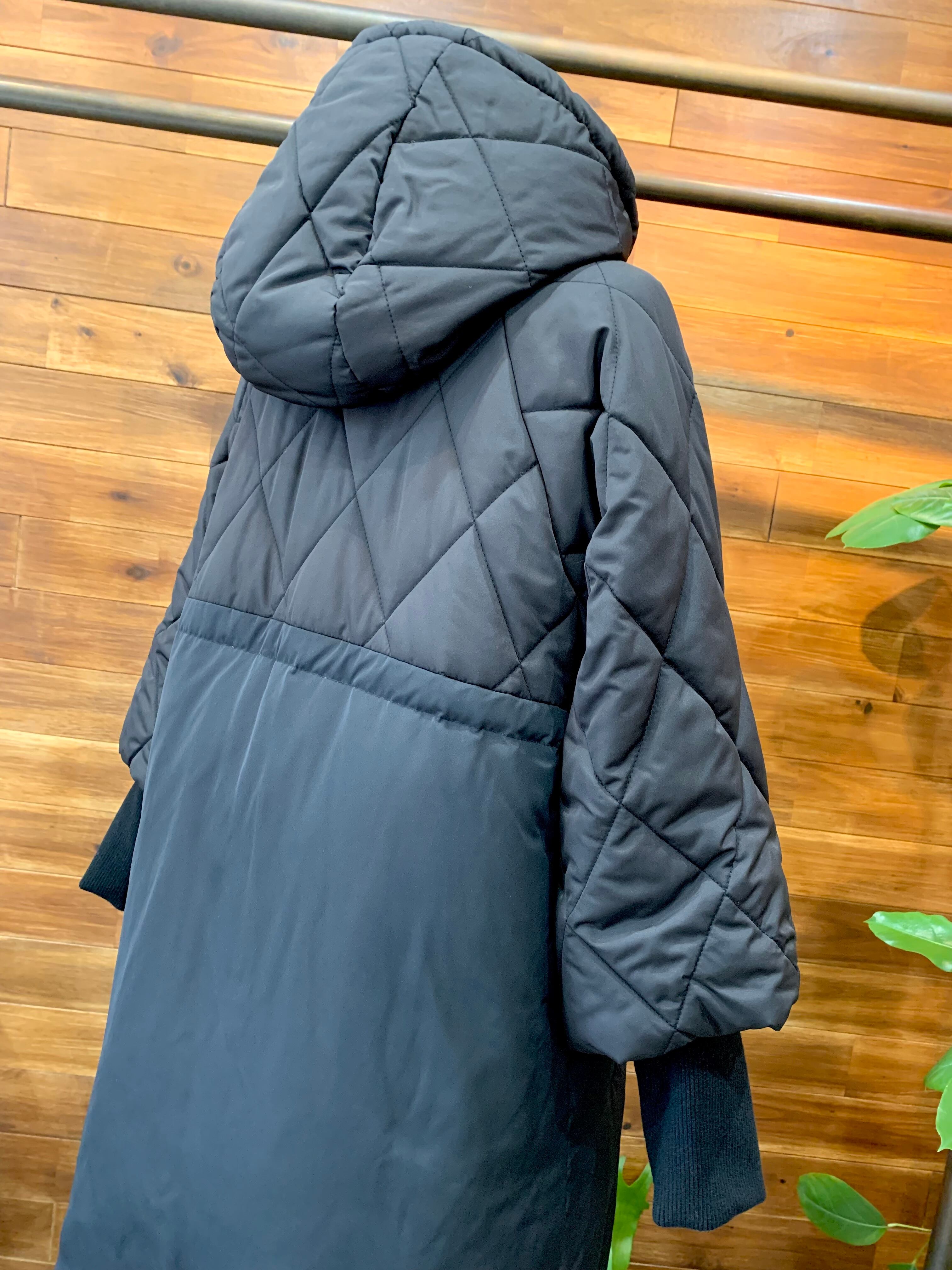 上身頃、袖、フードは中綿キルティング、下身頃はダウン80% フェザー20% 詰め物の素材を切り替えています♫