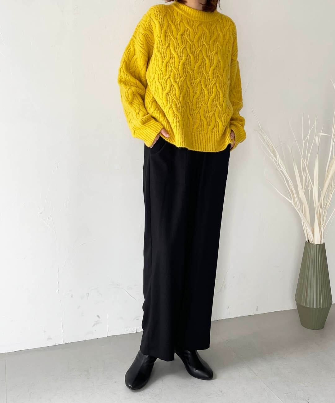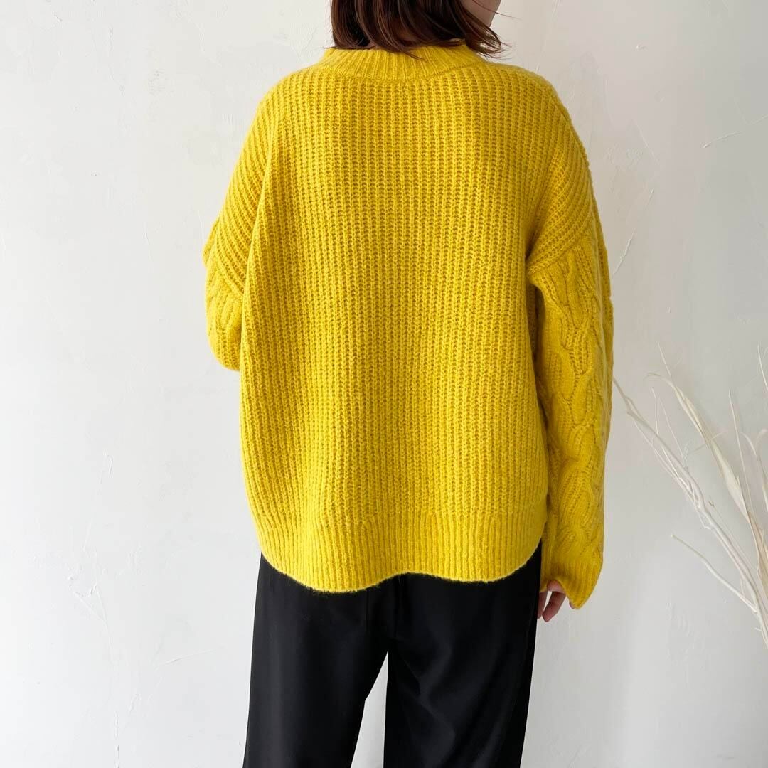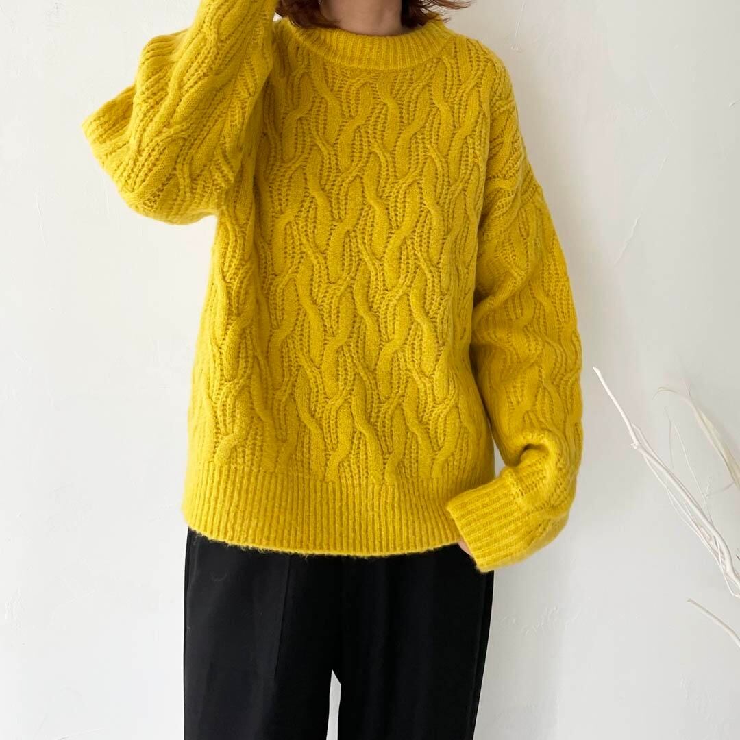 ストレッチヤーンケーブルニットプルオーバー
