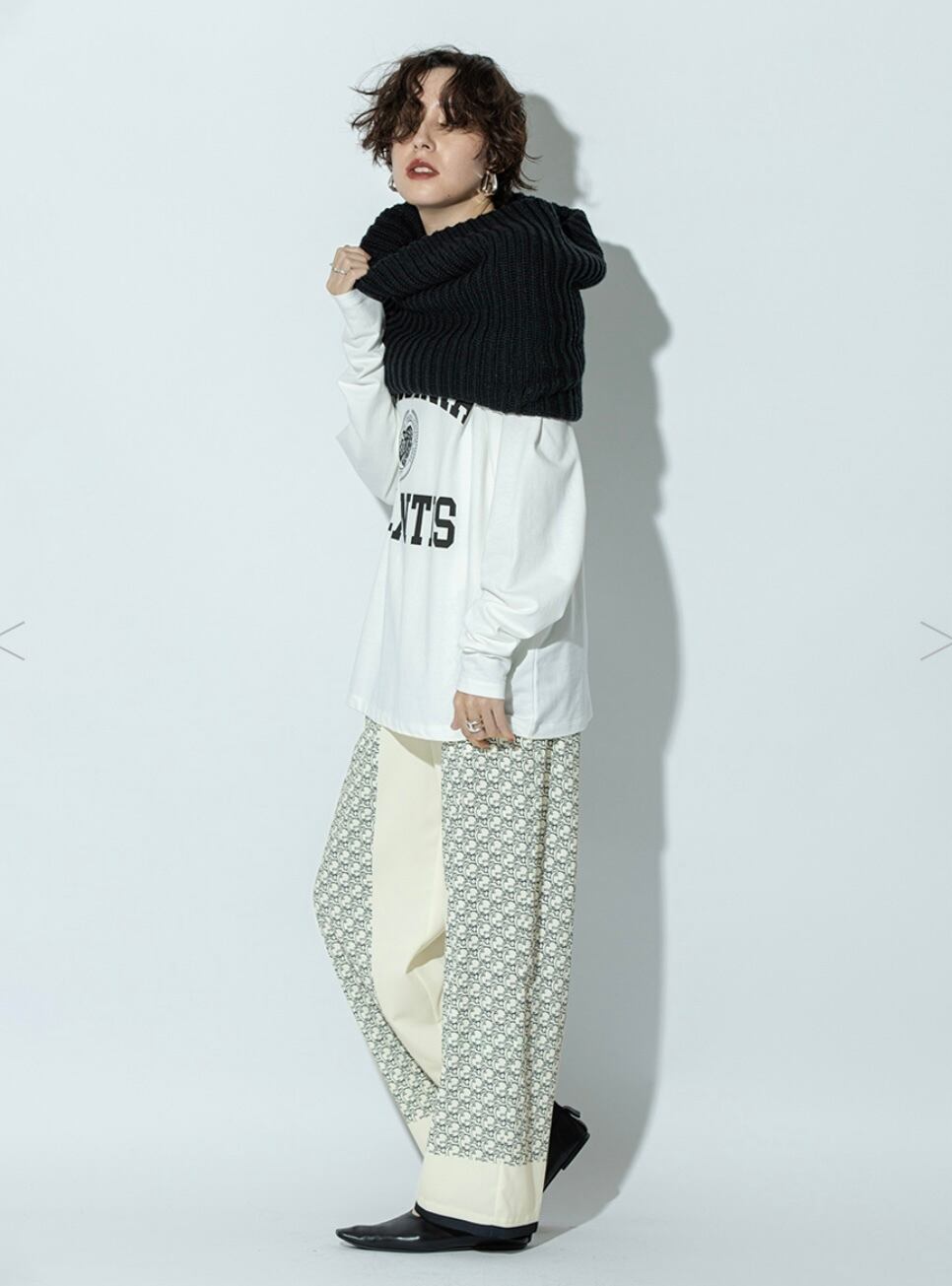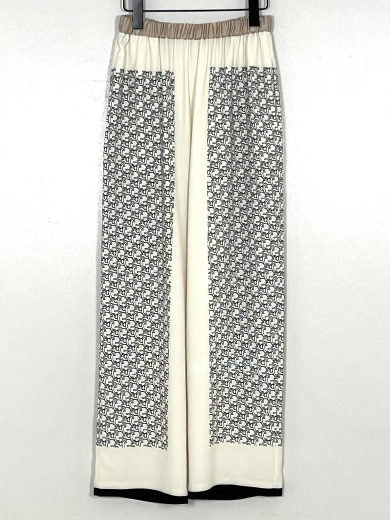 シニヨンロゴをパネル柄におこし、オリジナルで作成したプリント柄パンツになります。