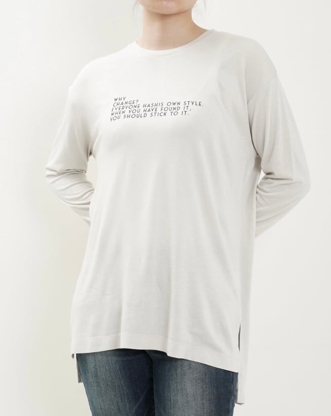 マイクロアクリルと天然由来のレーヨンを組み合わせた暖か快適素材を使用した日本製のプリントロンT。