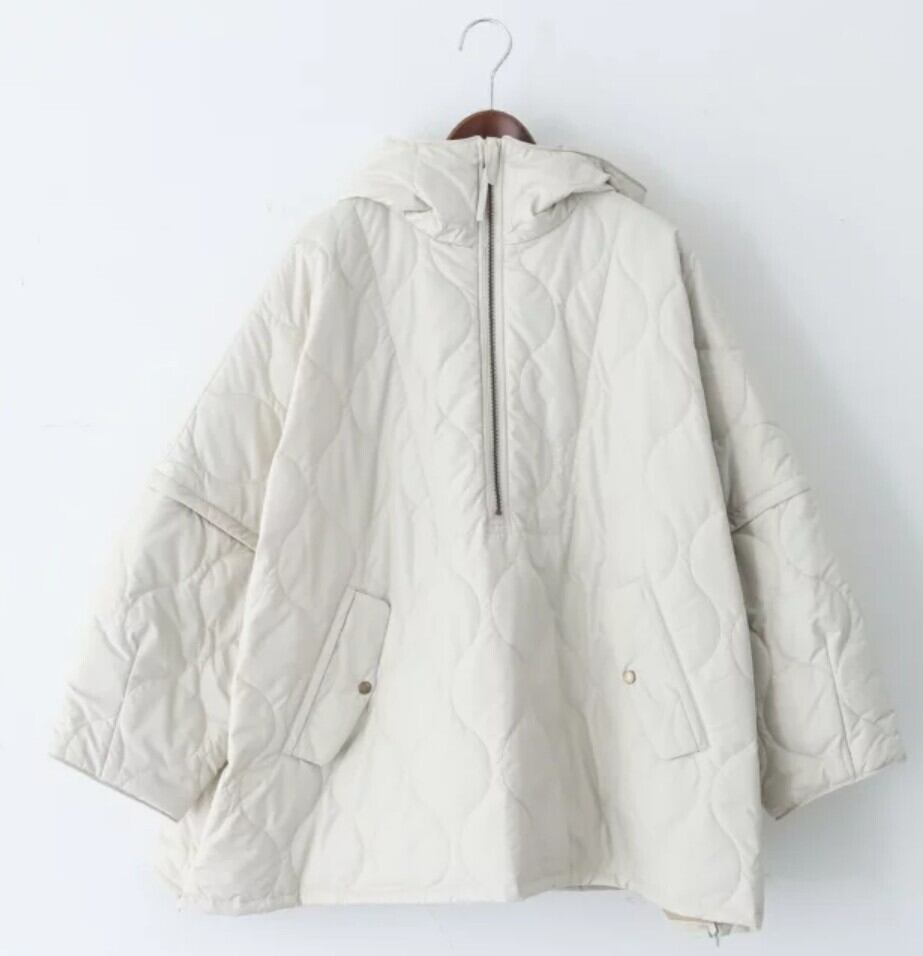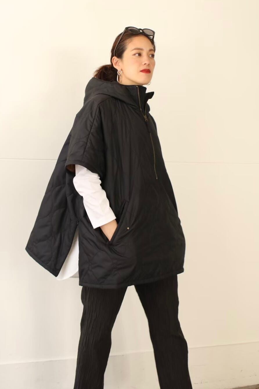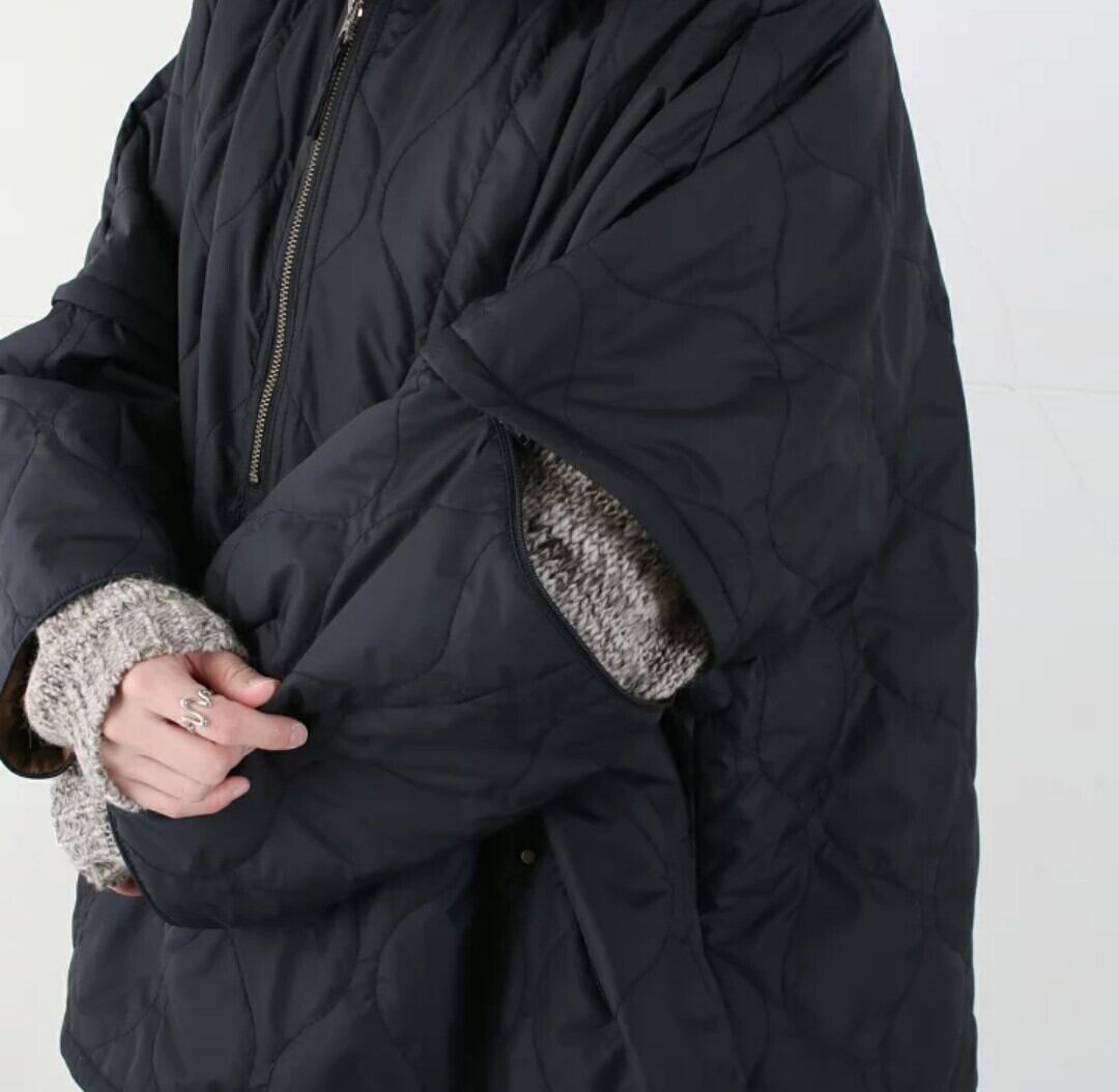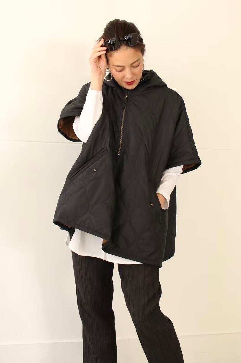 フード付きキルティングポンチョコート