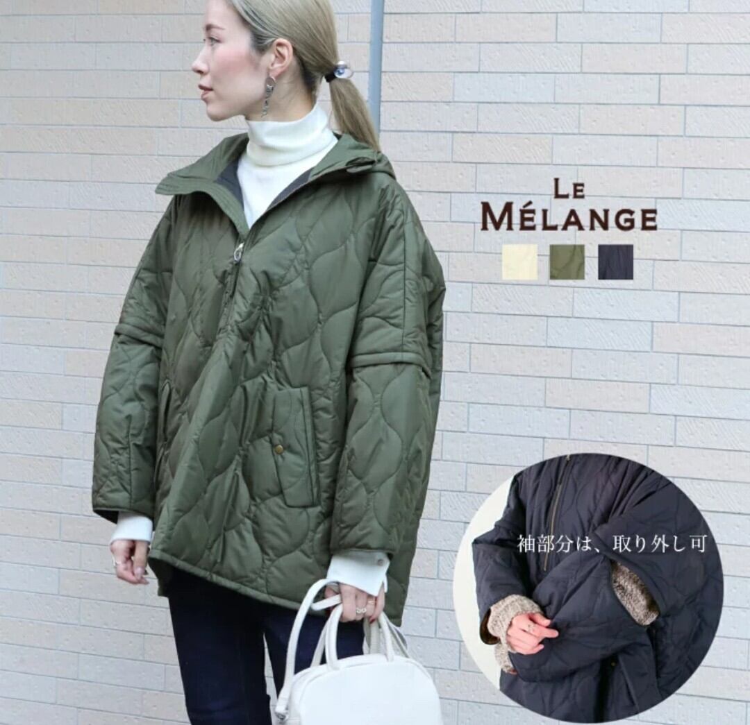 Le Melange(ル・メランジュ)のフード付きキルティングポンチョコートのご紹介です。